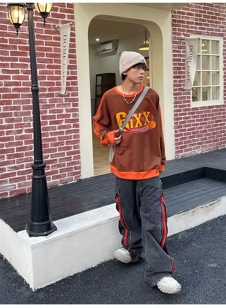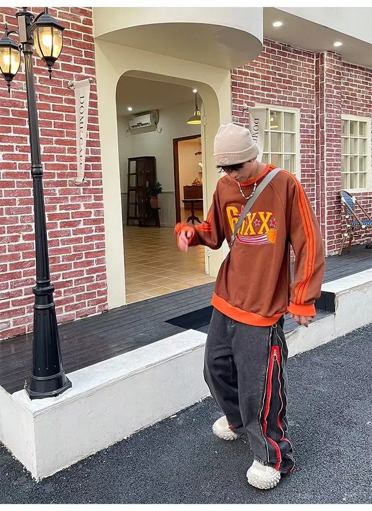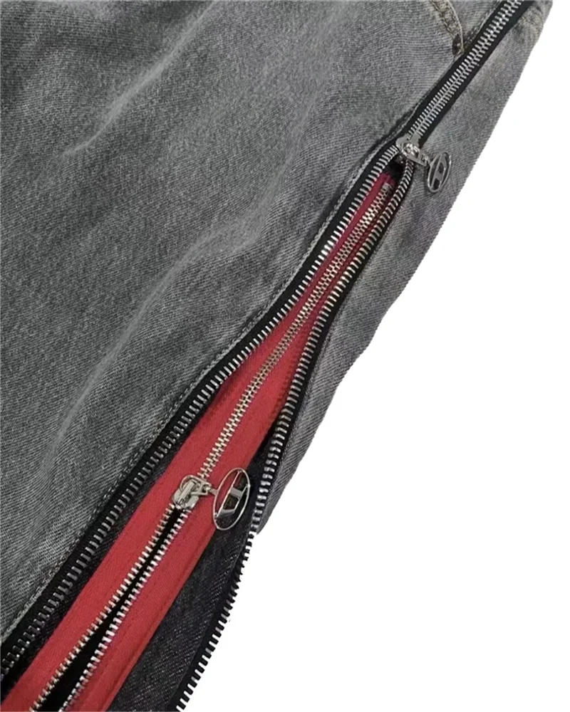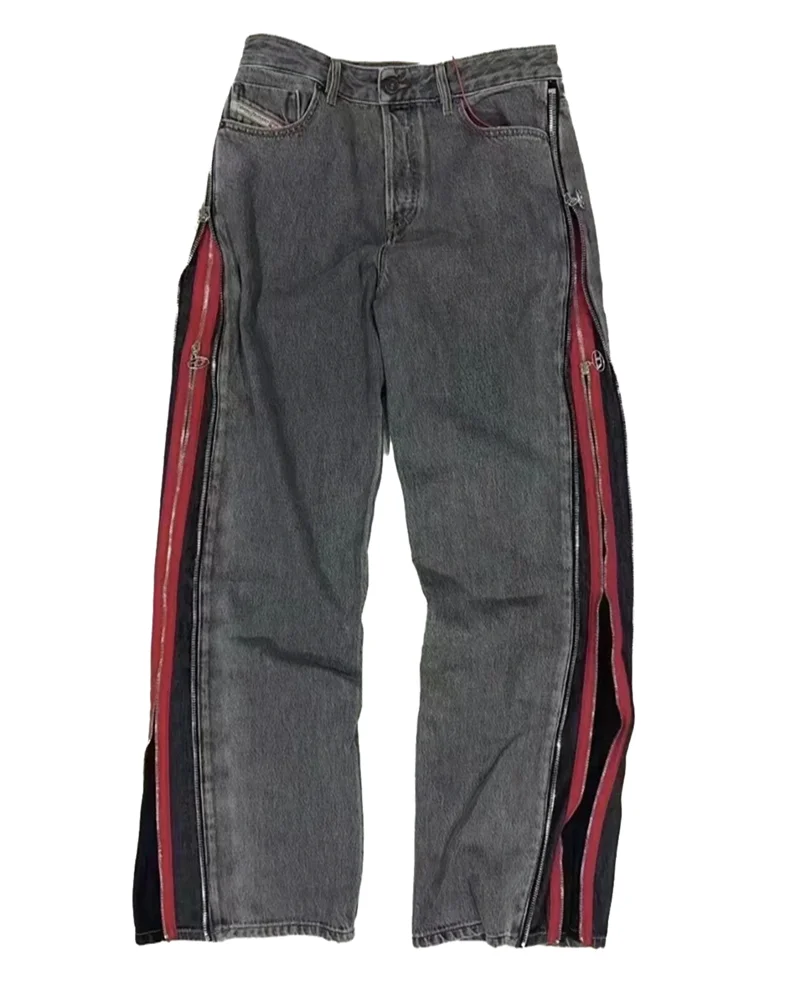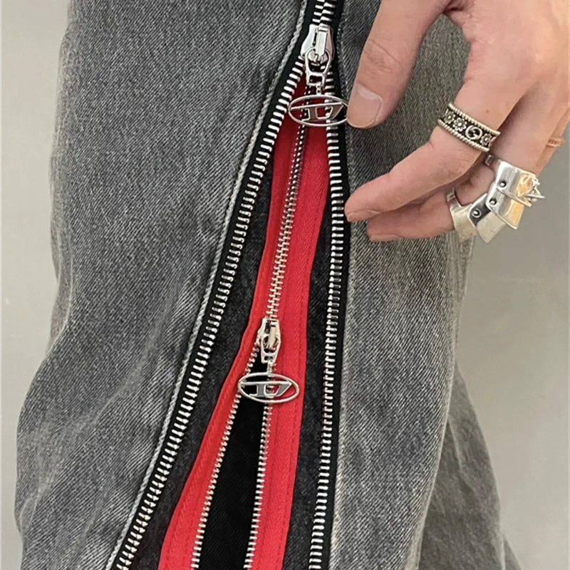 Wiaofellas - Cool Design Side Zipper Oversize Hip Hop Men Wide Jeans Pants Y2K Clothes Straight Loose Punk Denim Trousers Pantalon Homme
