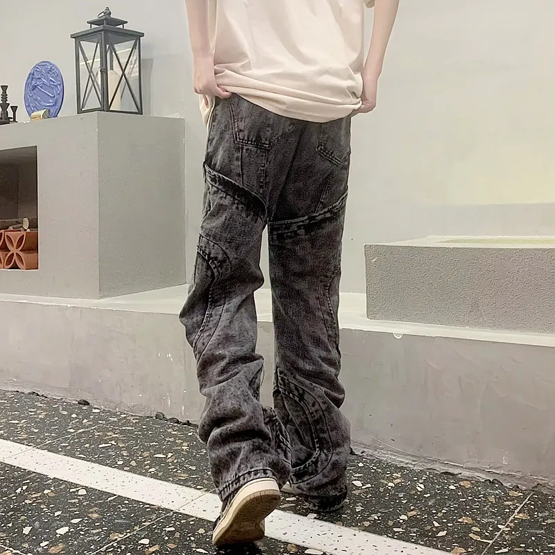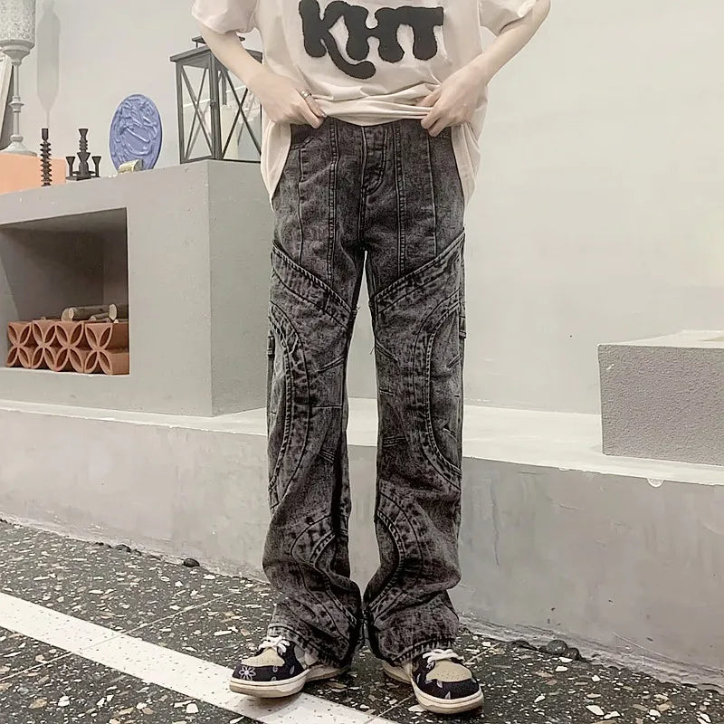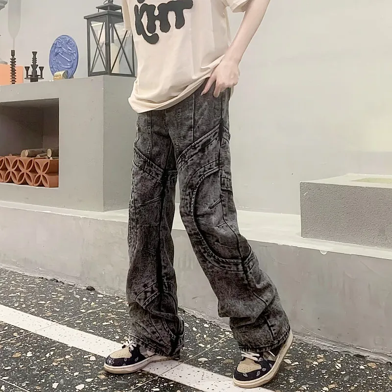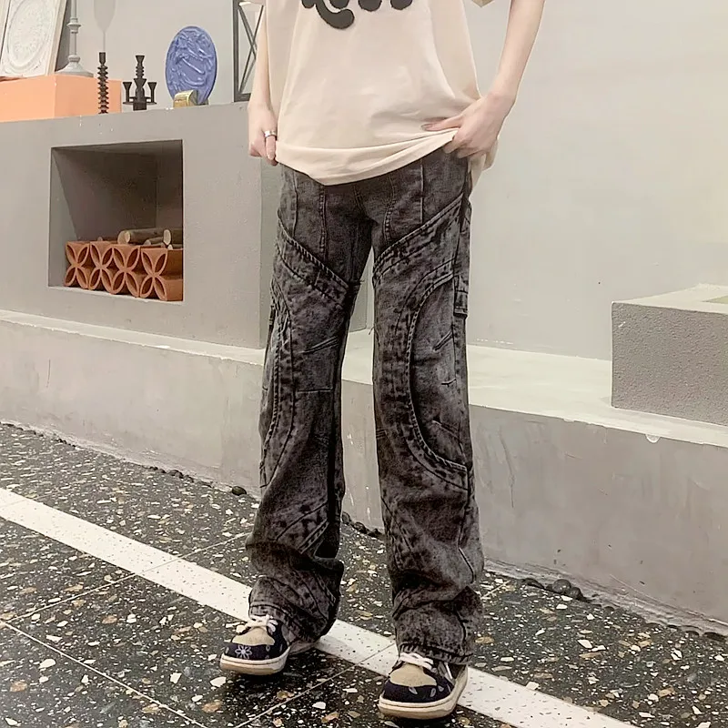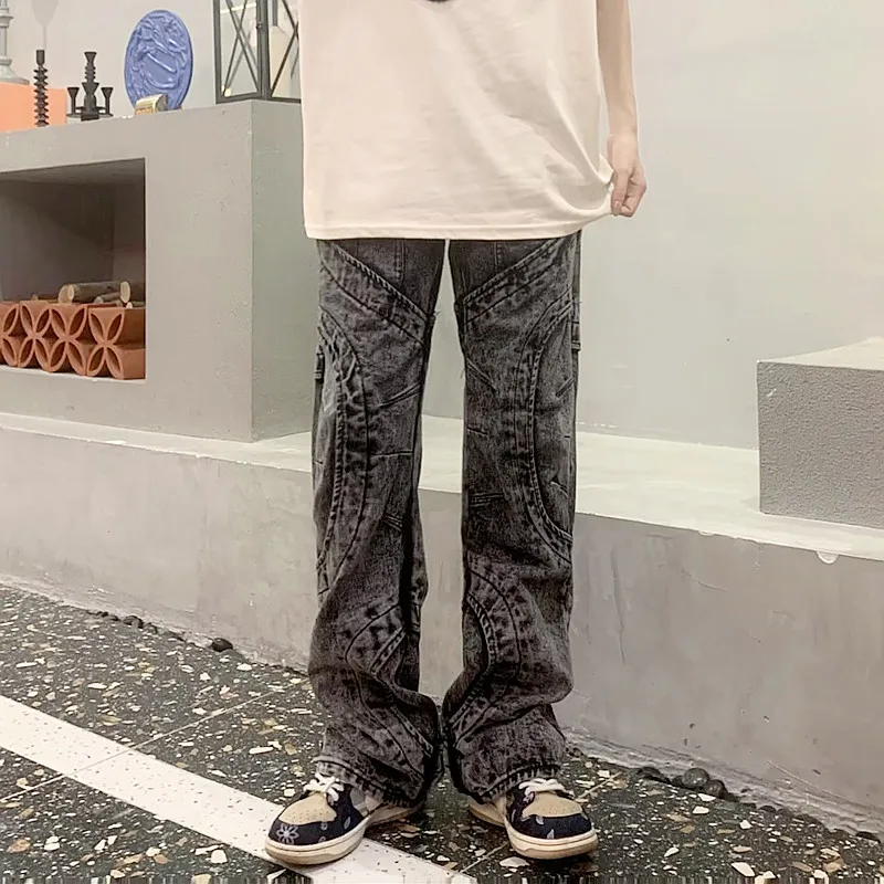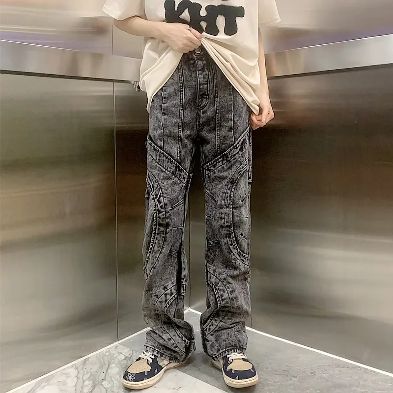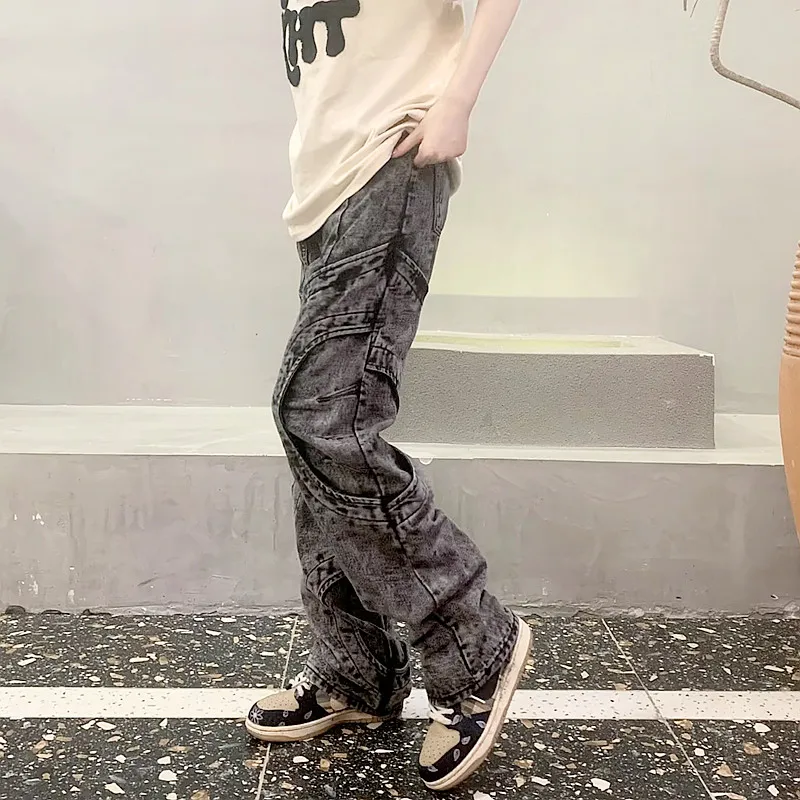Wiaofellas - Cyber Y2K Fashion Baggy Pleated Stacked Jeans Cargo Pants Men Clothes Straight Retro Washed Black Long Trousers Ropa Hombre