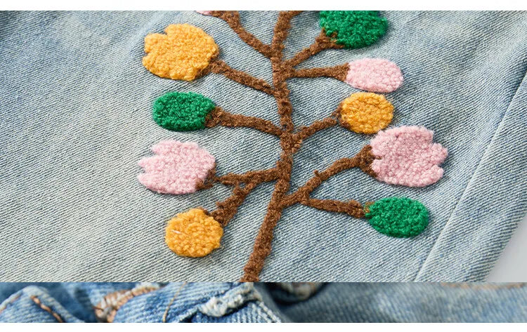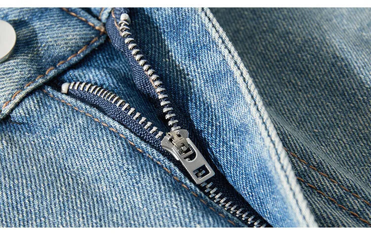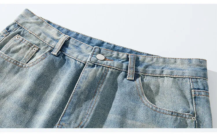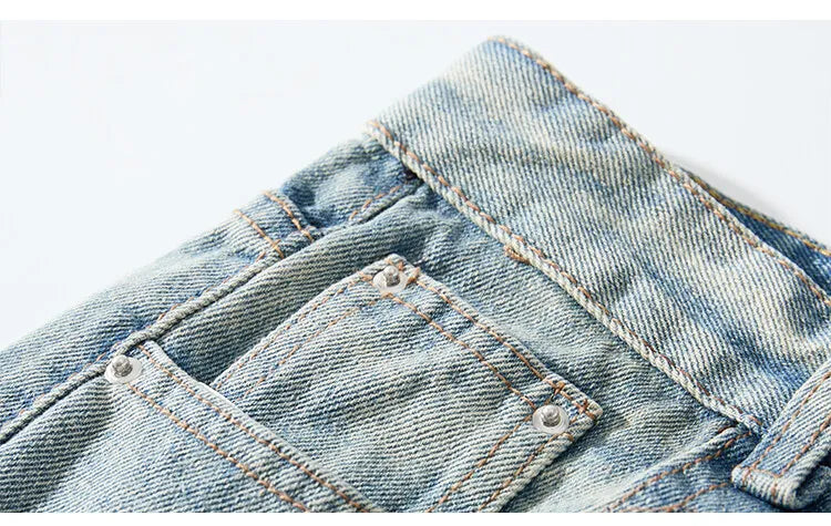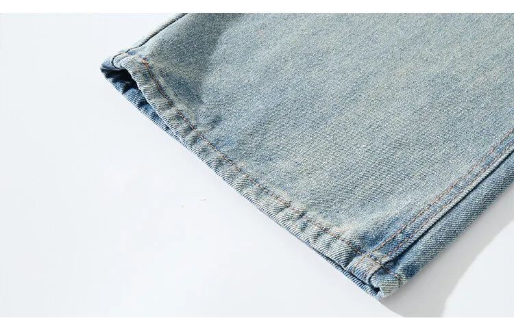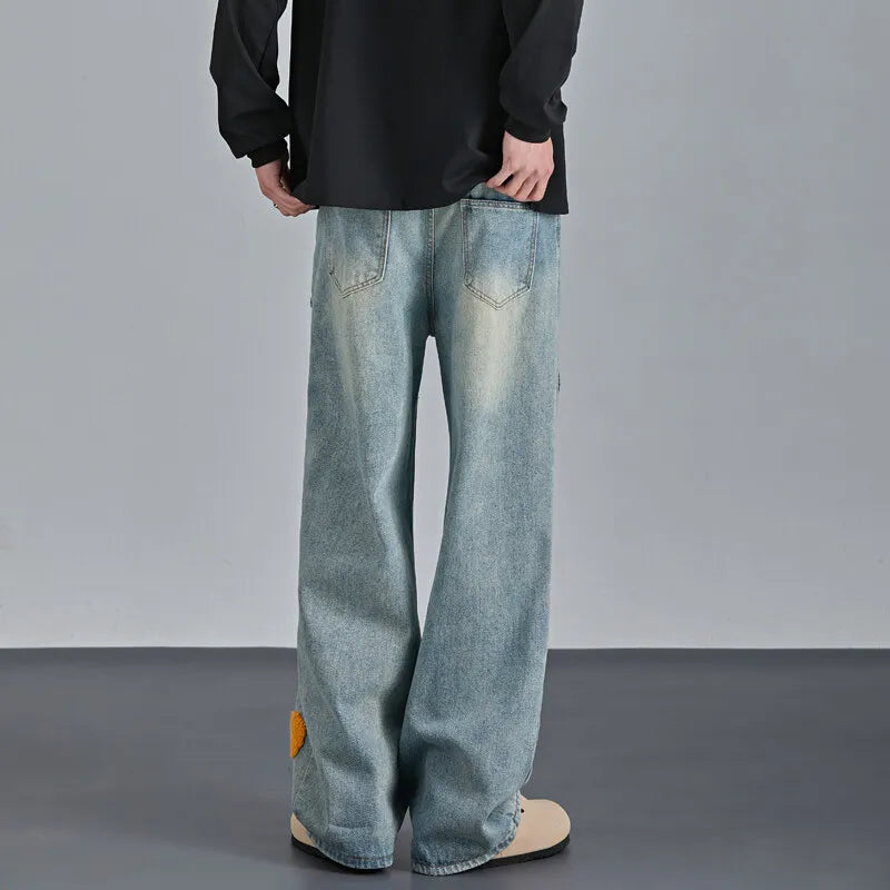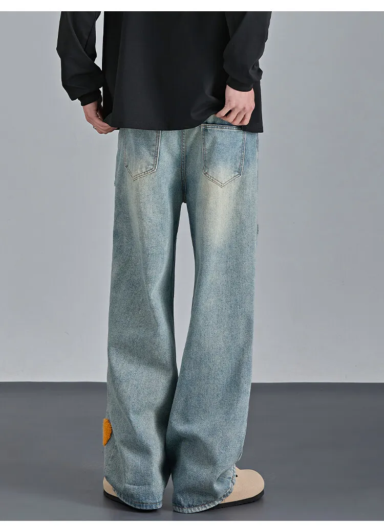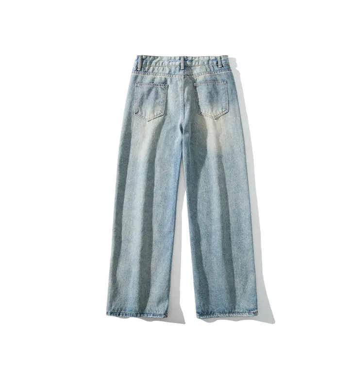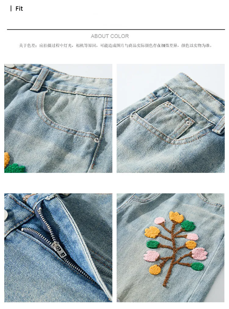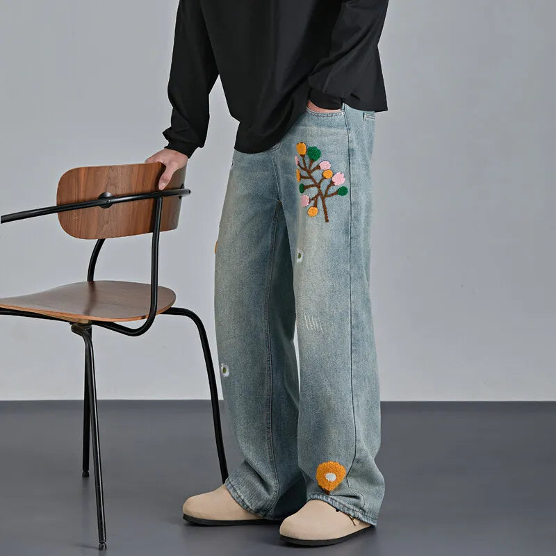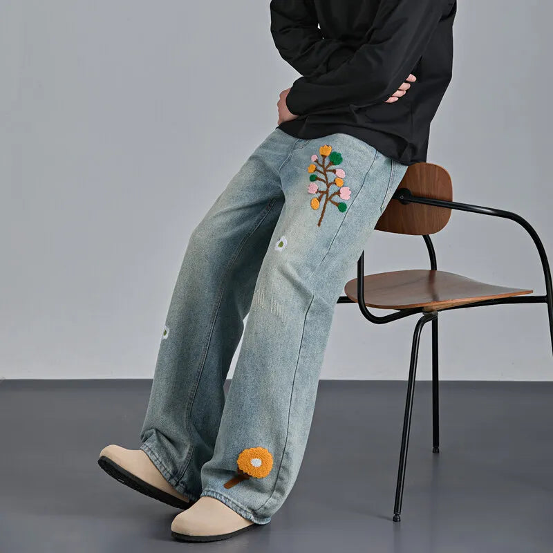 WIAOFELLAS - Design sense flower embroidery wash jeans men's spring straight pants couple loose American pants