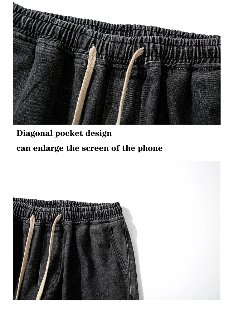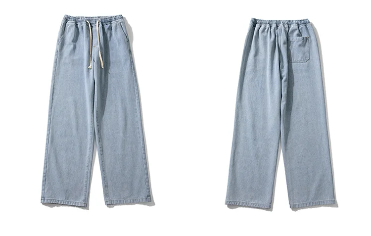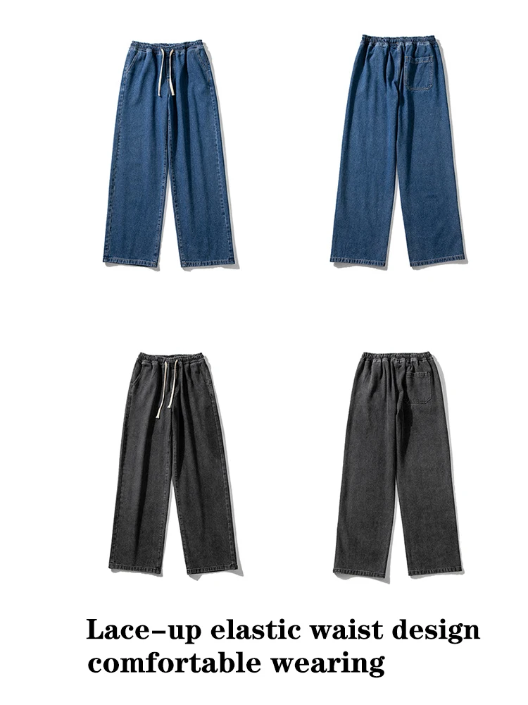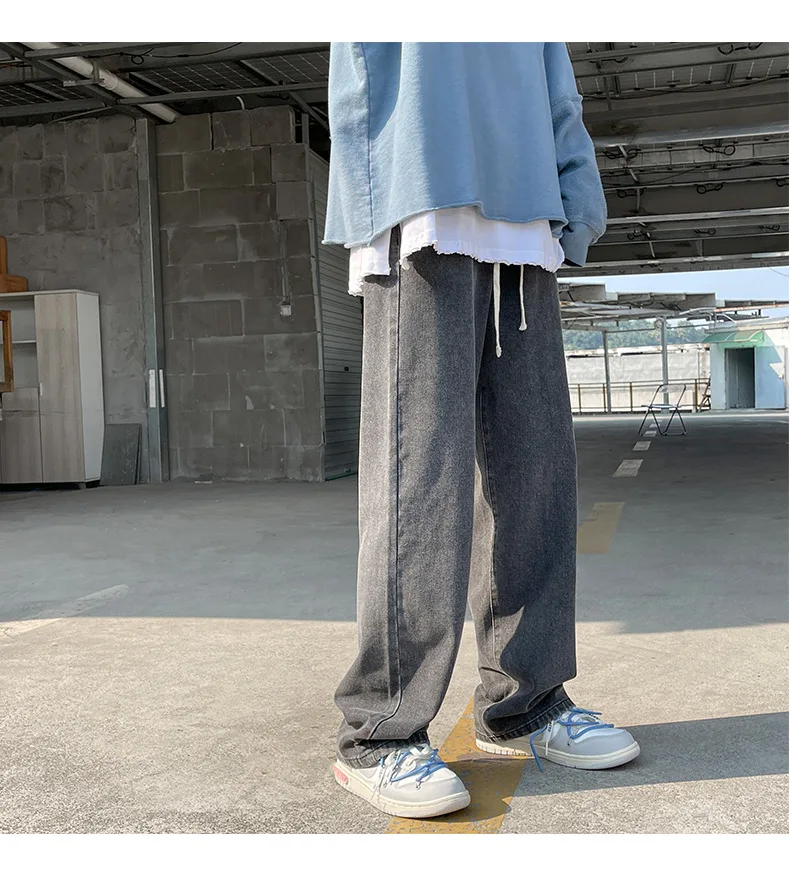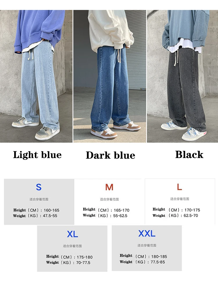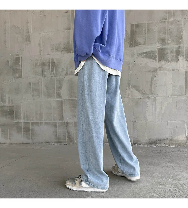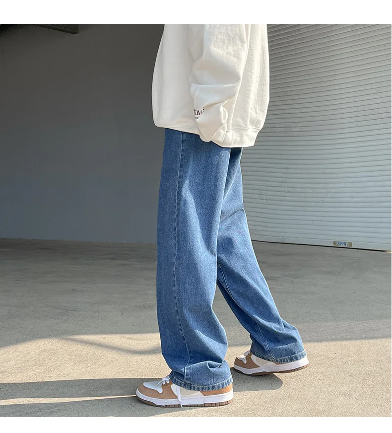 Wiaofellas - Fashion Men's Baggy Jeans Classic Solid Color Straight-leg Denim Wide-leg Pants Streetwear Hip Hop Male Light Blue Black