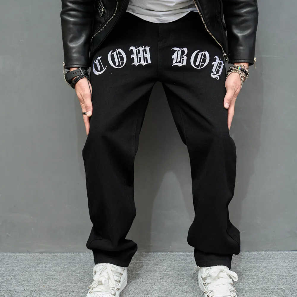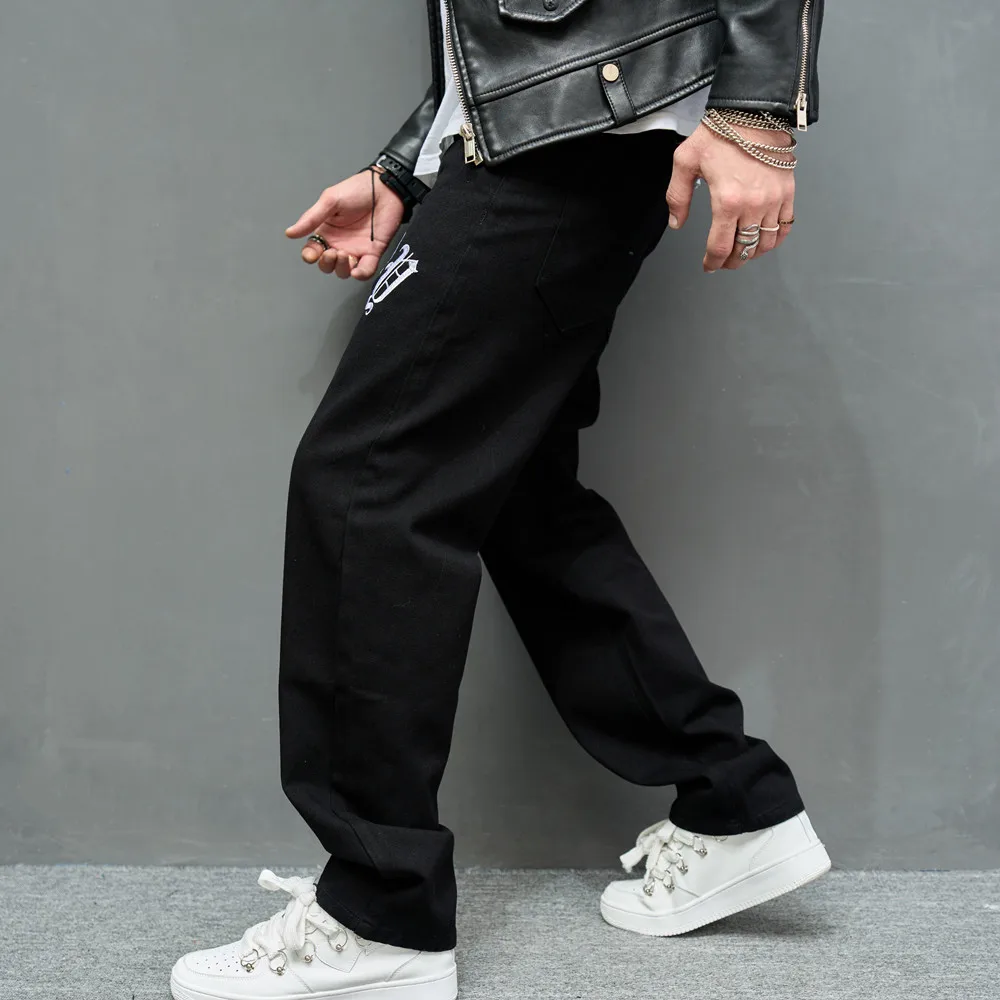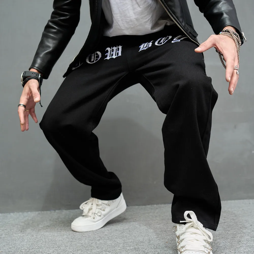 WIAOFELLAS High street Hip Hop Men Stylish Embroidery Loose Jeans Trousers For Men's Hip Hop Male Motorcycle Straight Denim Pants