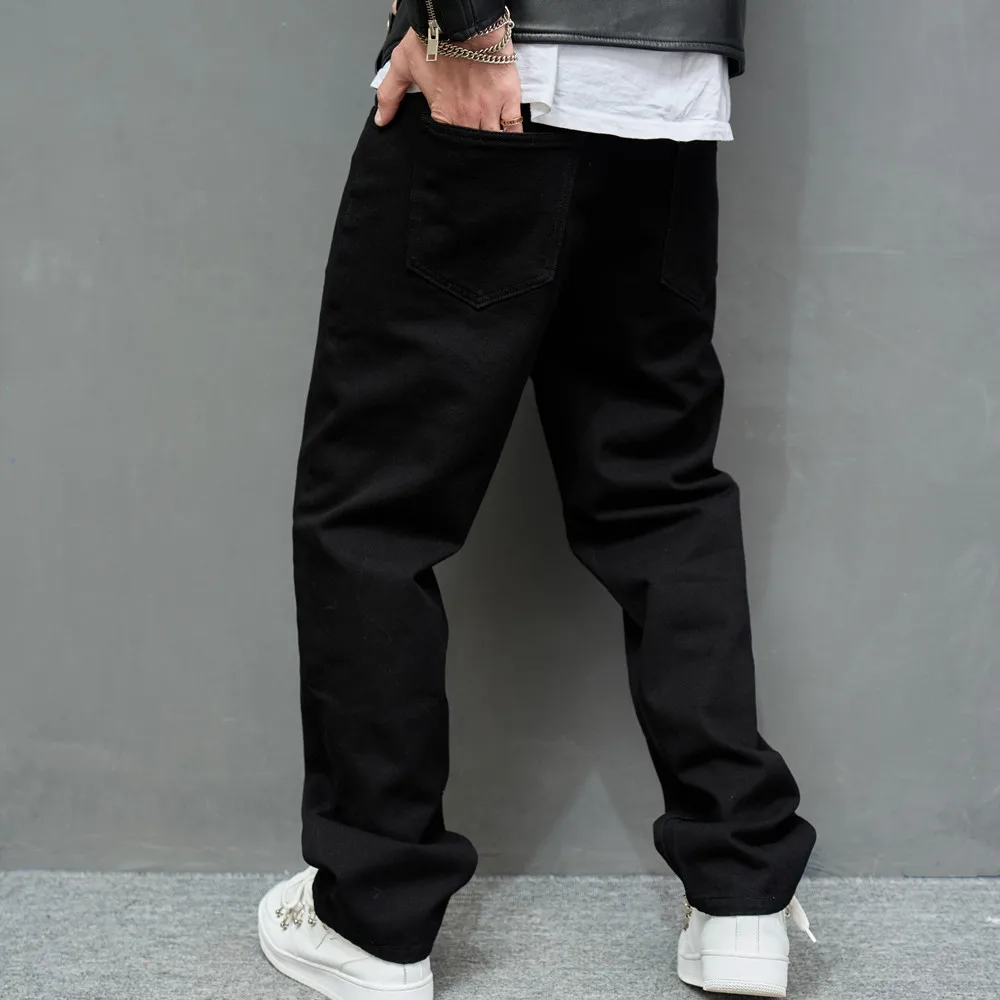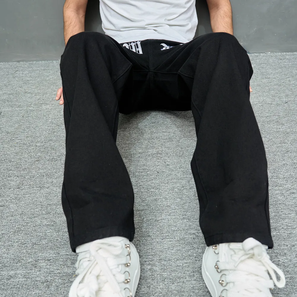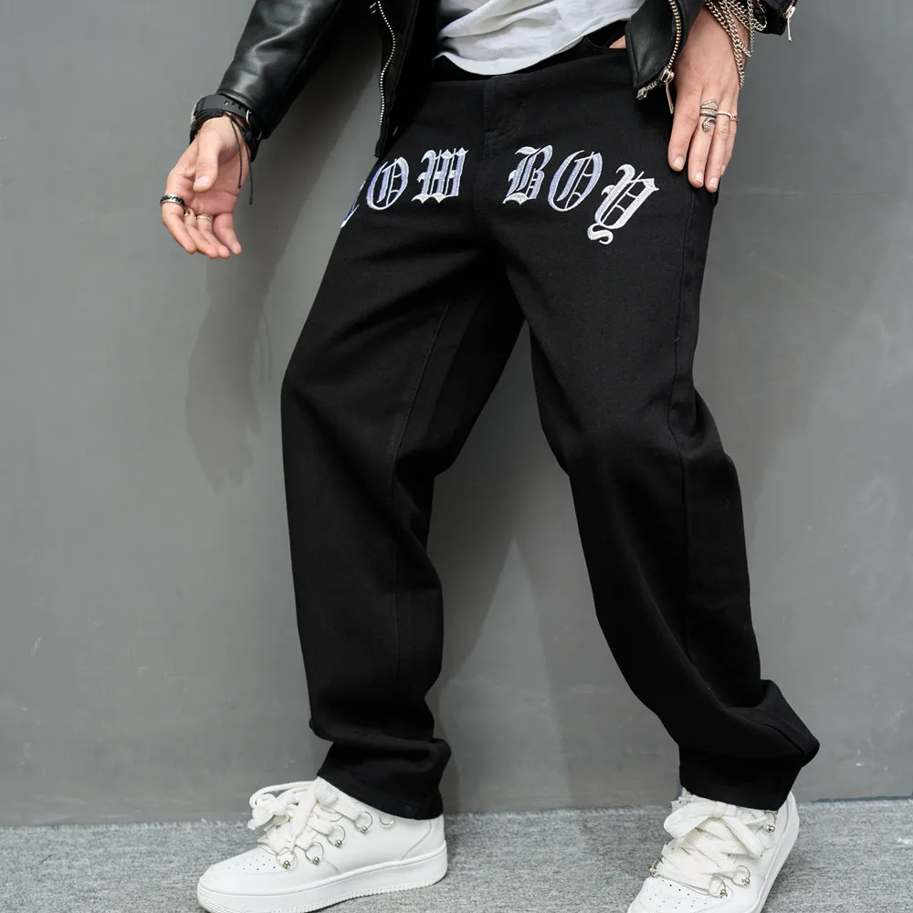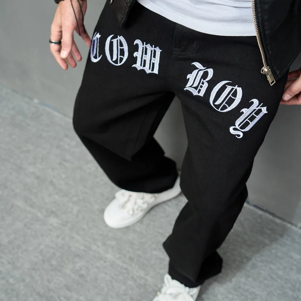 WIAOFELLAS High street Hip Hop Men Stylish Embroidery Loose Jeans Trousers For Men's Hip Hop Male Motorcycle Straight Denim Pants