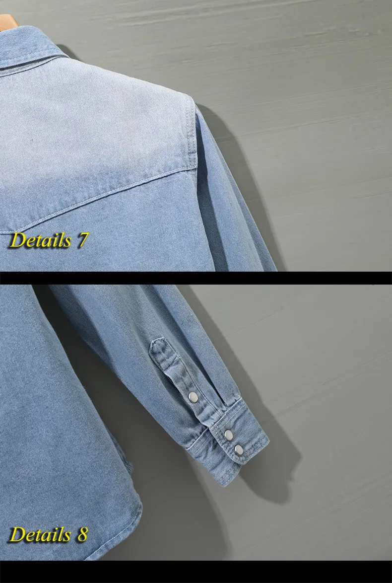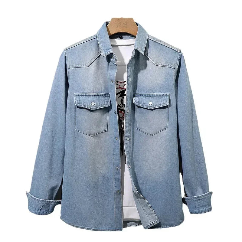 Wiaofellas - Japanese Korean Trend Long-sleeved Retro Denim Shirt Men's Fashion Casual All-match Jean Shirt Trend Casual Denim Coat Clothes