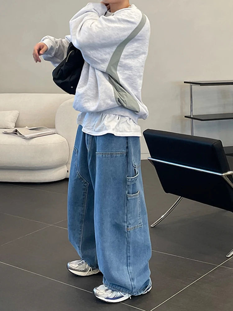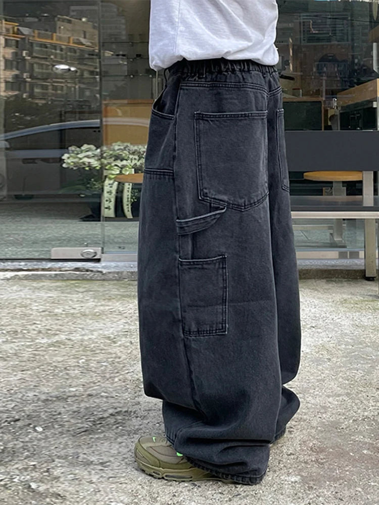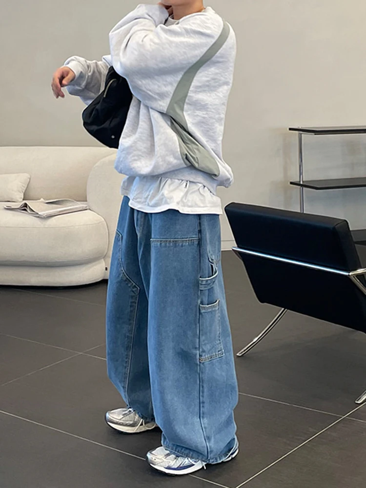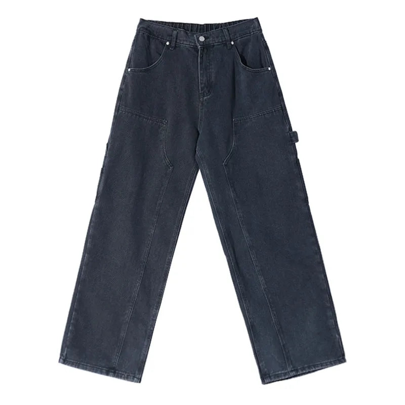 WIAOFELLAS - Japanese Style Male Straight Jeans Personalized Design Washed Men's Wide Legs Denim Pants Spring New Stylish