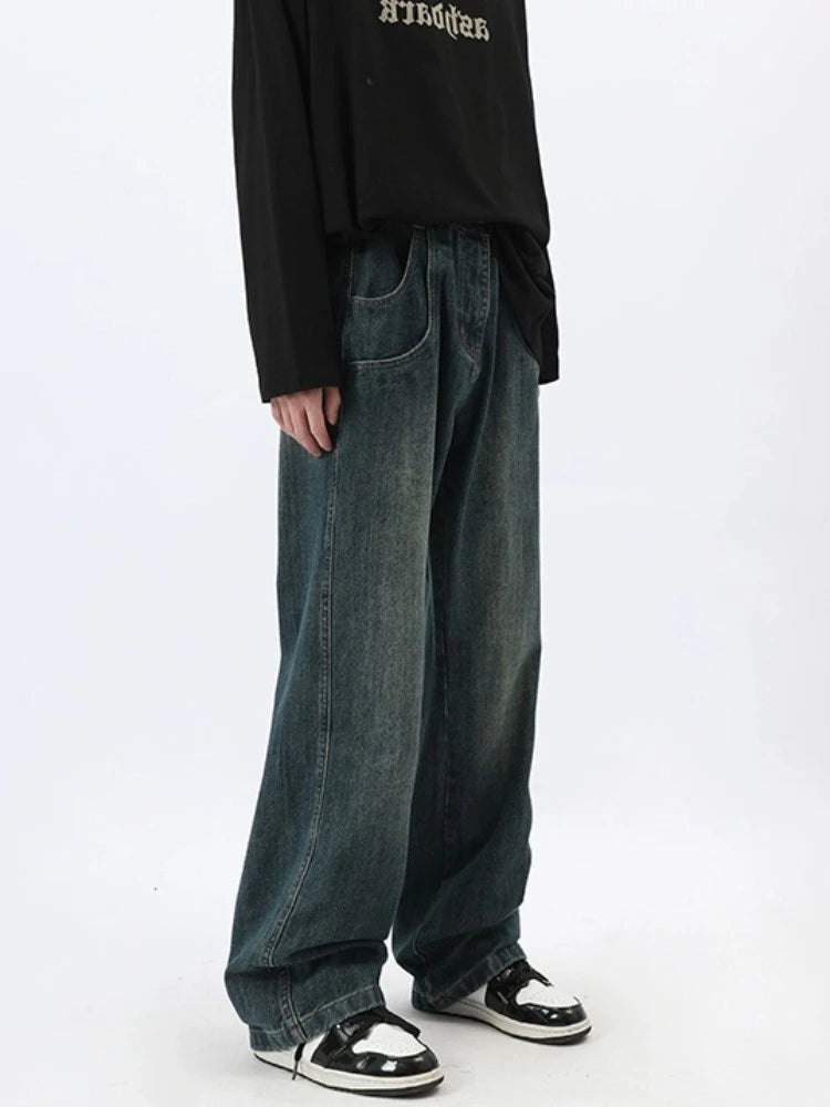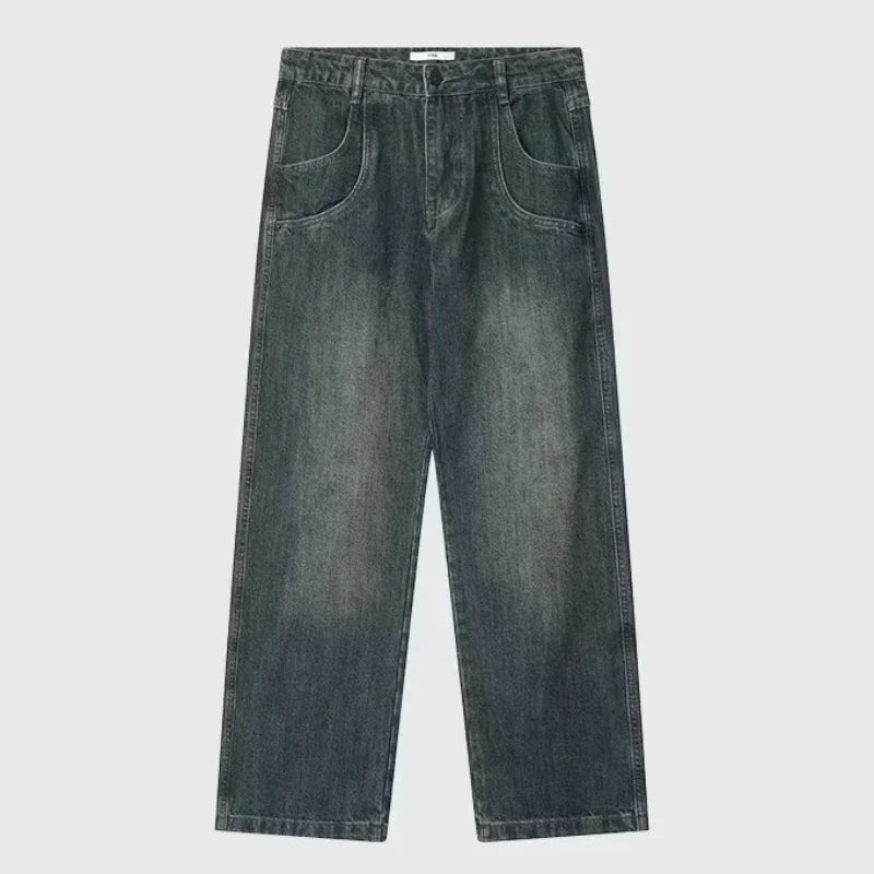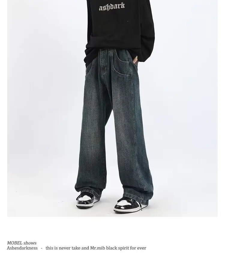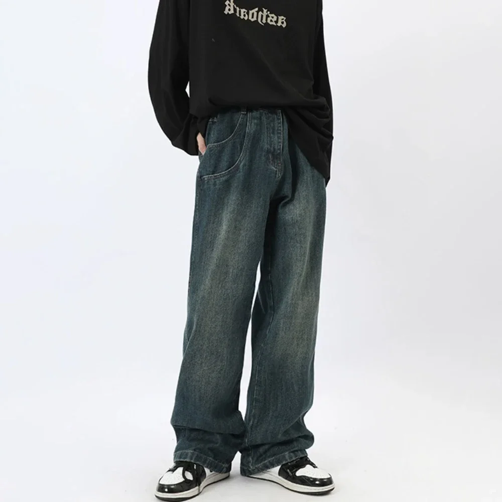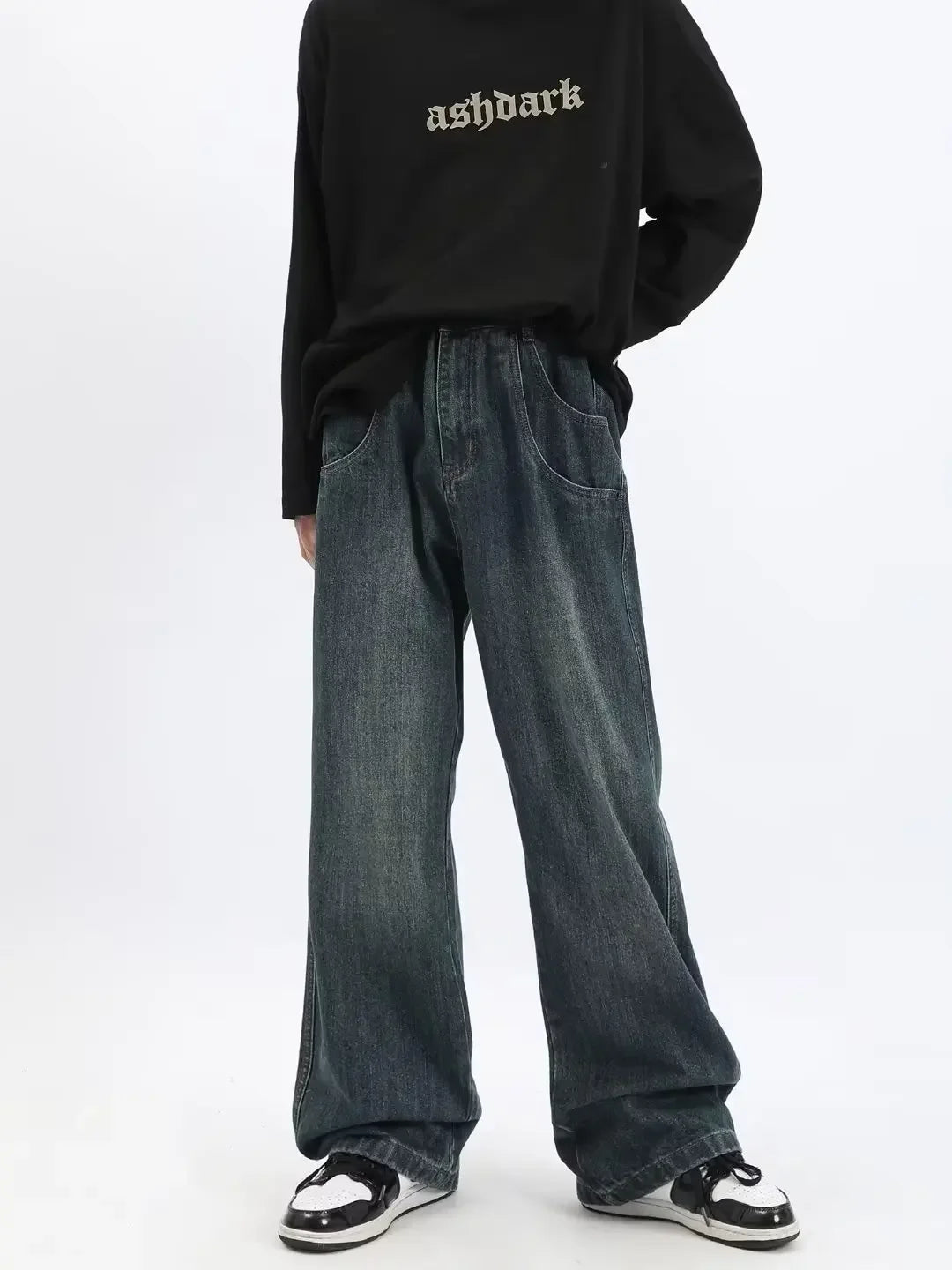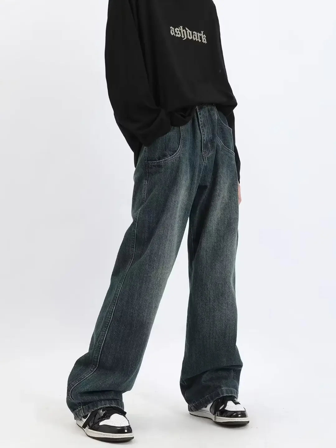 WIAOFELLAS - Jeans Men Autumn Personality American Retro High Street Washed Denim Trousers Pockets Design All-match Hip Hop Full Length Daily