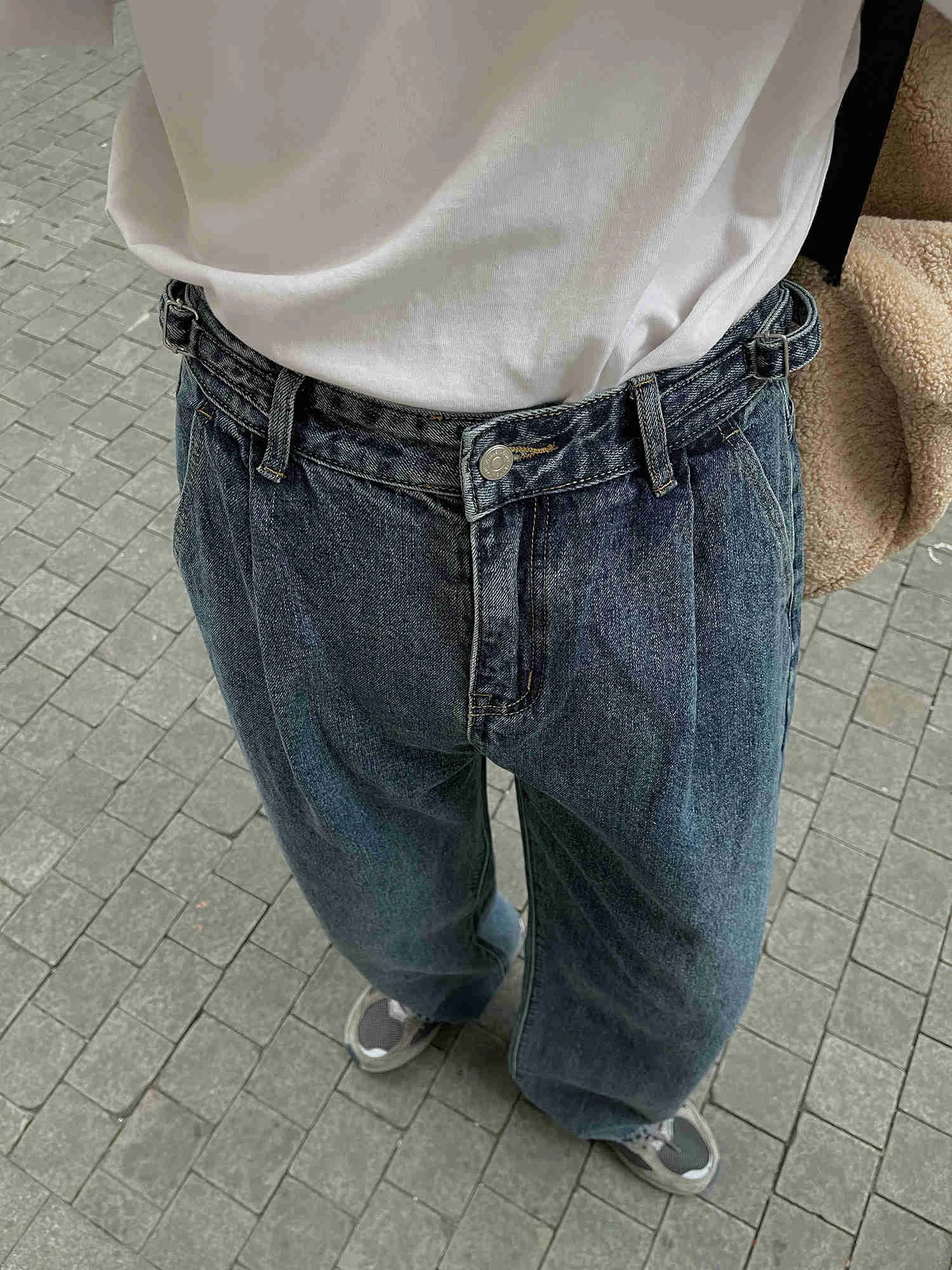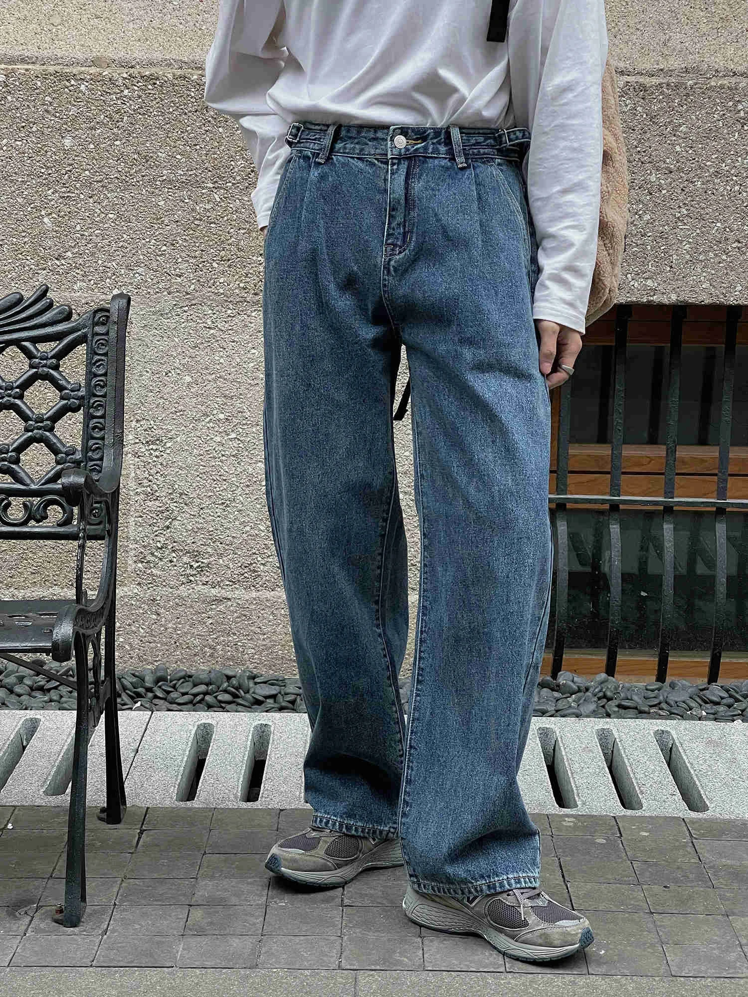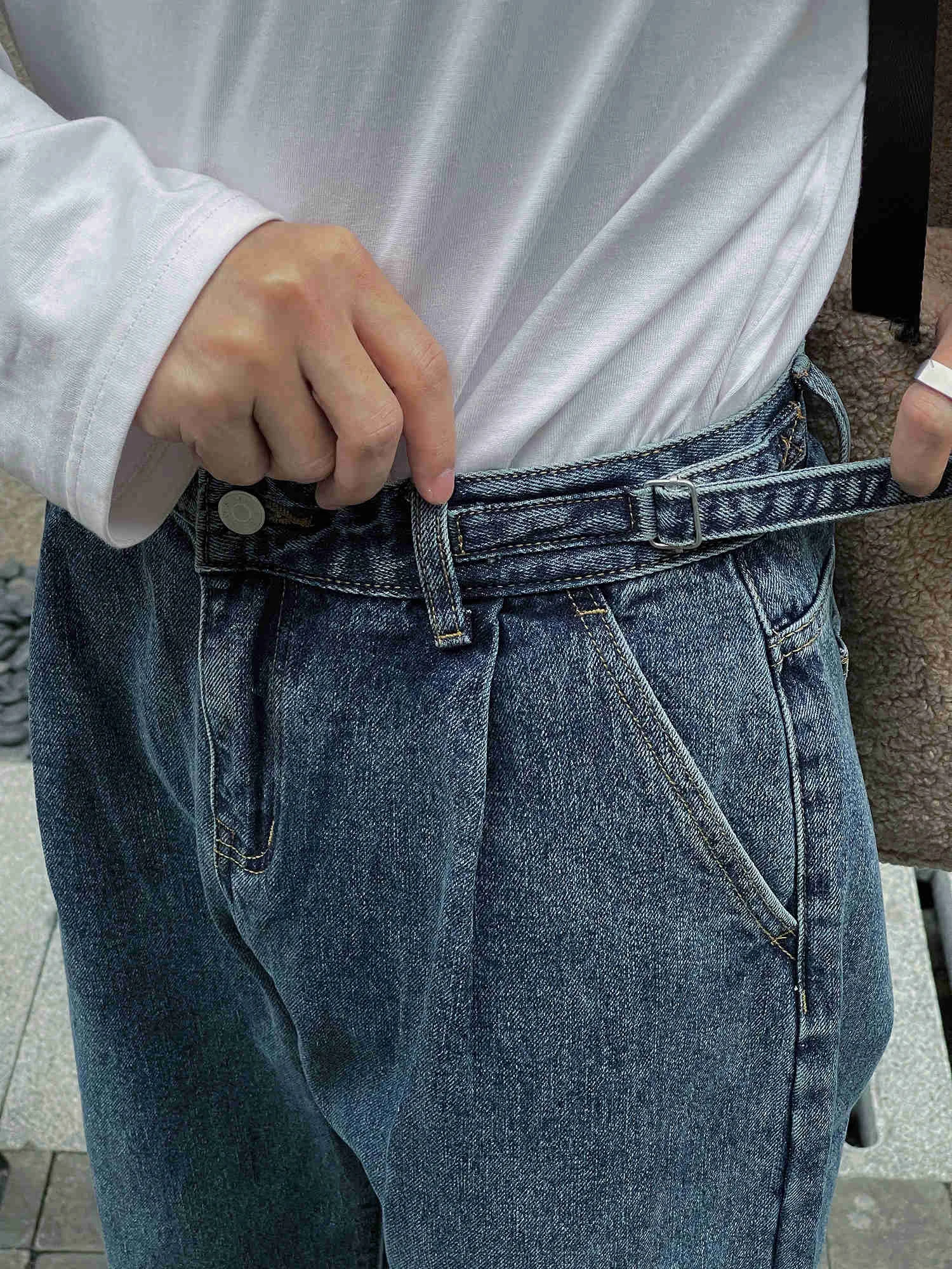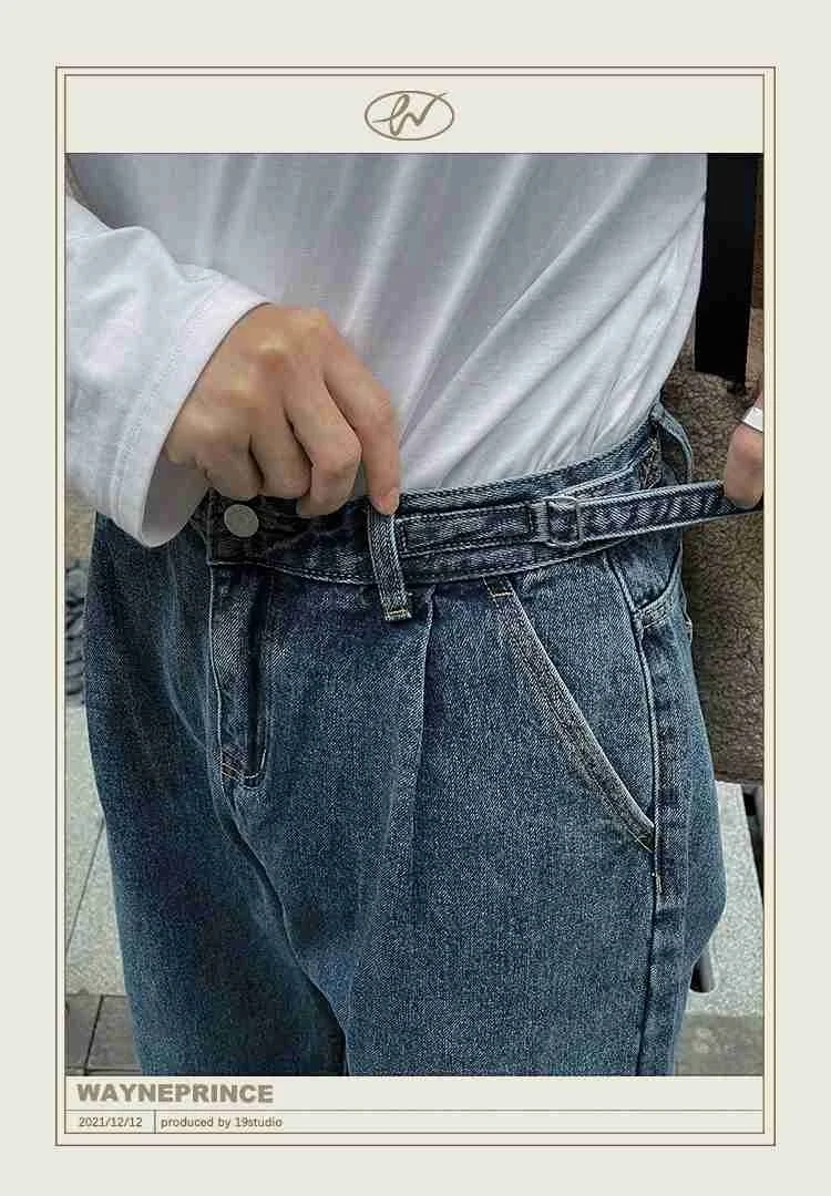 Wiaofellas jeans men's spring new washed Blue Straight denim trousers adjustable high waist vintage wide leg long pants 2A0220