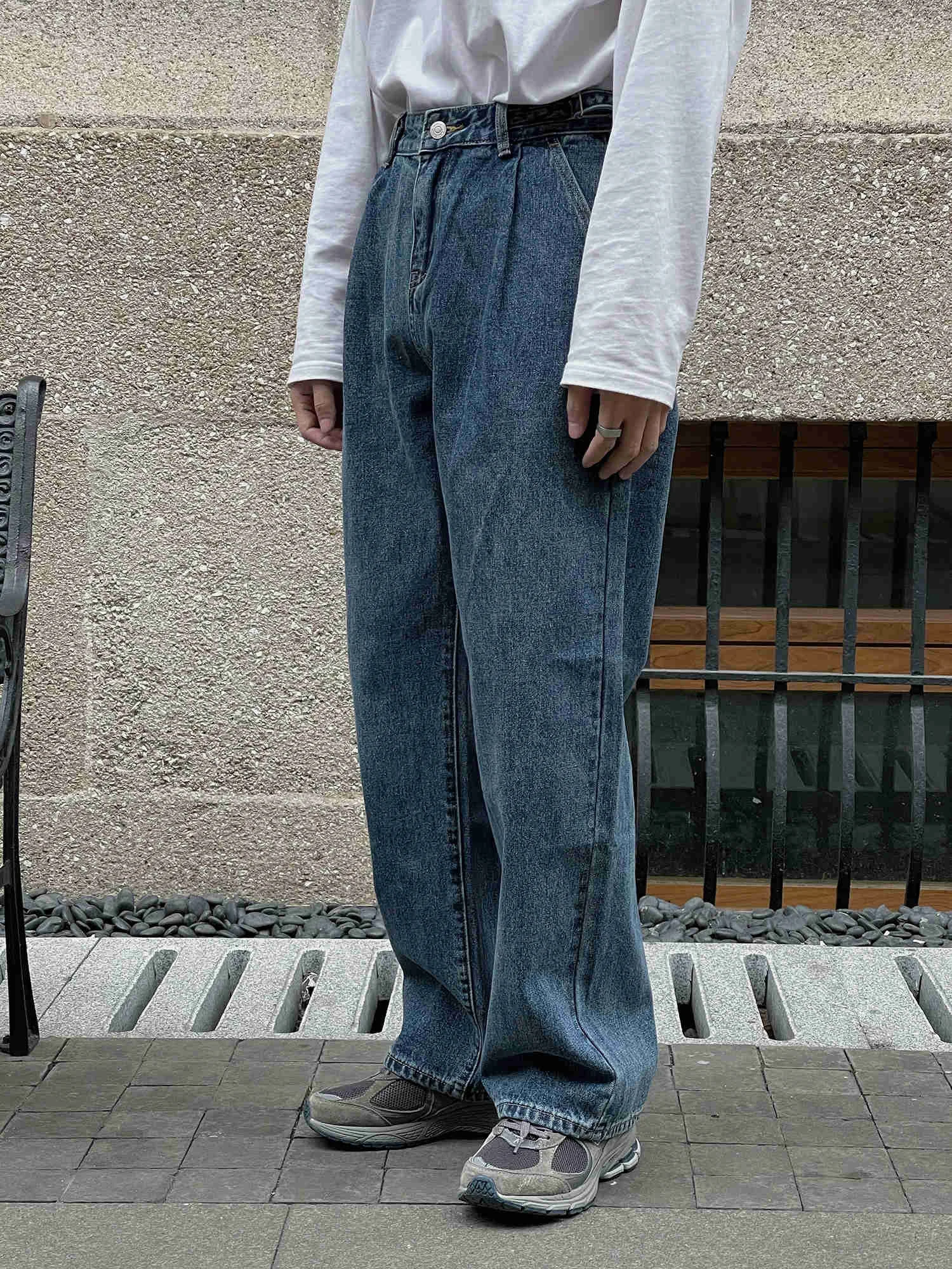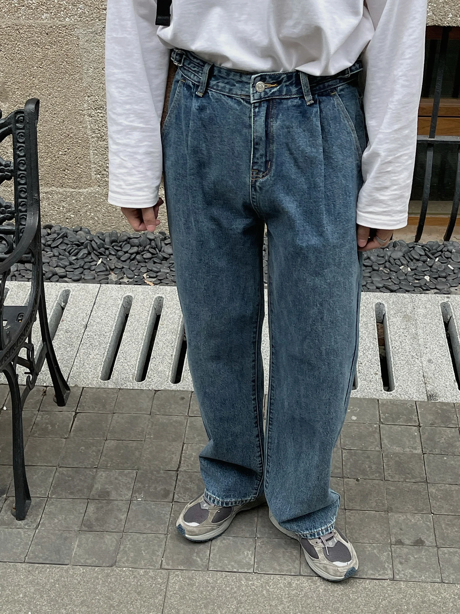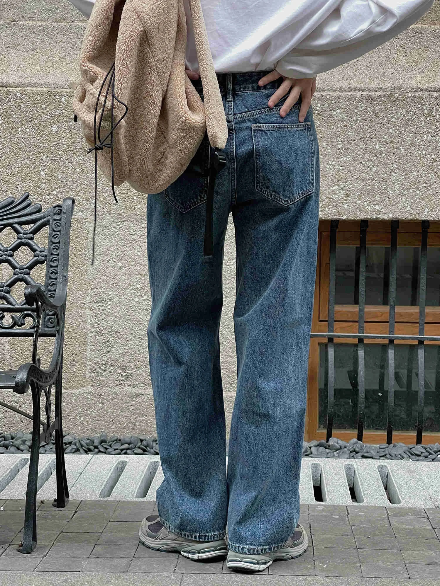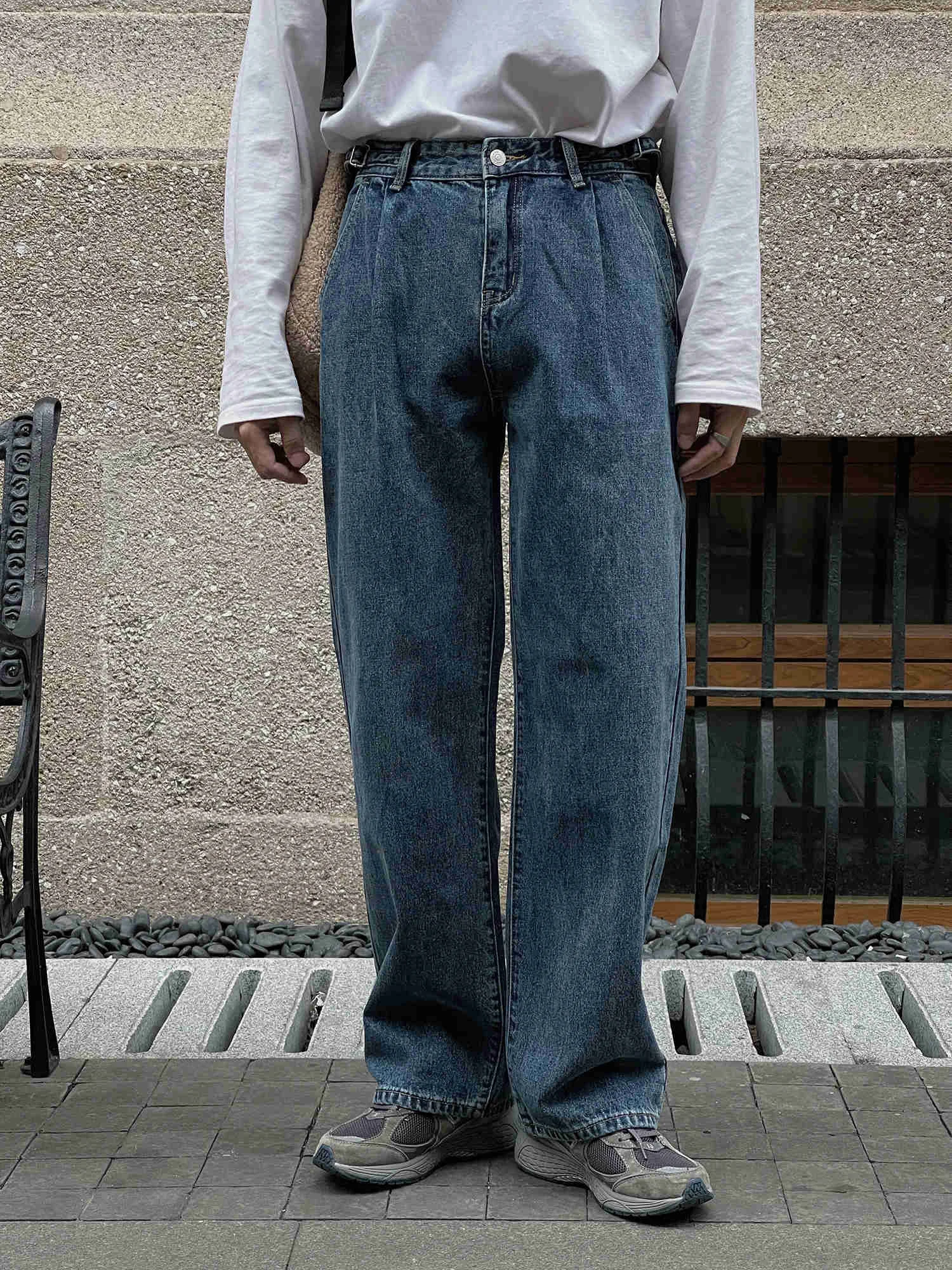 Wiaofellas jeans men's spring new washed Blue Straight denim trousers adjustable high waist vintage wide leg long pants 2A0220