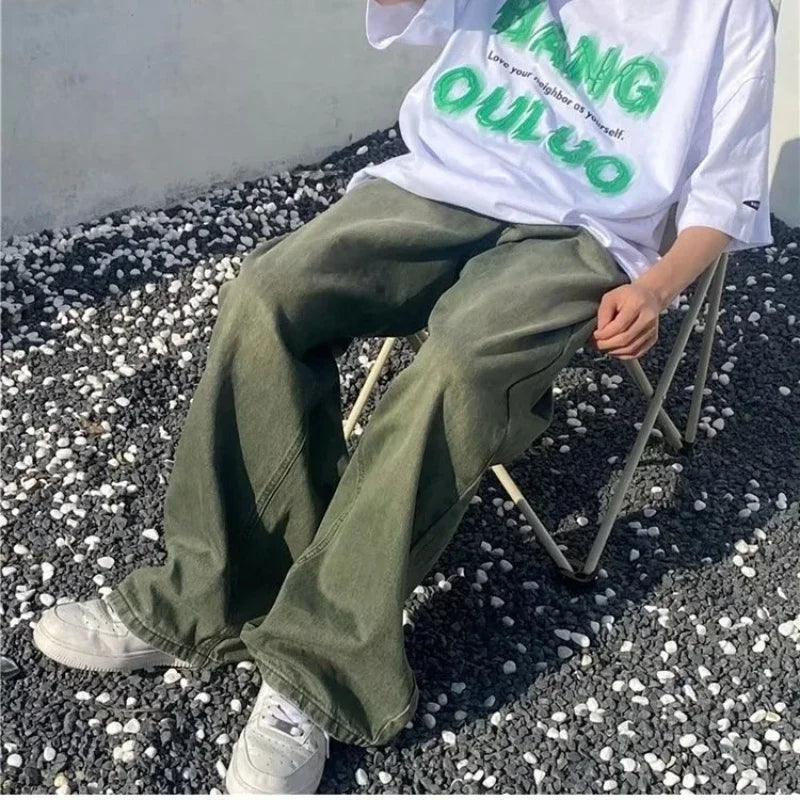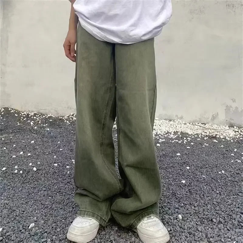 WIAOFELLAS  -  Jeans Spring and Fall High Street Washed Do Old Europe and The United States Street Hip-hop Loose Wide Leg Pants Men Jeans