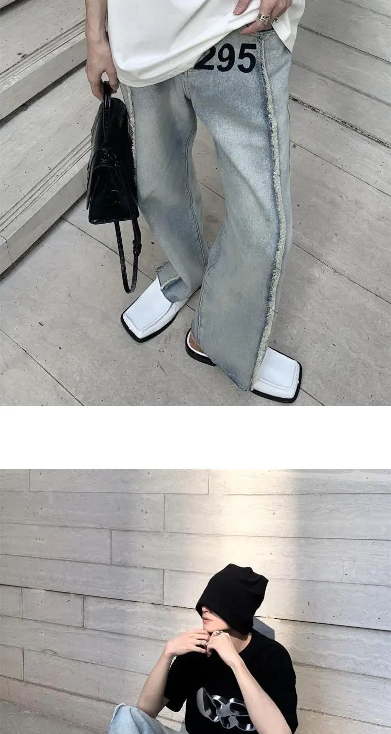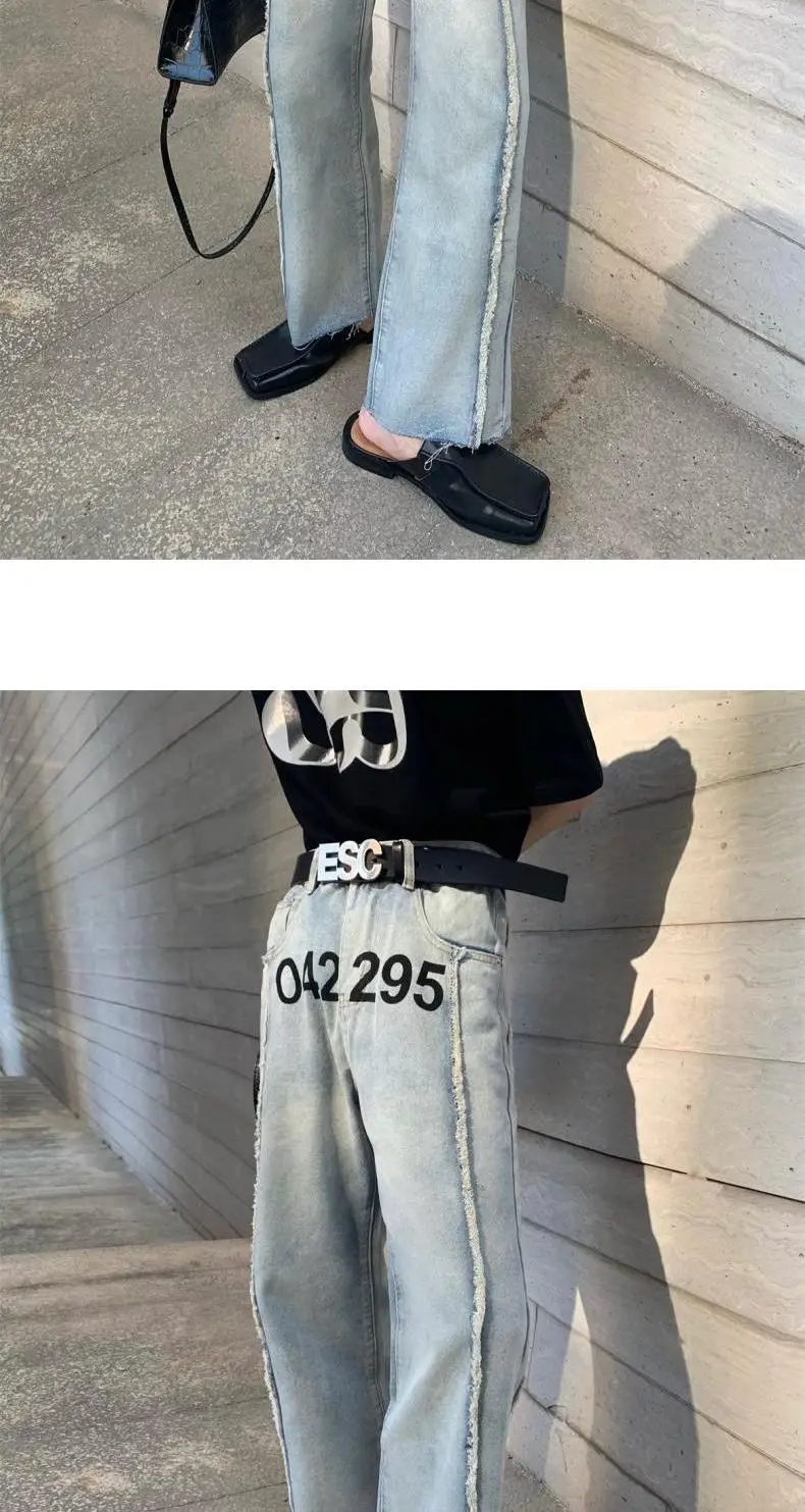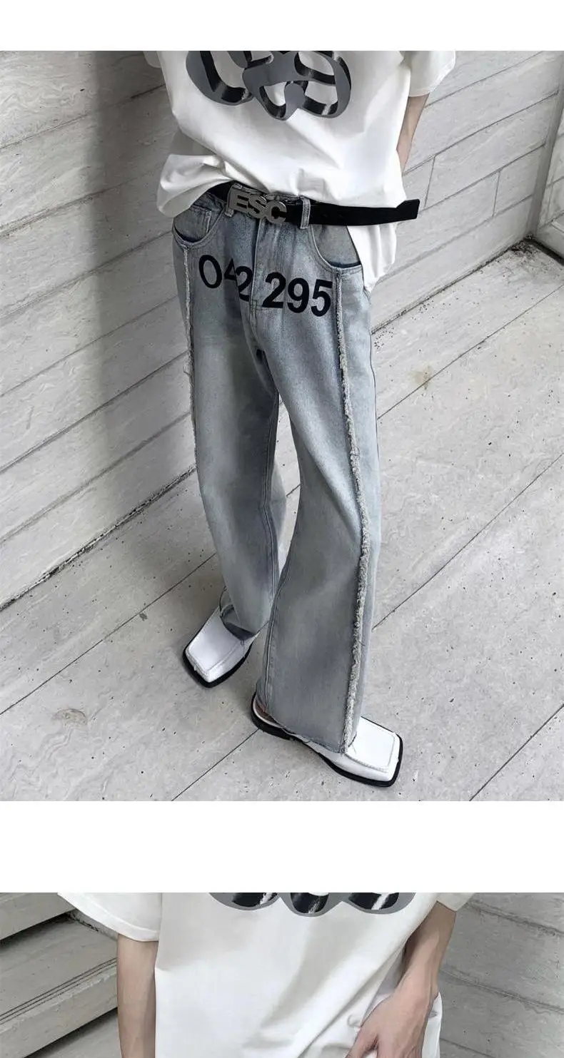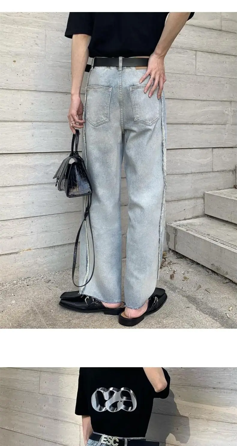 Wiaofellas Men's Jeans Raw Edge Jeans Men's Korean Version Loose All-match Straight High Street Drag Trousers Casual Pants