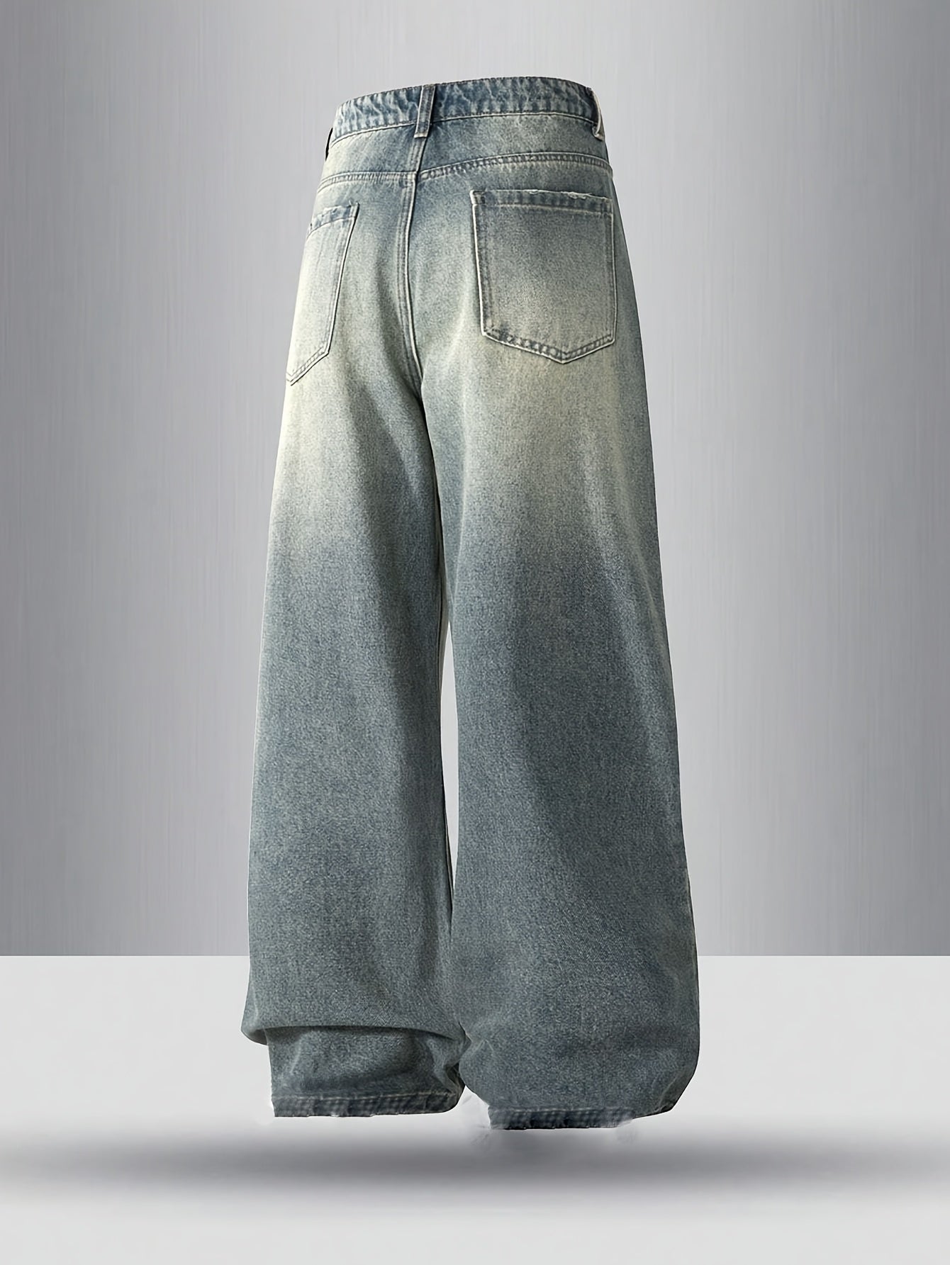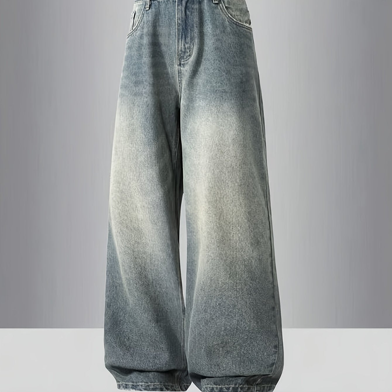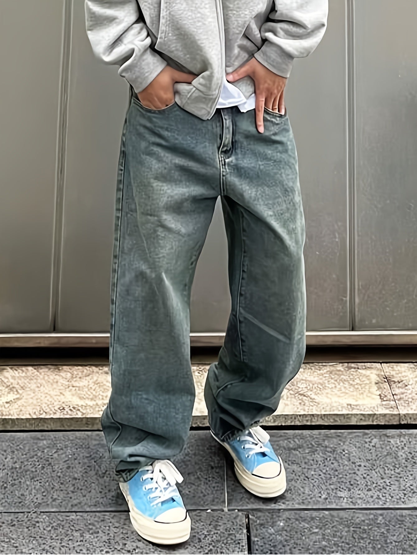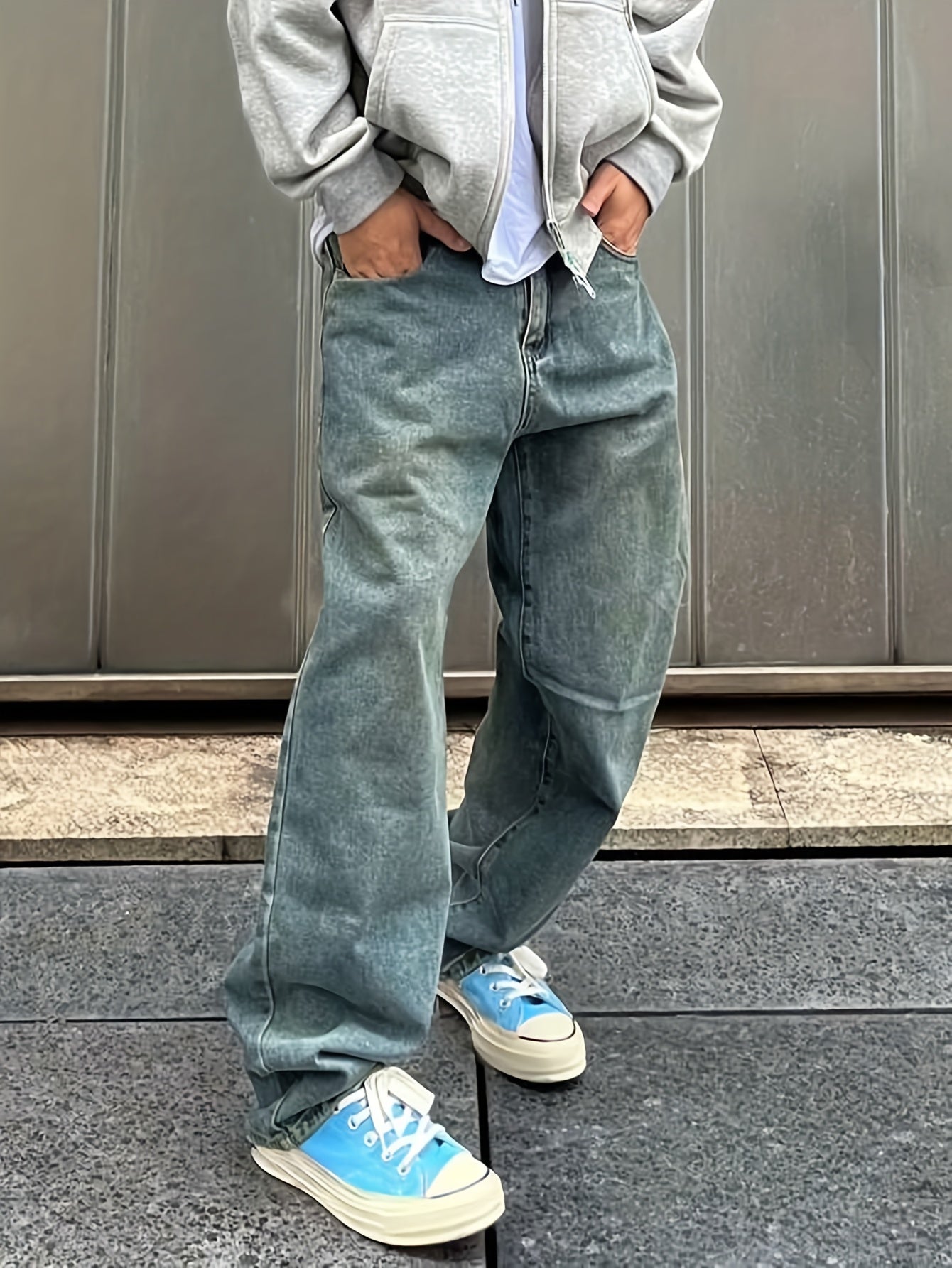 WIAOFELLAS - Men'S Stylish Loose-Fit Jeans - Cotton Blend, Street Style, Non-Stretch Denim With Pockets, Machine Washable