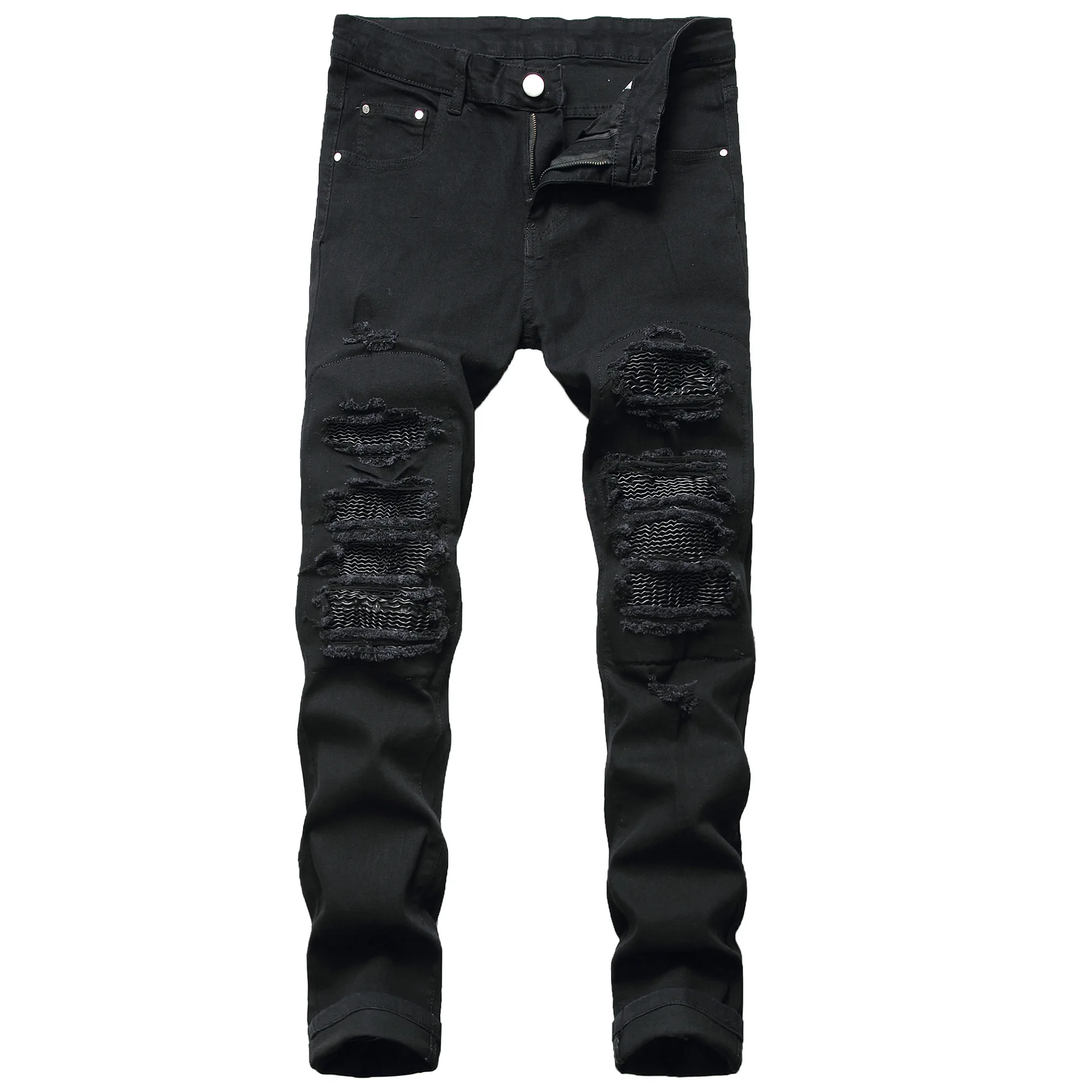 WIAOFELLAS - New Arrival Mens Ripped Hole Jeans Casual Slim Skinny Blue Black Jeans Men Trousers Fashion Male Hip hop Denim Pants