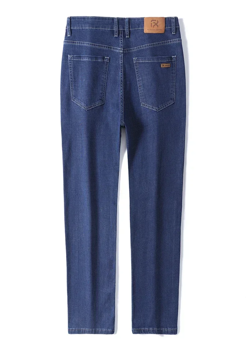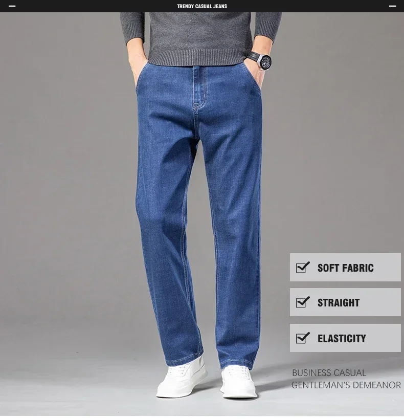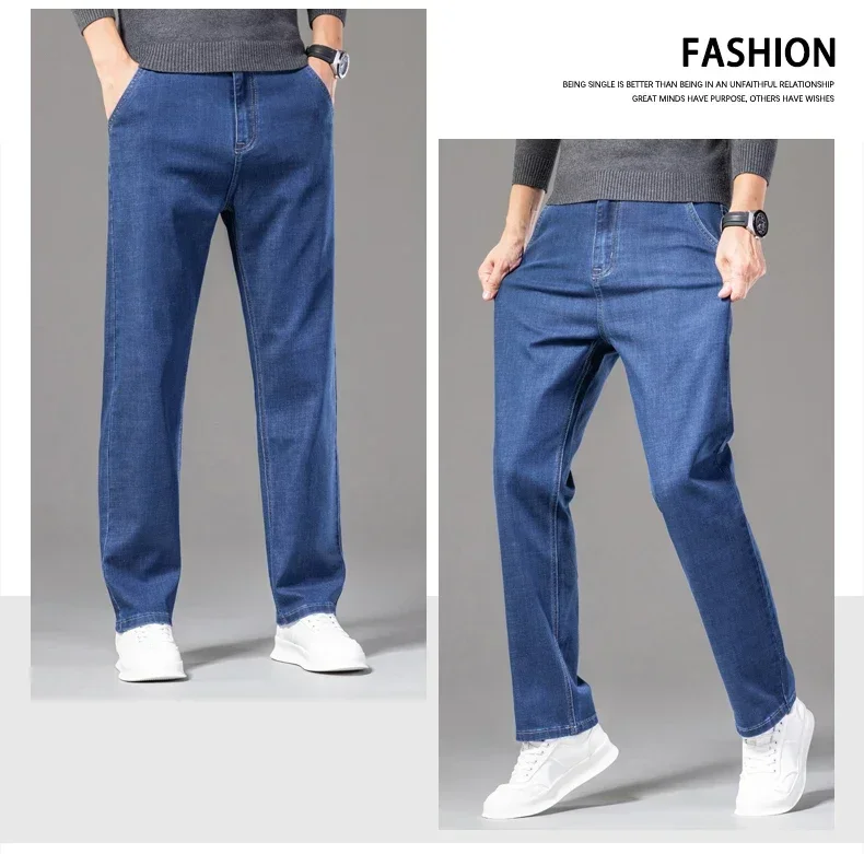 Wiaofellas - New Autumn Dark Blue Men's Loose Business Casual Jeans Classic Style Straight-fit Stretch-denim Pants Male Brand Trousers