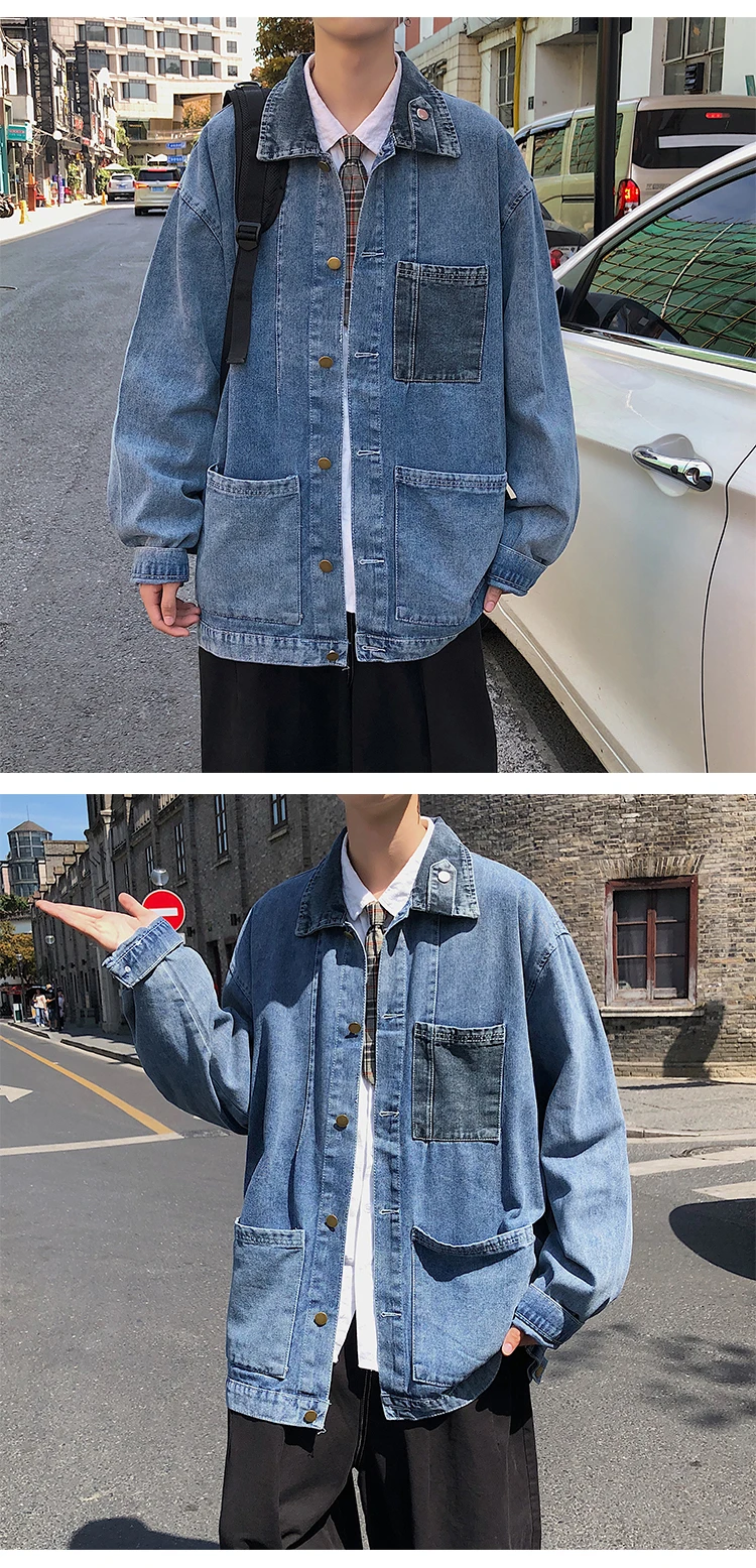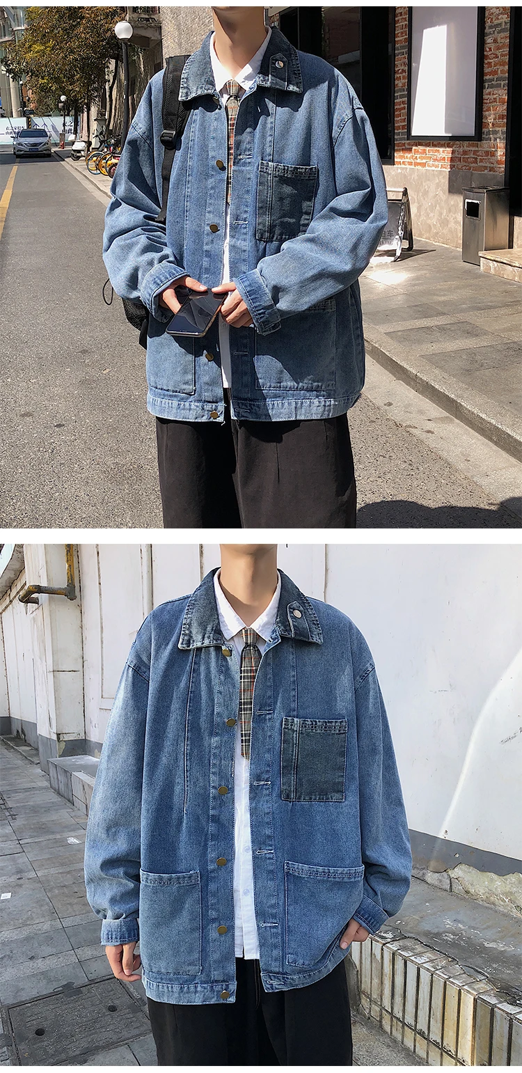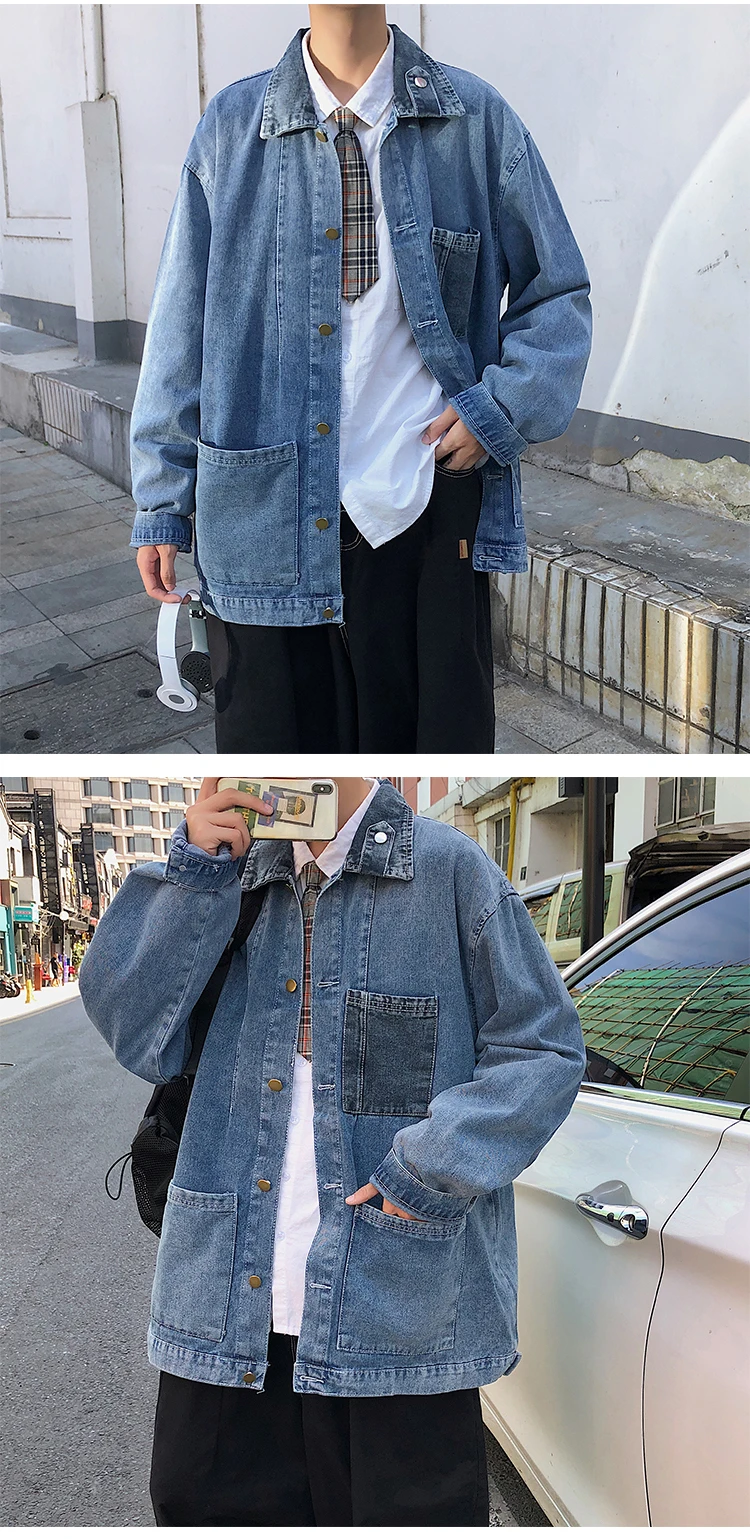 Wiaofellas New Cotton Denim Jacket Men's Casual Solid Color Lapel Single Breasted Jeans Jacket Men's Fall Loose Quality Men's Jacket