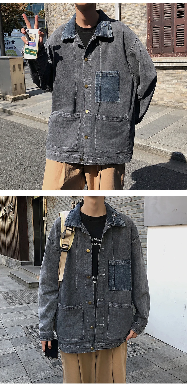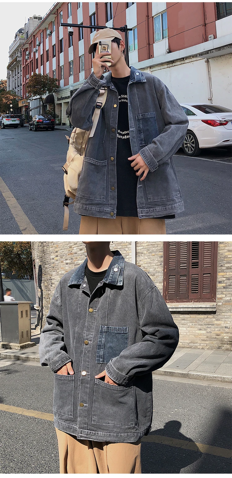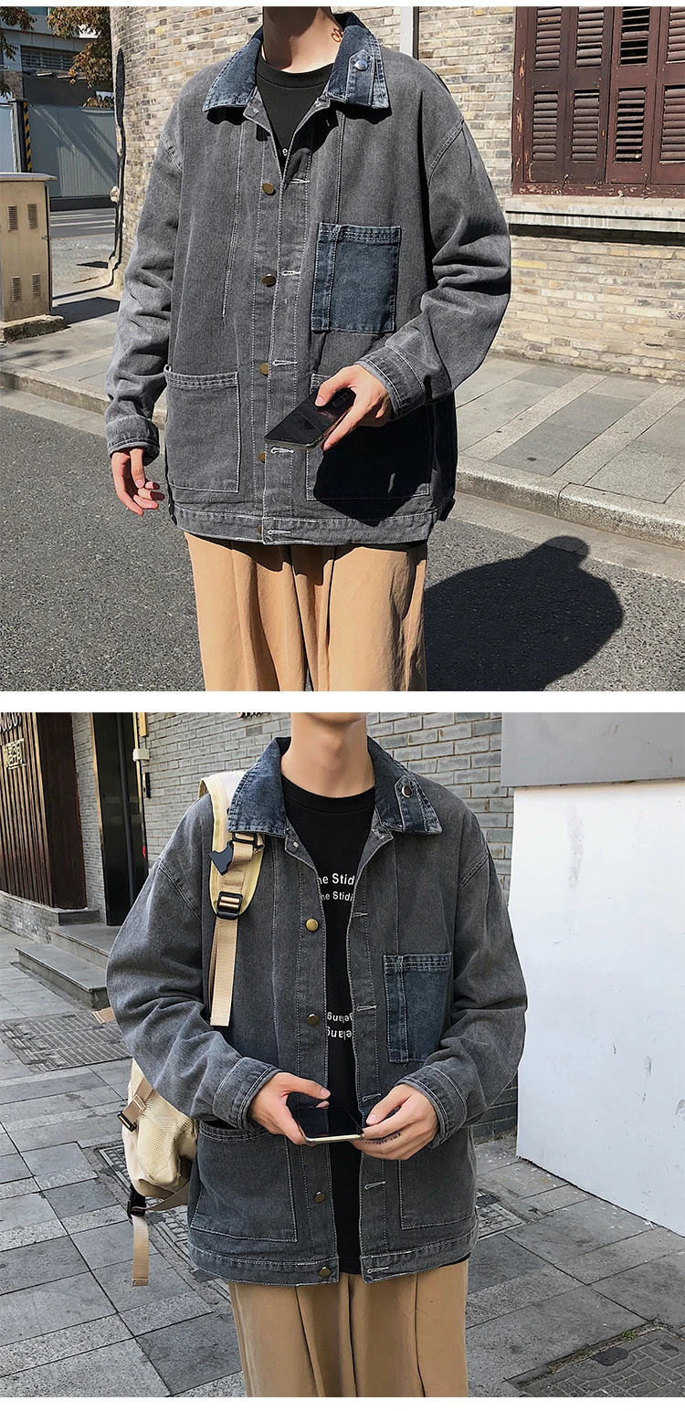 Wiaofellas New Cotton Denim Jacket Men's Casual Solid Color Lapel Single Breasted Jeans Jacket Men's Fall Loose Quality Men's Jacket