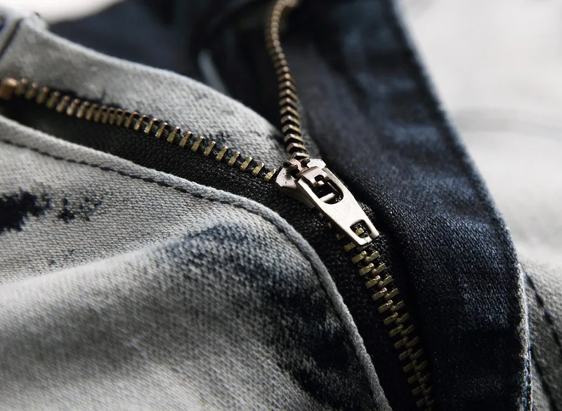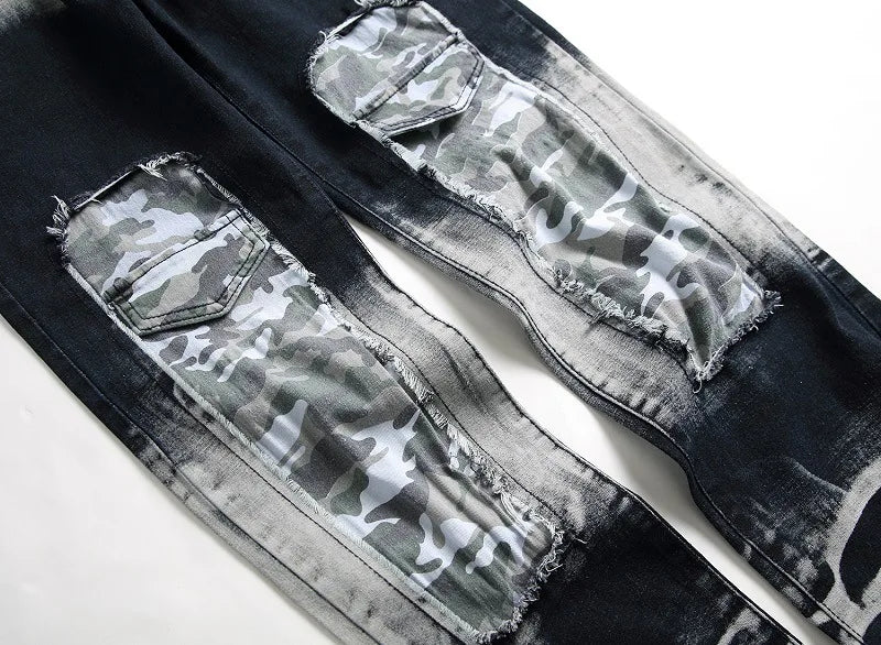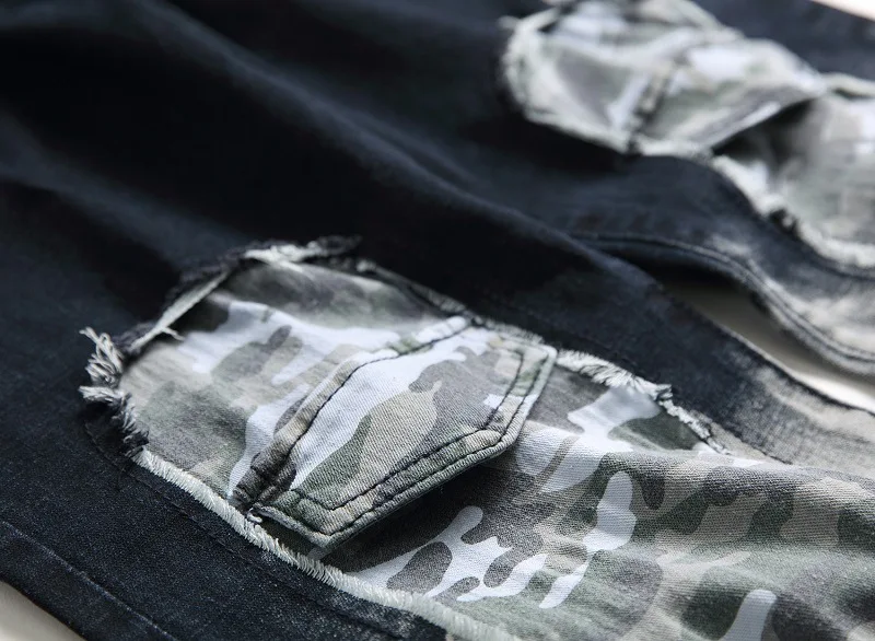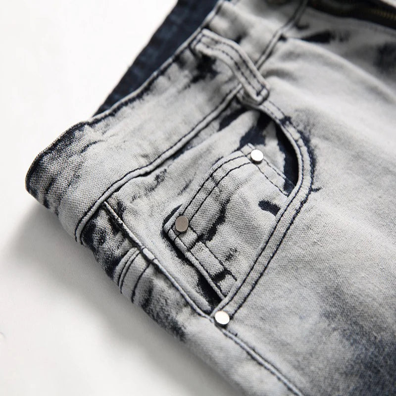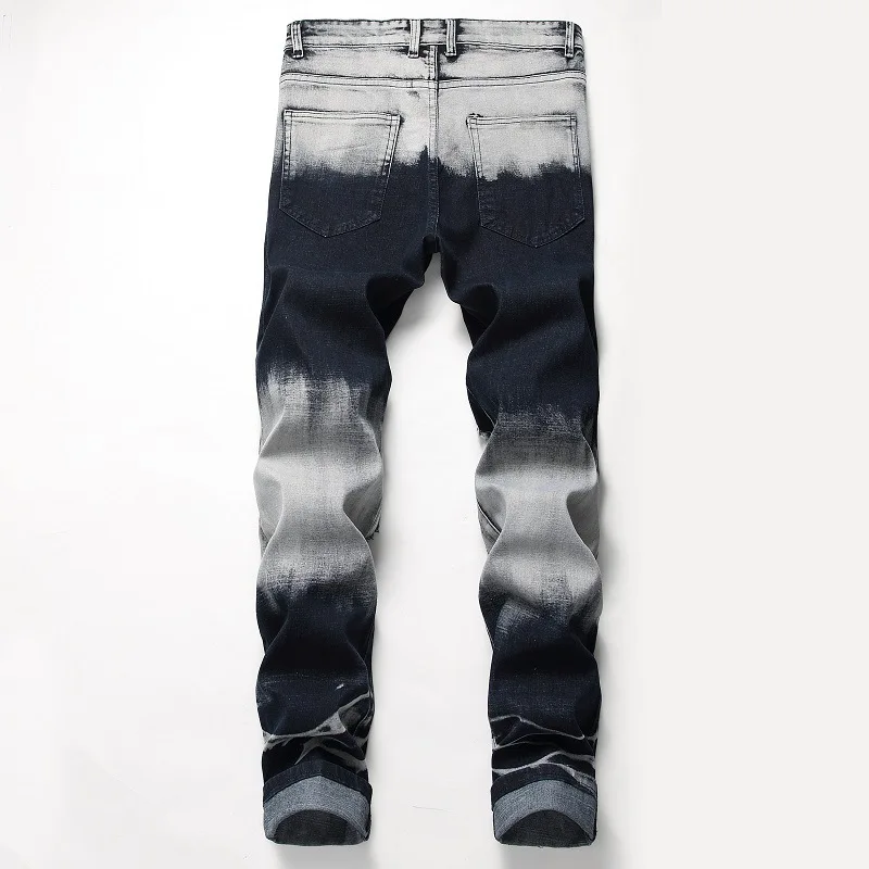 WIAOFELLAS - New Fashion Mens Casual Jeans Slim Straight Stretch Pacthwork Denim Trousers Brand Washed pants Jeans Hombre Plus Size 42