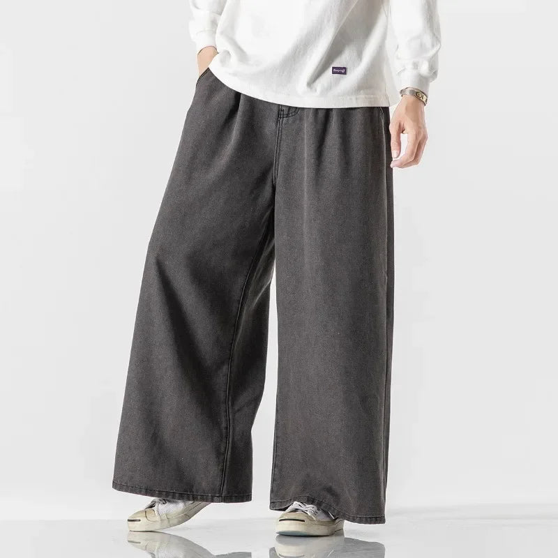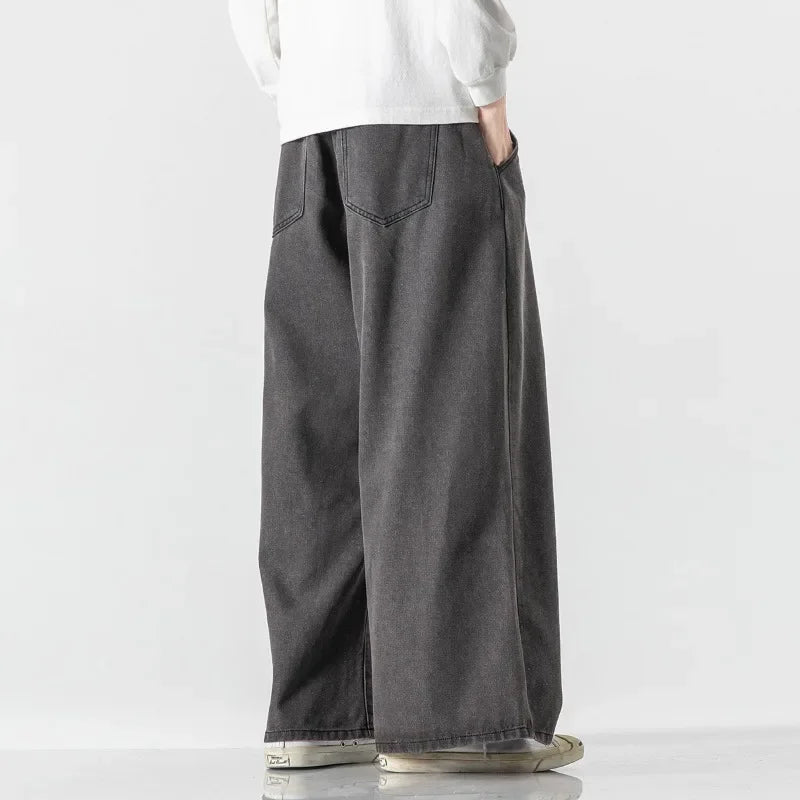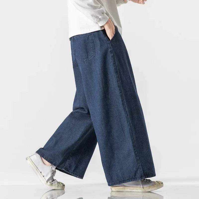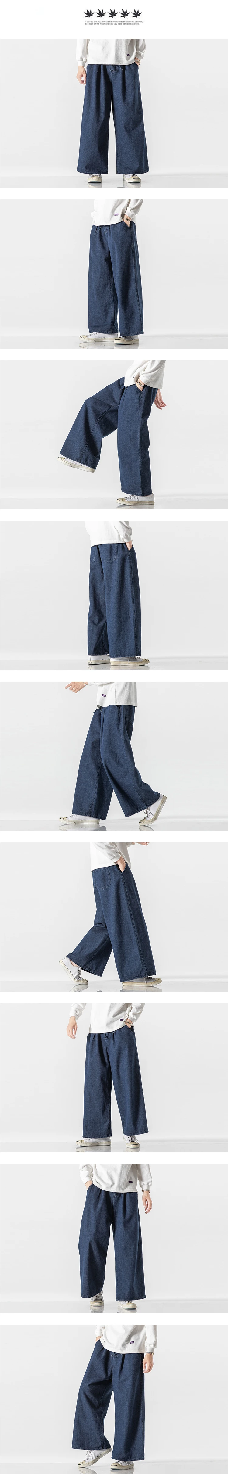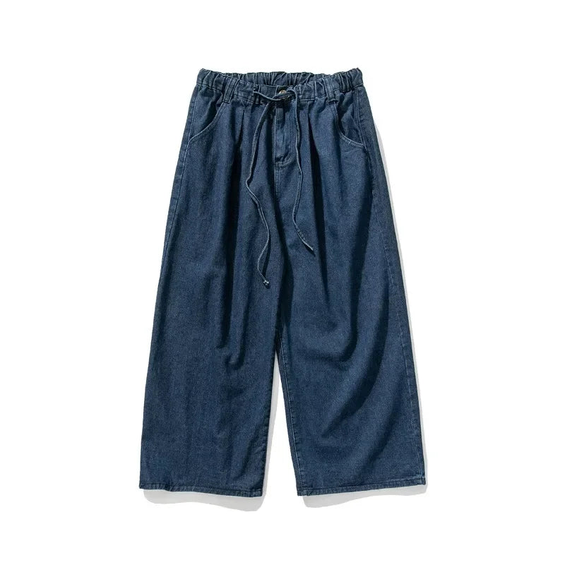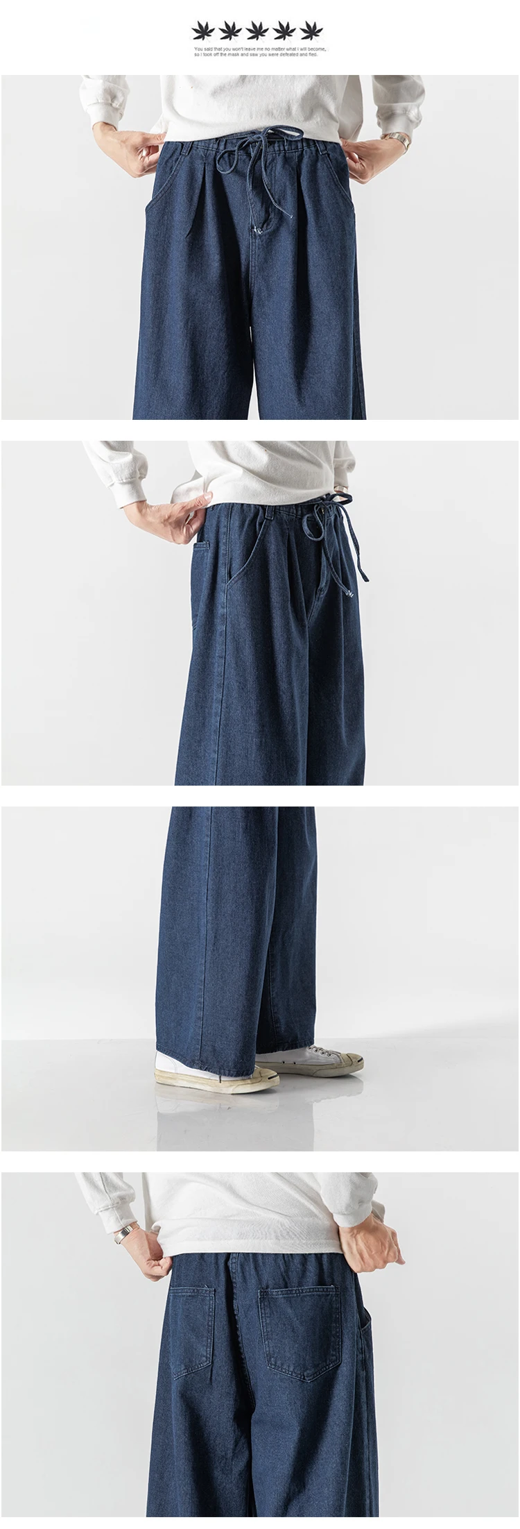 WIAOFELLAS - New Korean Men's Baggy Jeans Basic All-match Solid Color Wide Leg Denim Pants Fashion Casual Baggy Trousers Blue Black