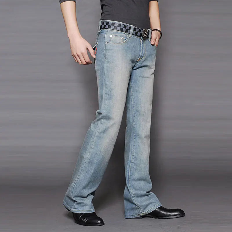 WIAOFELLAS - New Men's Jeans Slim Fit Versatile Jeans Flare Pants Retro Jeans Men's Straight Pants 27-38