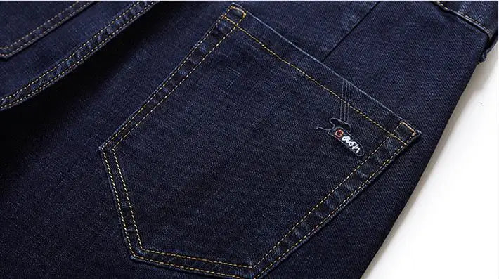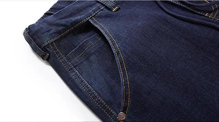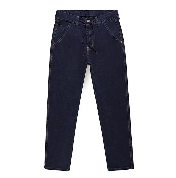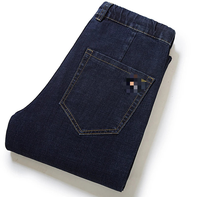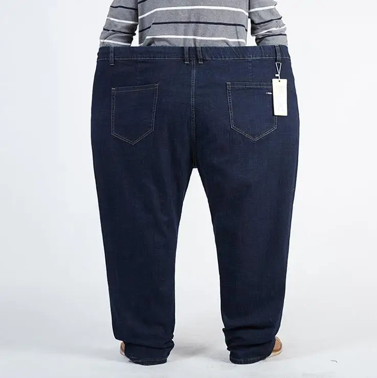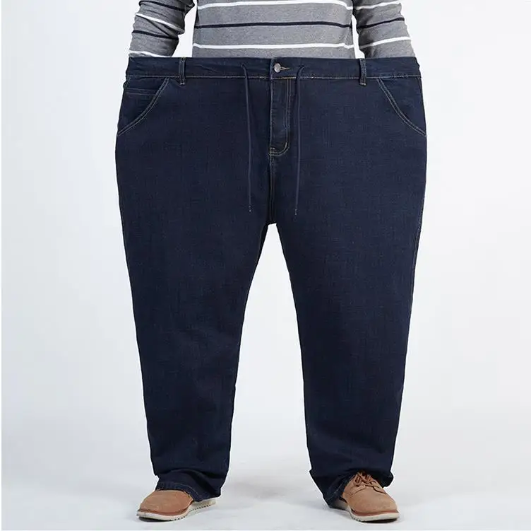 WIAOFELLAS - Plus Size 46 Mens Jeans Fashion Loose Straight Autumn Fat Man High Waist High Elastic Trousers Bottoms Jean Men Clothing