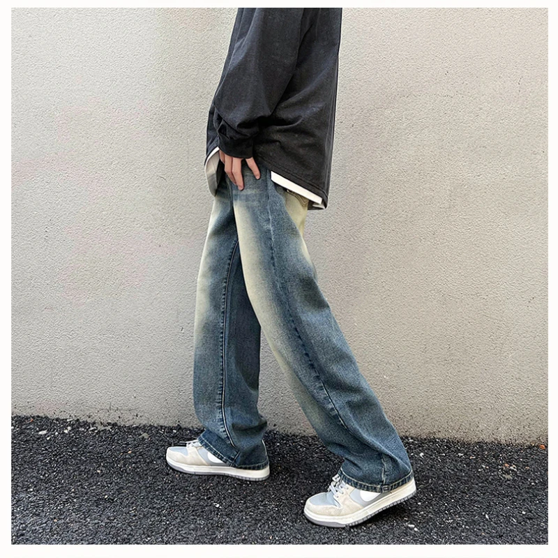 Wiaofellas Real Shot Men's Korean Version of The New Retro Washed Straight Trend All-match Nostalgic Long Pants Casual High Street Jeans