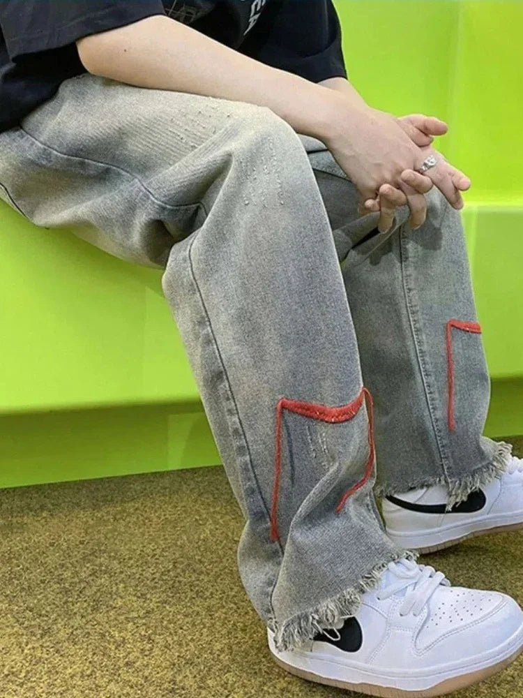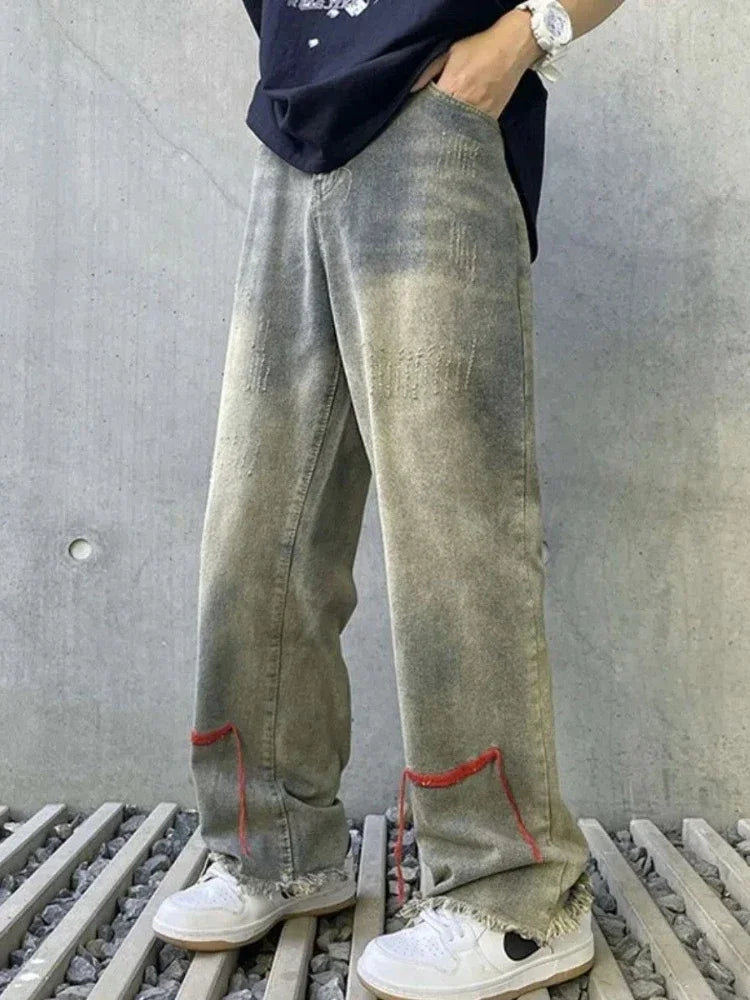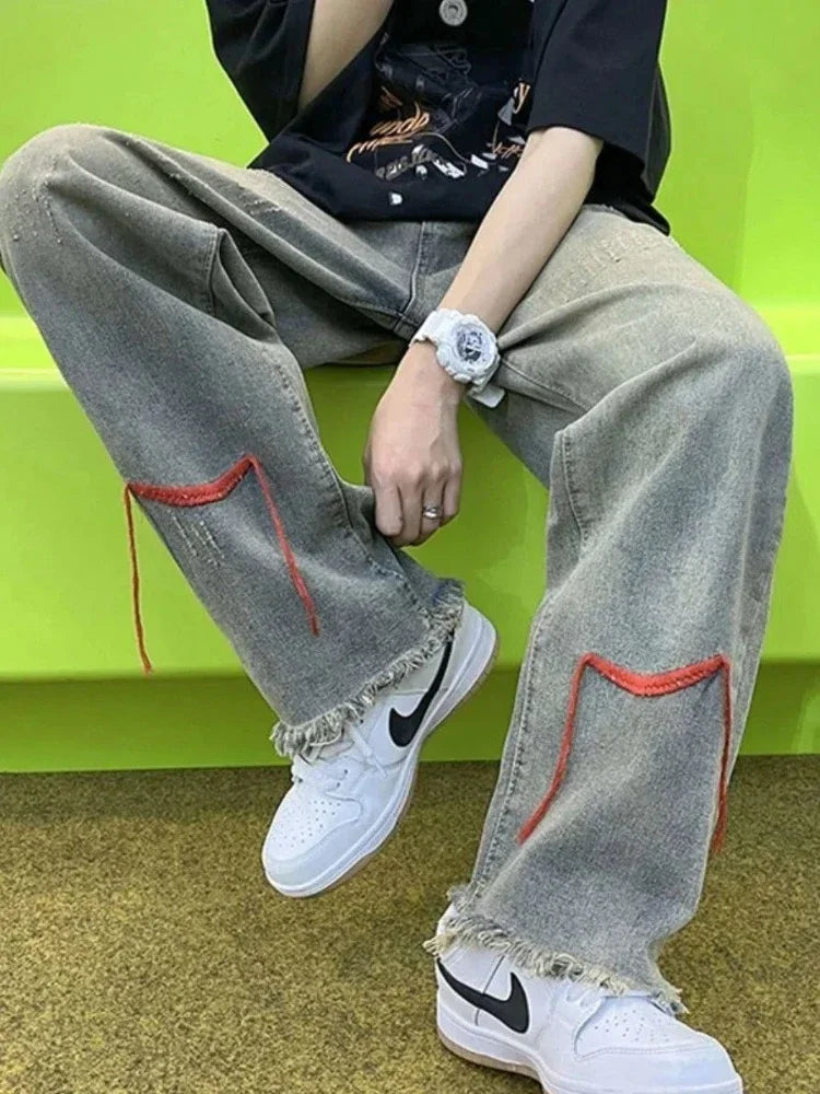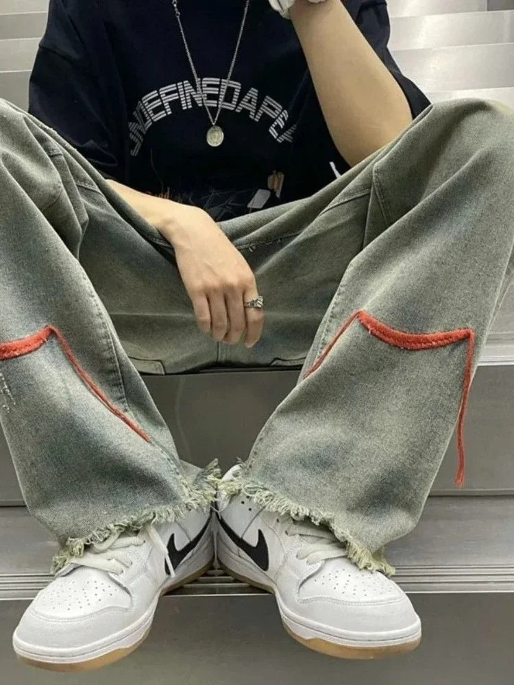 WIAOFELLAS  -  Spring Autumn Jeans American Straight Loose Jeans Mens Models High Street Denim Pants Unisex Handsome Punk Mens Jeans