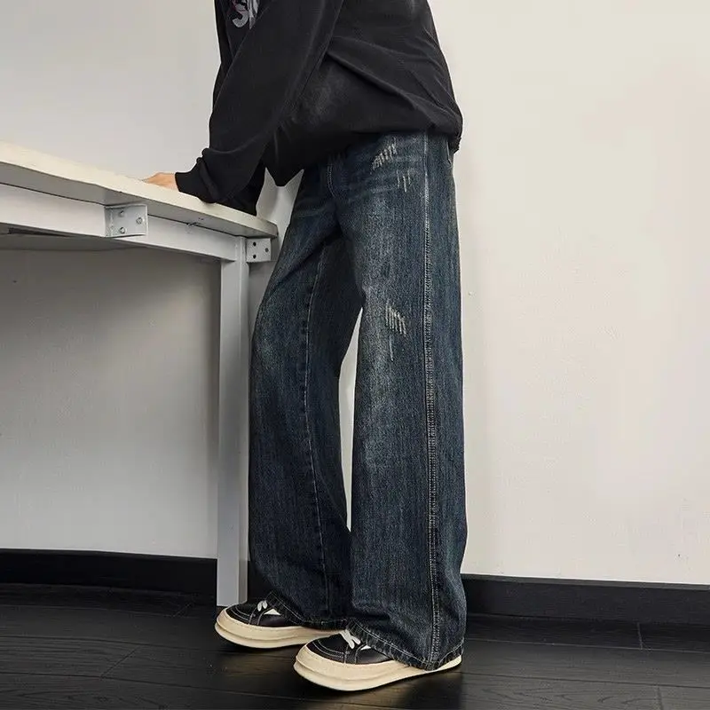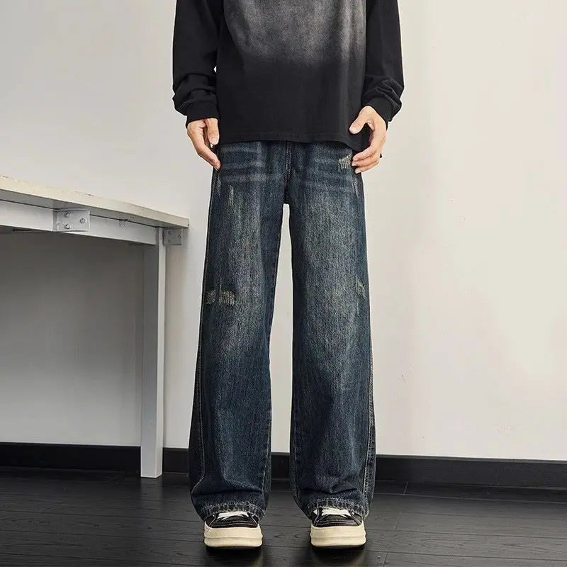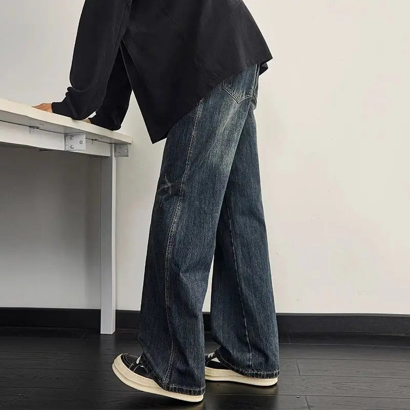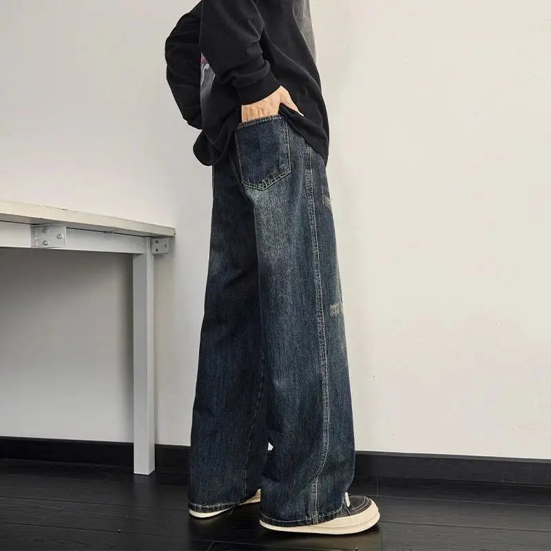WIAOFELLAS - Spring Autumn Men and Women Trendy Personalized Straight Leg Jeans American Couple Loose Retro Harajuku Casual Pants Y2k