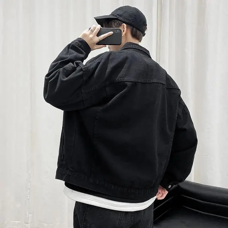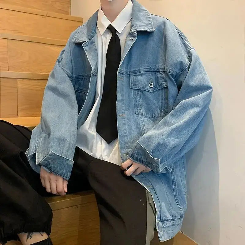 WIAOFELLAS - Spring Autumn Solid Color Turn-down Collar Long Sleeve Jeans Women High Street Pure Cotton Loose Button Cardigan Casual Outwear