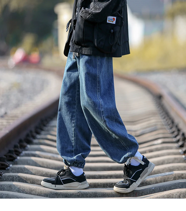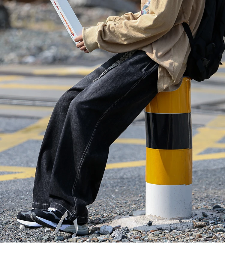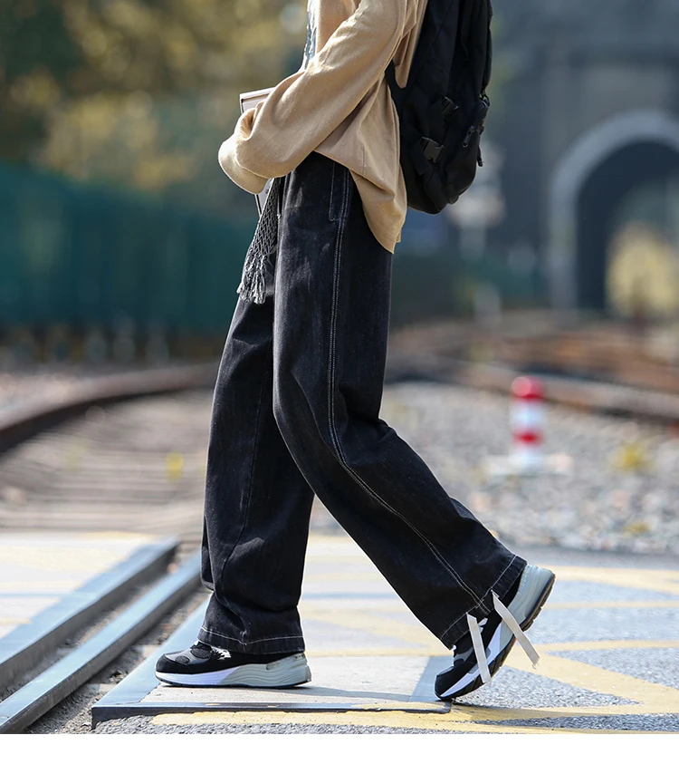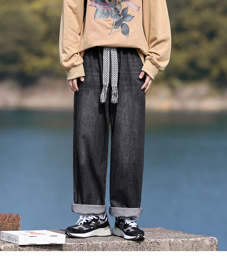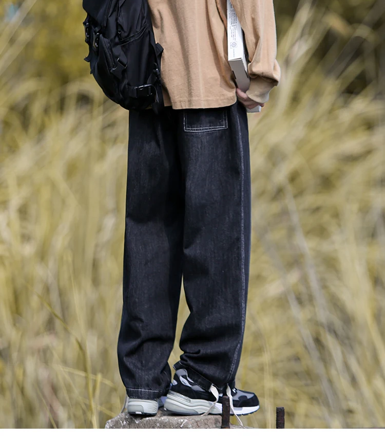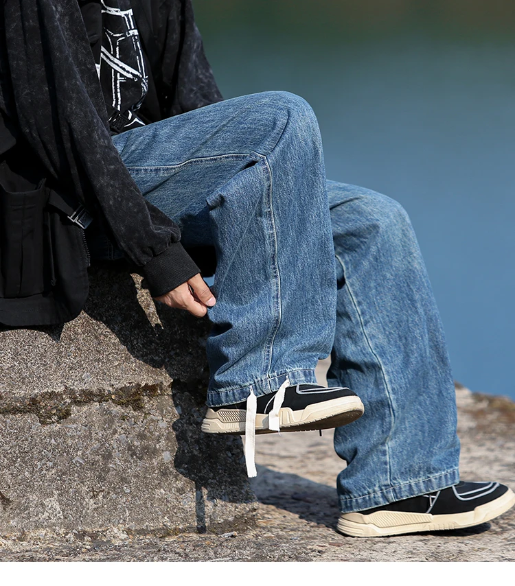 Wiaofellas Streetwear Retro Loose Jeans Men Classic All-match Leisure Straight Wide-leg Pants Hip-hop Street Dance Rap Trousers Male Autumn