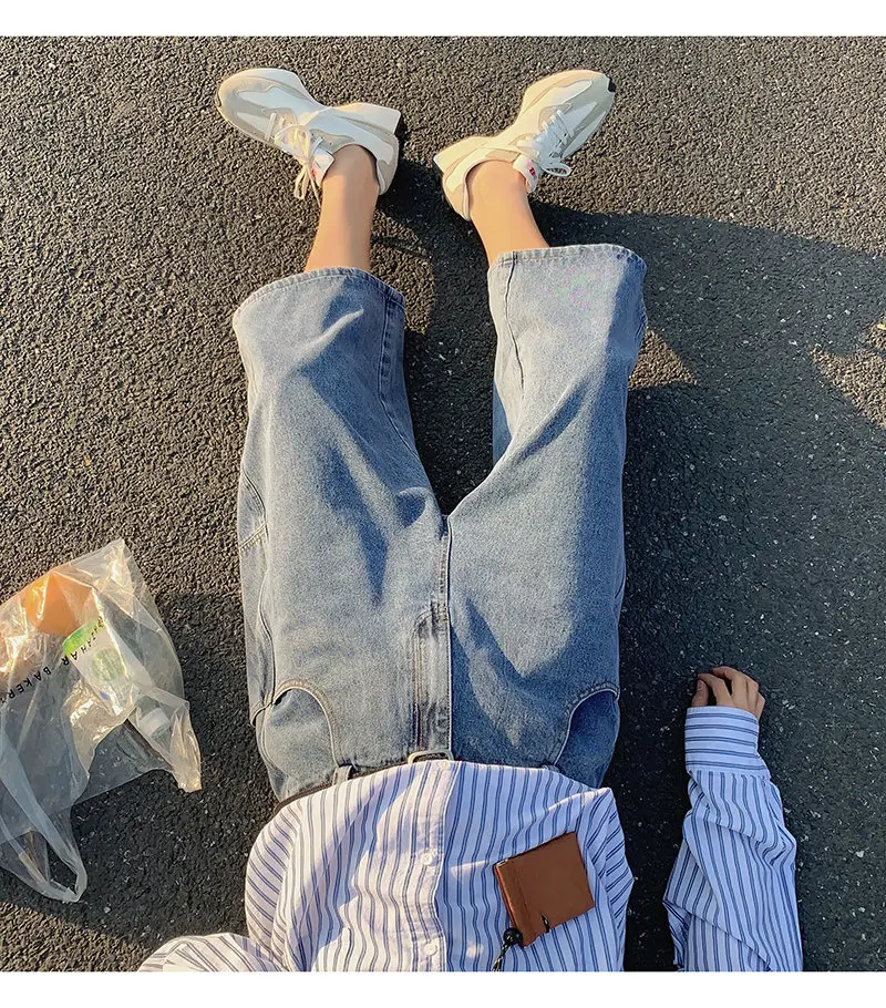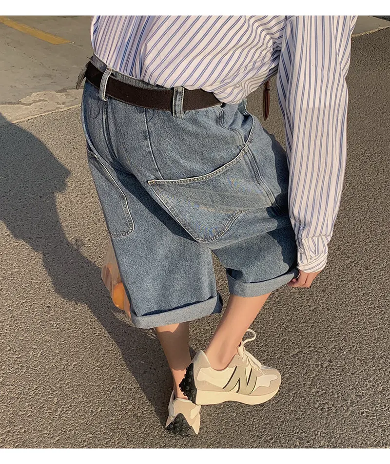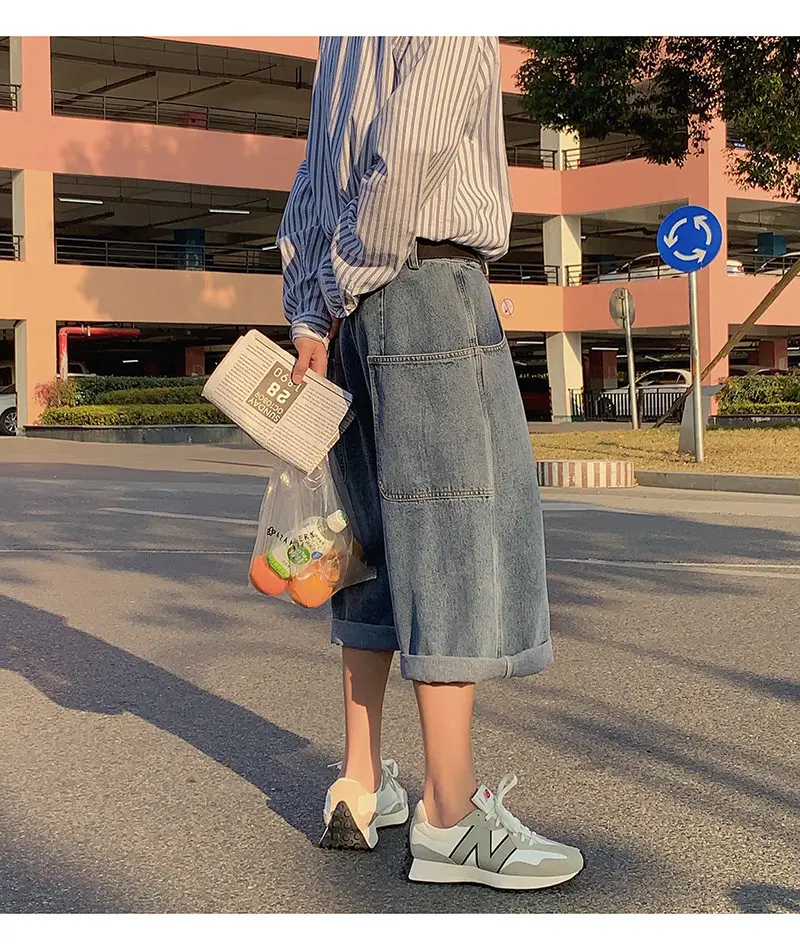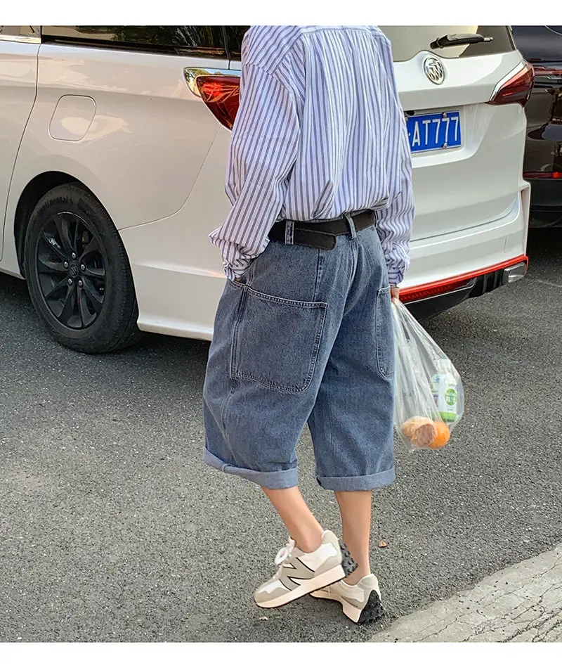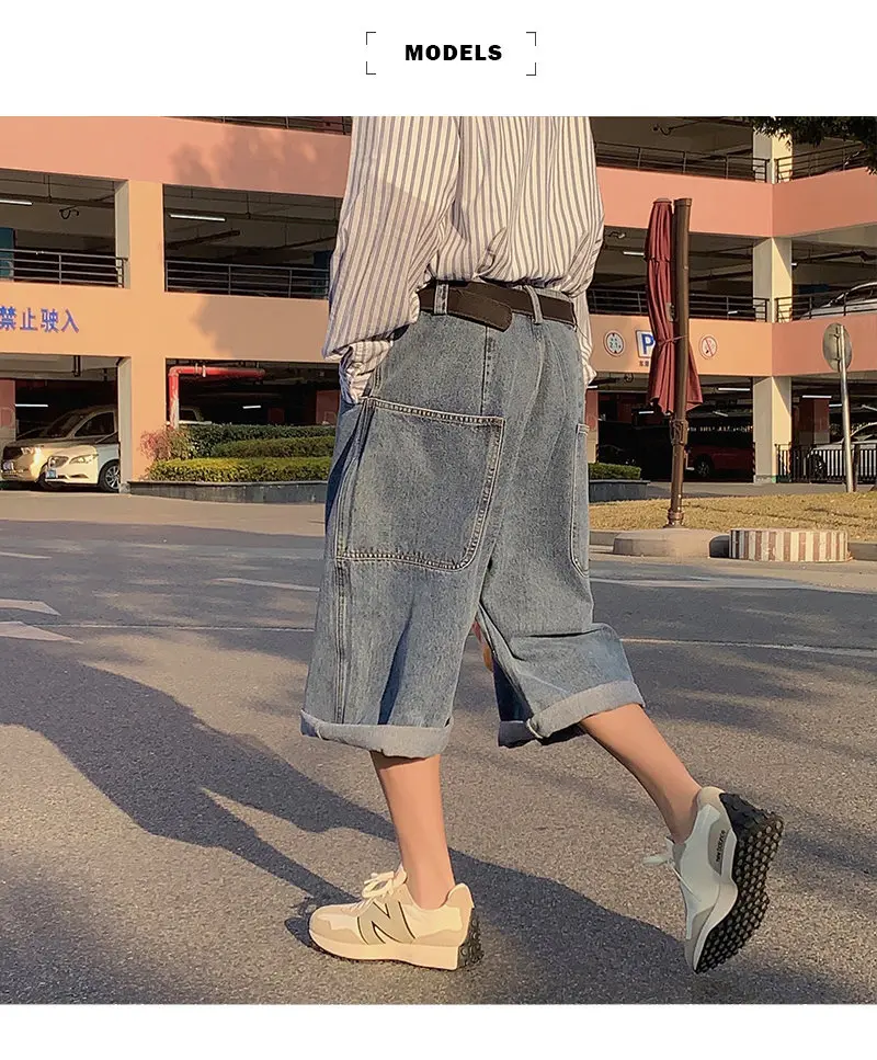 Wiaofellas Summer Blue Jeans Men Fashion Retro Oversized Jeans Mens Streetwear Hip-hop Loose Straight Denim Shorts Men Cropped Trousers