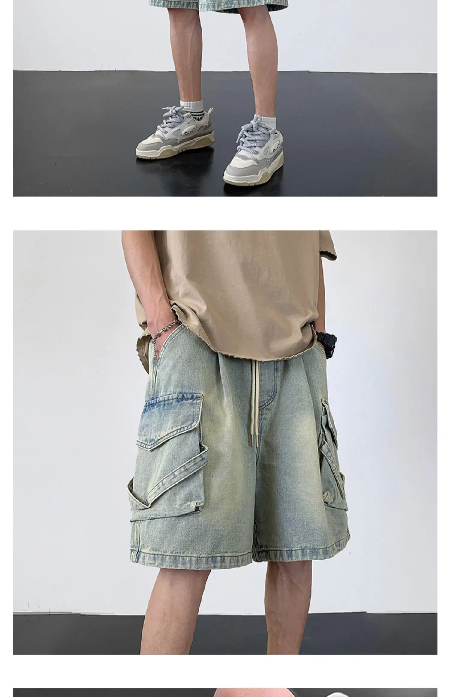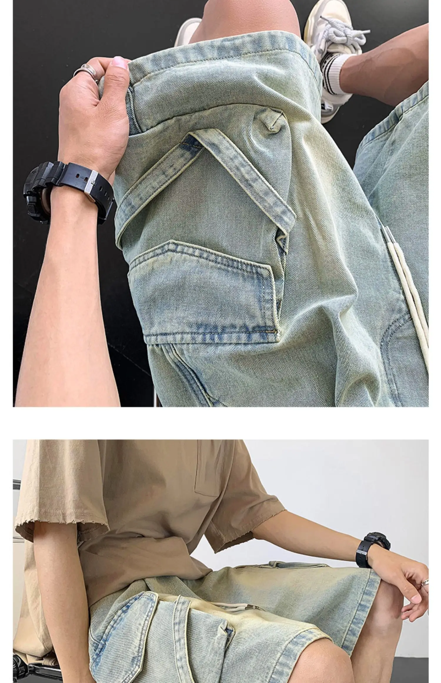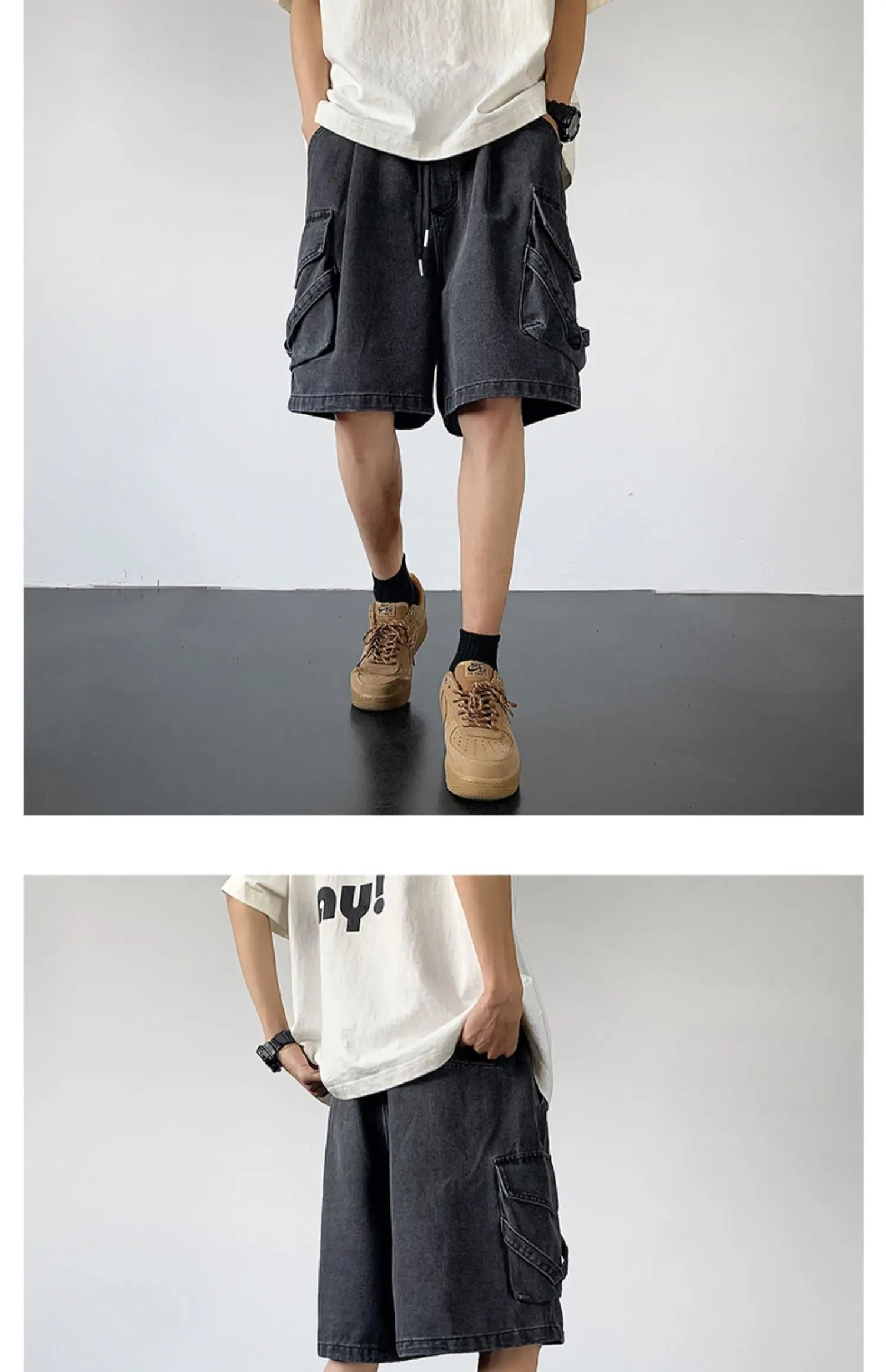 Wiaofellas Summer Denim Shorts Men Fashion Retro Pocket Denim Shorts Mens Japanese Streetwear Hip Hop Loose Cargo Jeans Shorts Men M-3XL