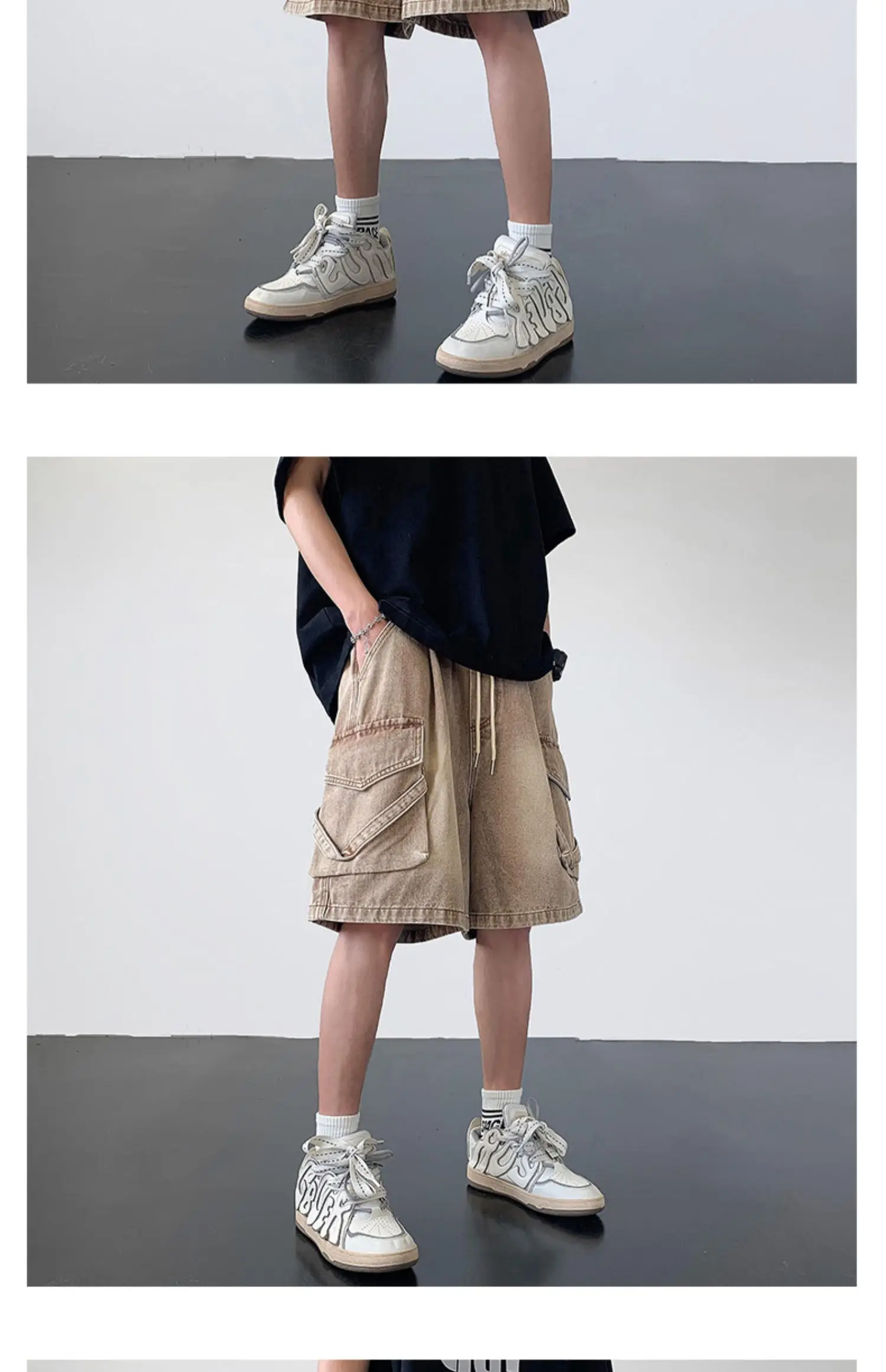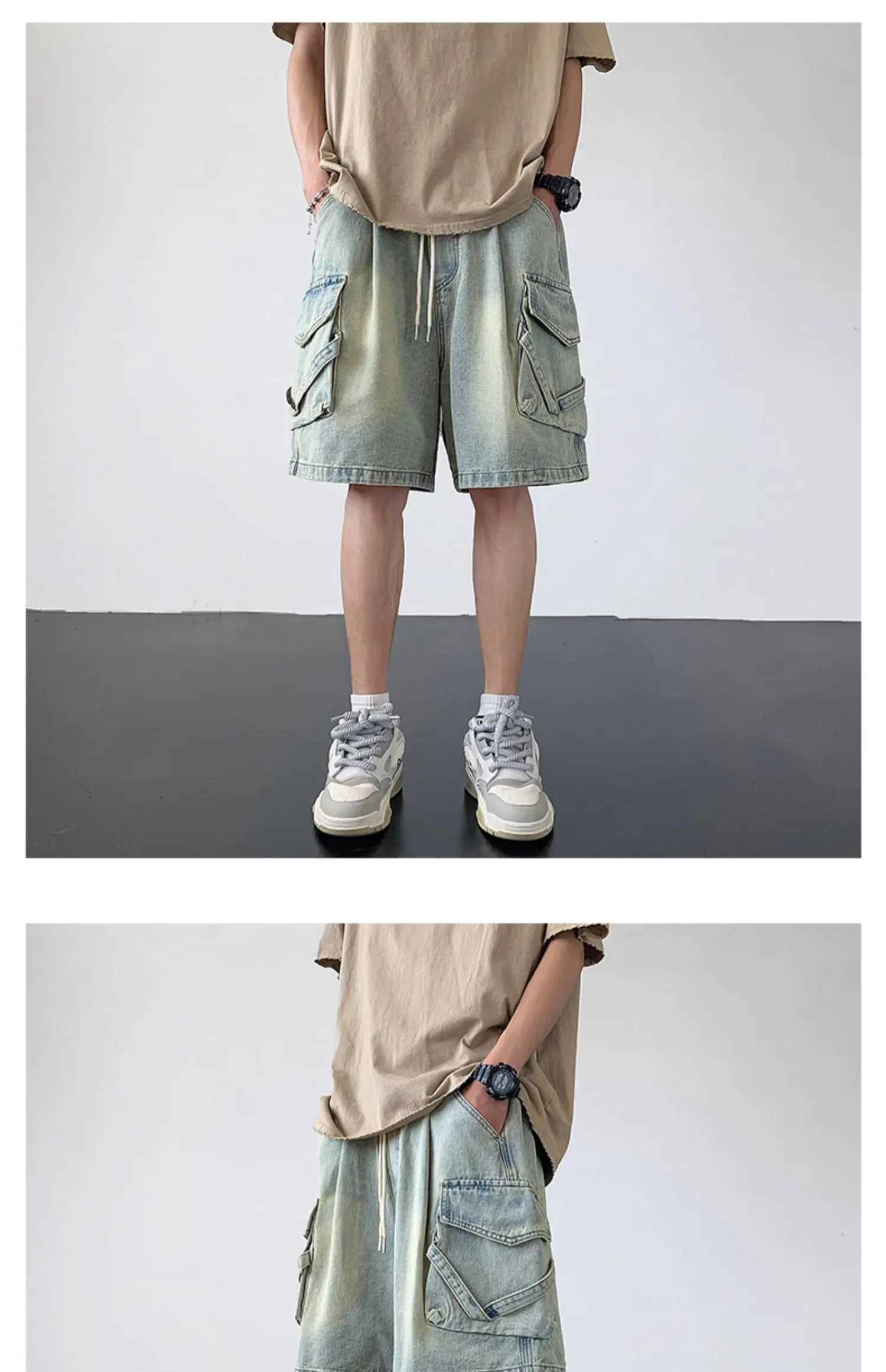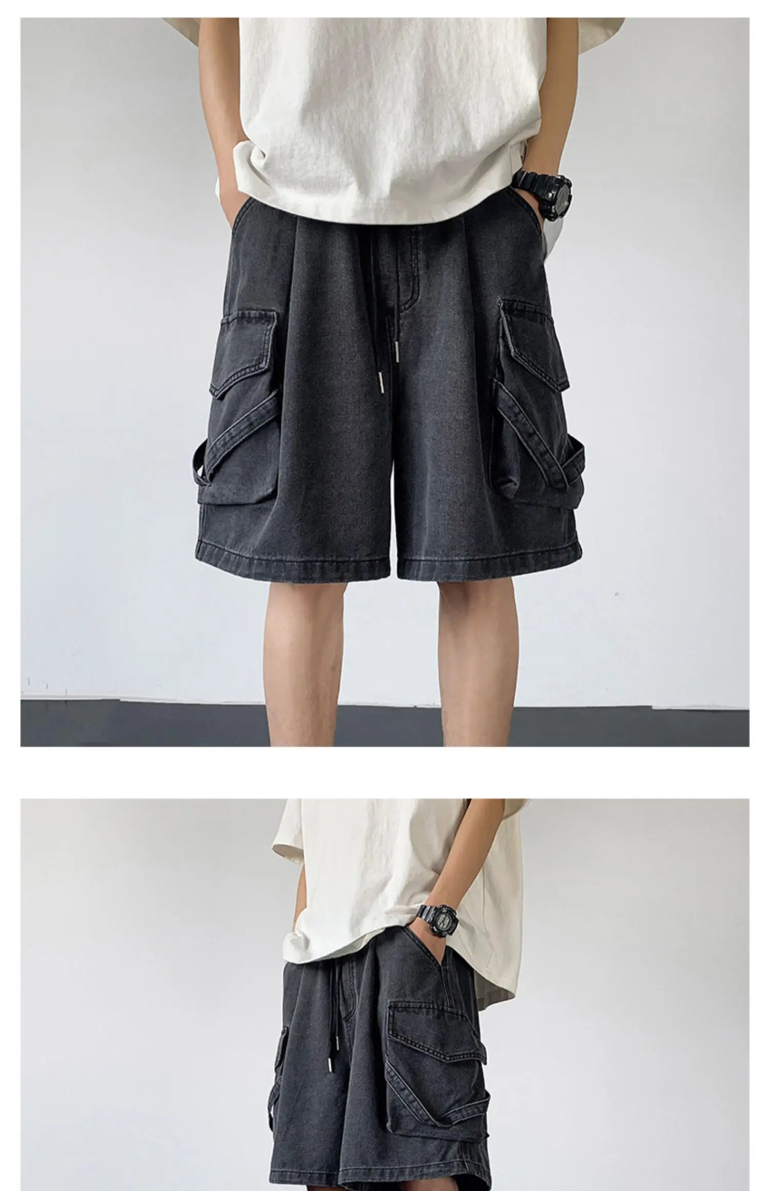 Wiaofellas Summer Denim Shorts Men Fashion Retro Pocket Denim Shorts Mens Japanese Streetwear Hip Hop Loose Cargo Jeans Shorts Men M-3XL