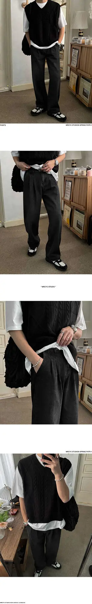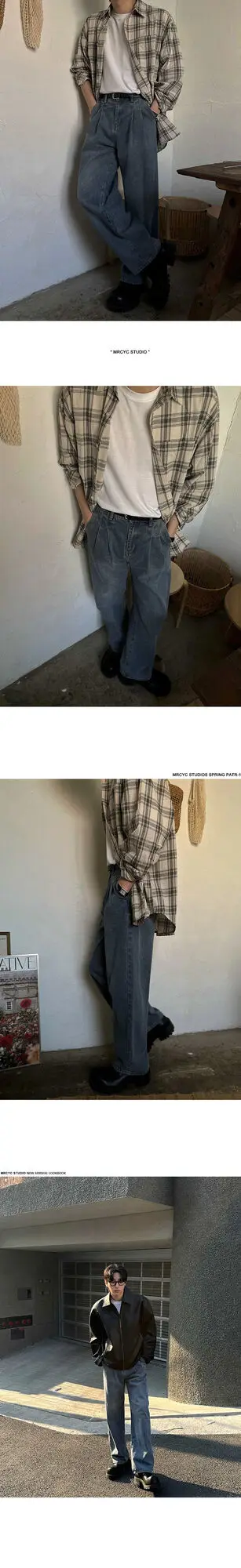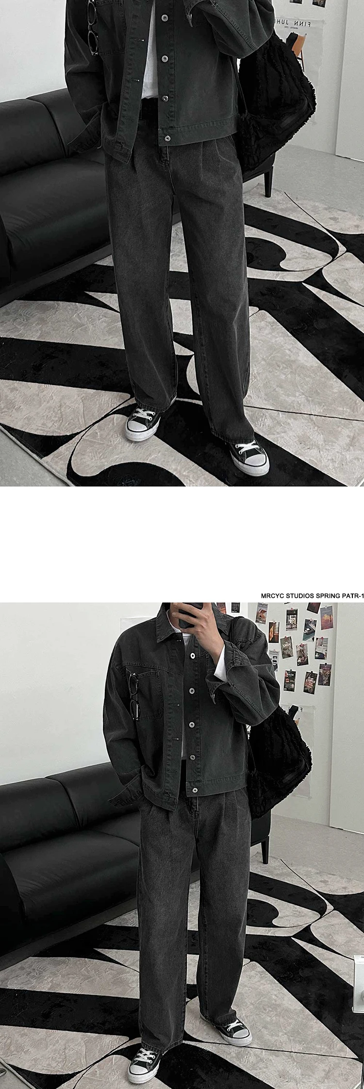 WIAOFELLAS  -  Versatile Straight Leg Jeans Men 2025 Spring Loose Casual Denim Pants Korean Trend Solid Color Simple Male Bottom