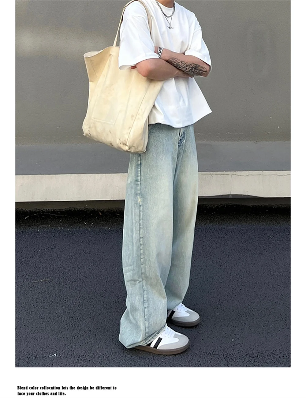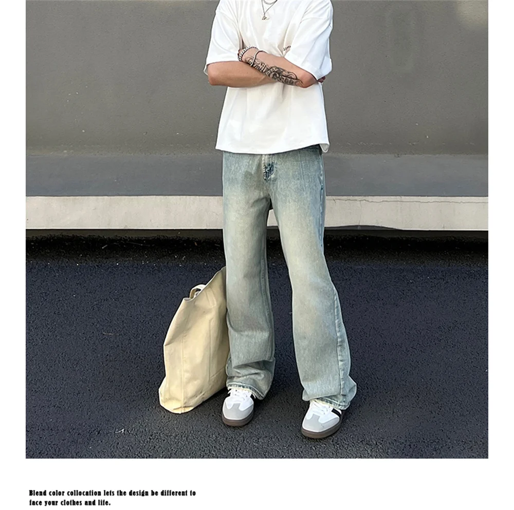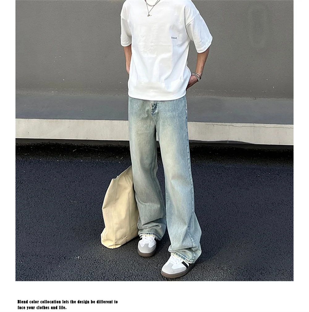 Wiaofellas - Wide Leg Jeans Men Simple Baggy Y2k Vaqueros Trousers Streetwear Autumn Loose Straight-leg Summer Hip Hop Oversized Denim Pants