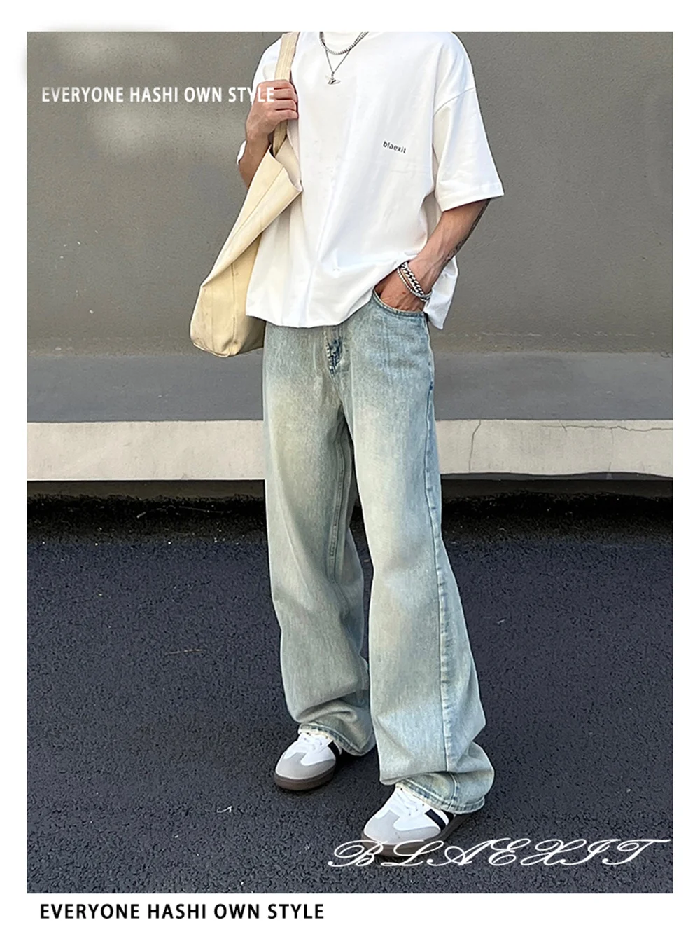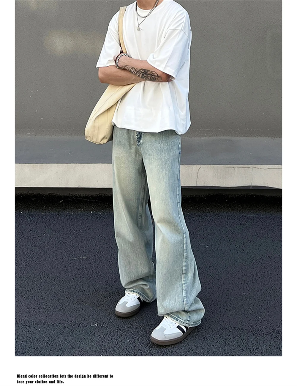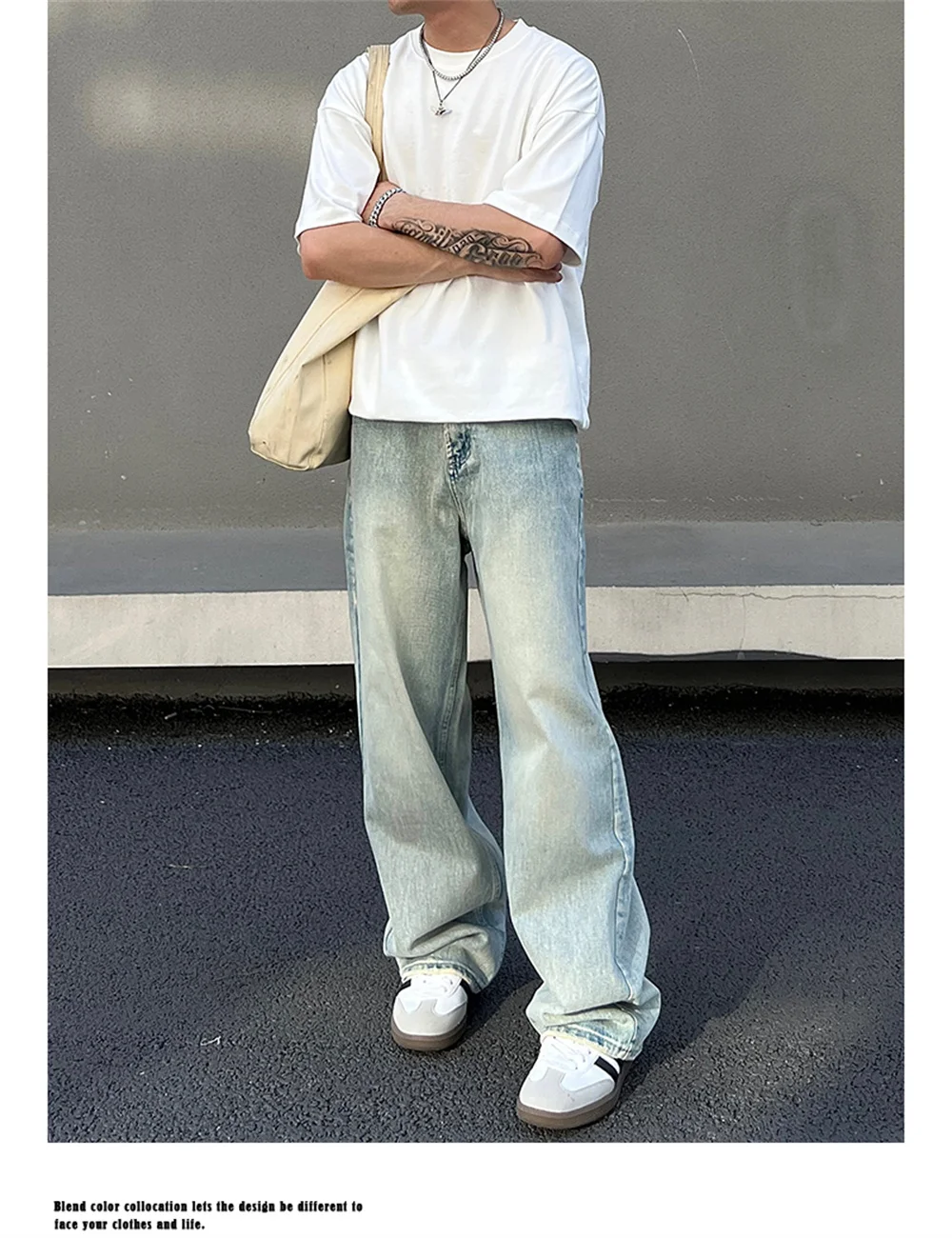 Wiaofellas - Wide Leg Jeans Men Simple Baggy Y2k Vaqueros Trousers Streetwear Autumn Loose Straight-leg Summer Hip Hop Oversized Denim Pants