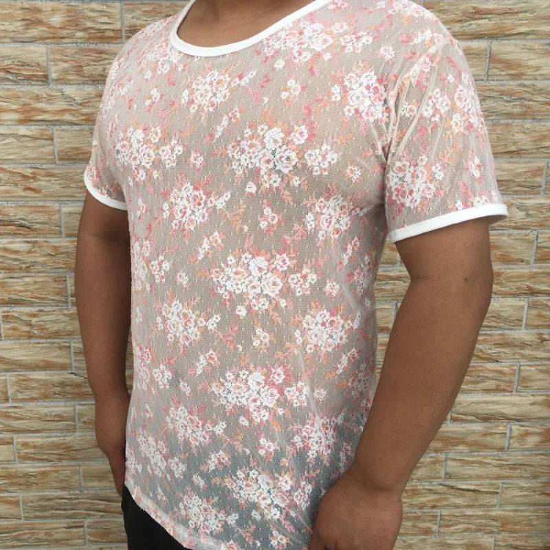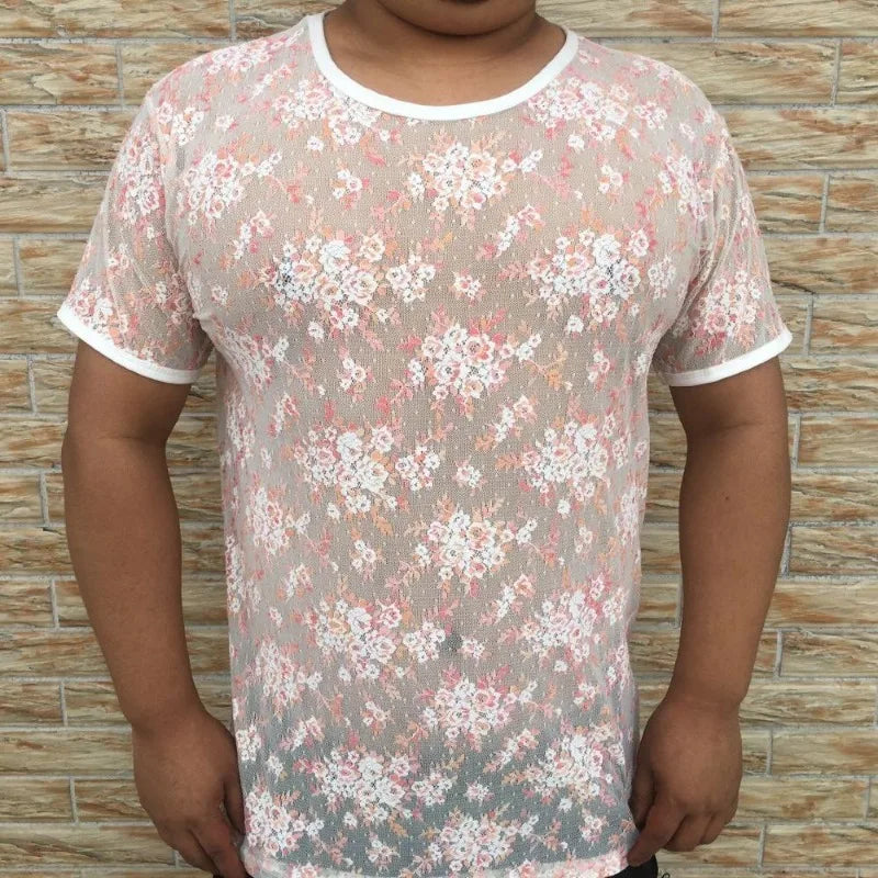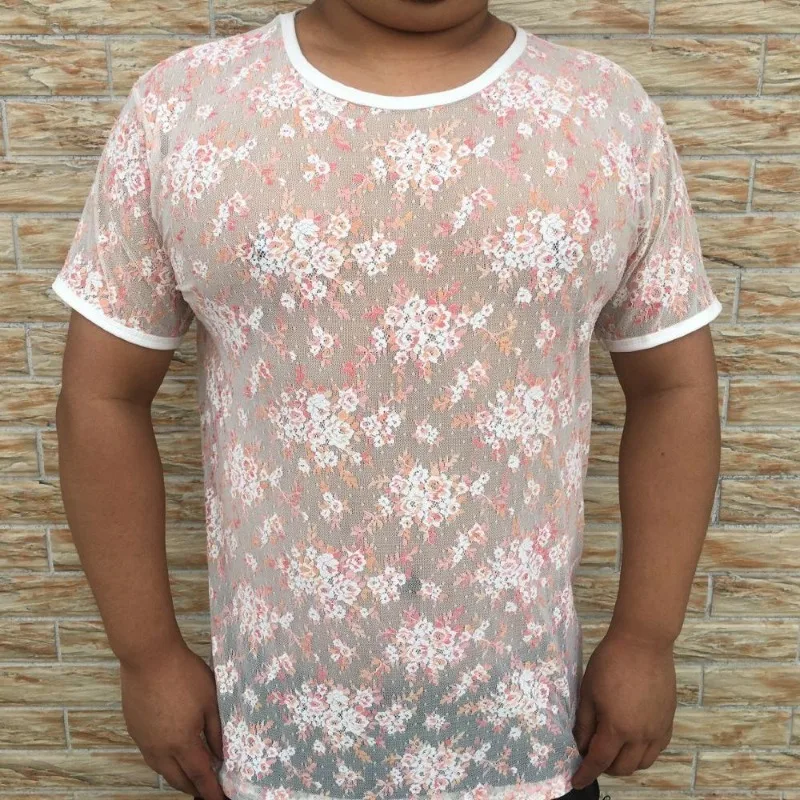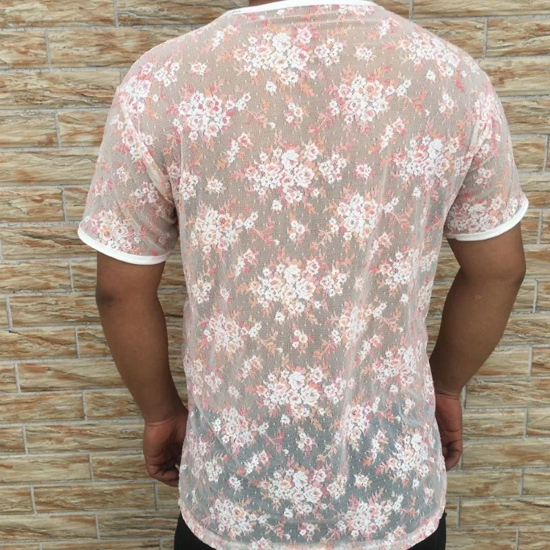 WIAOFELLAS - Summer Men's Clothing 2024 Spliced Printed Slim Fit Perspective Mesh T-shirt Fashionable Casual Short Sleeved O-Neck Sexy Tops