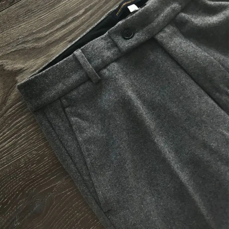 Wiaofellas - Autumn Winter Large Size Woolen Business Dress Pants Men High Waist Streetwear Casual Trousers Formal Social Suit Pant F206