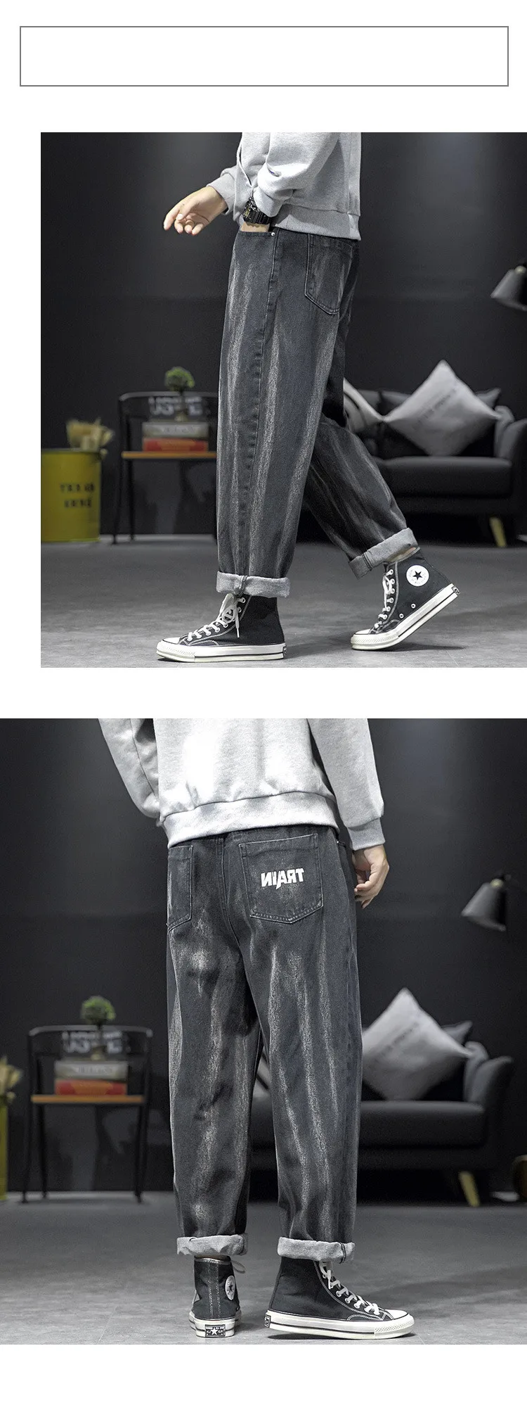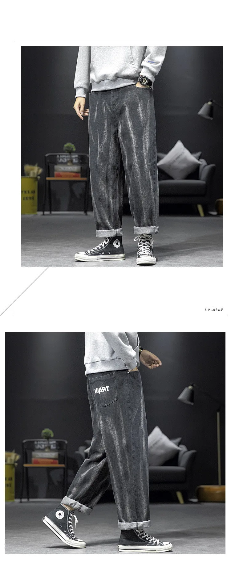 Wiaofellas Autumn New Men's Denim Pants Tripe Loose Large Size Pocket Stretchy Breathable Personality Fashion Casual Male Wide Leg Pants