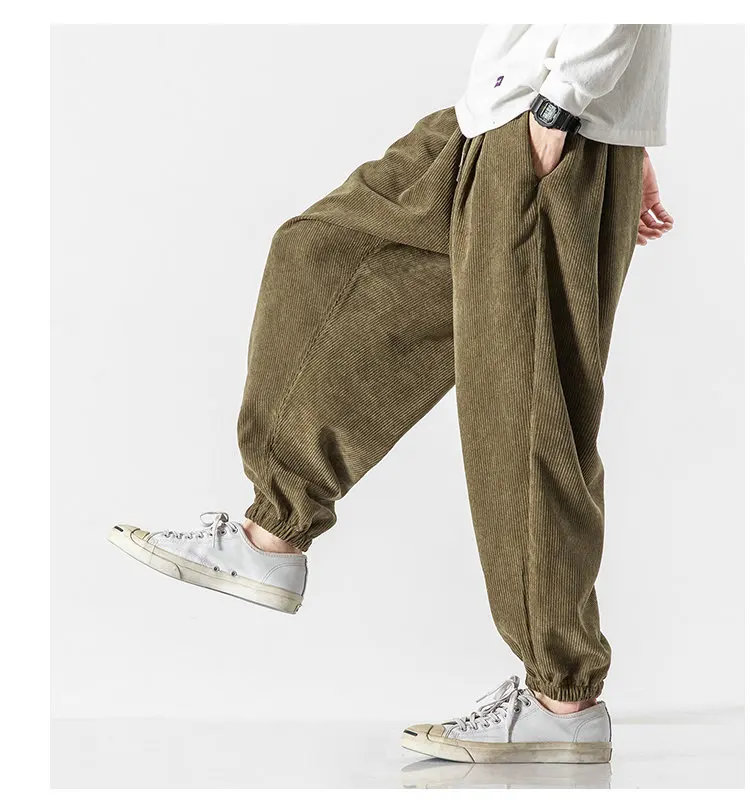 Wiaofellas Men's Corduroy Harem Pants Fashion Men Jogging Sweatpants Big Size Cotton Woman Casual Streetwear Trousers
