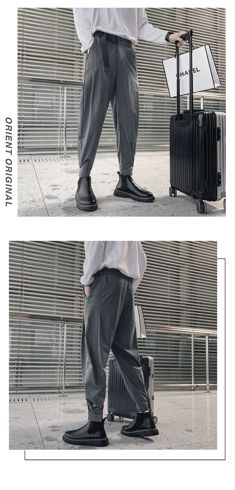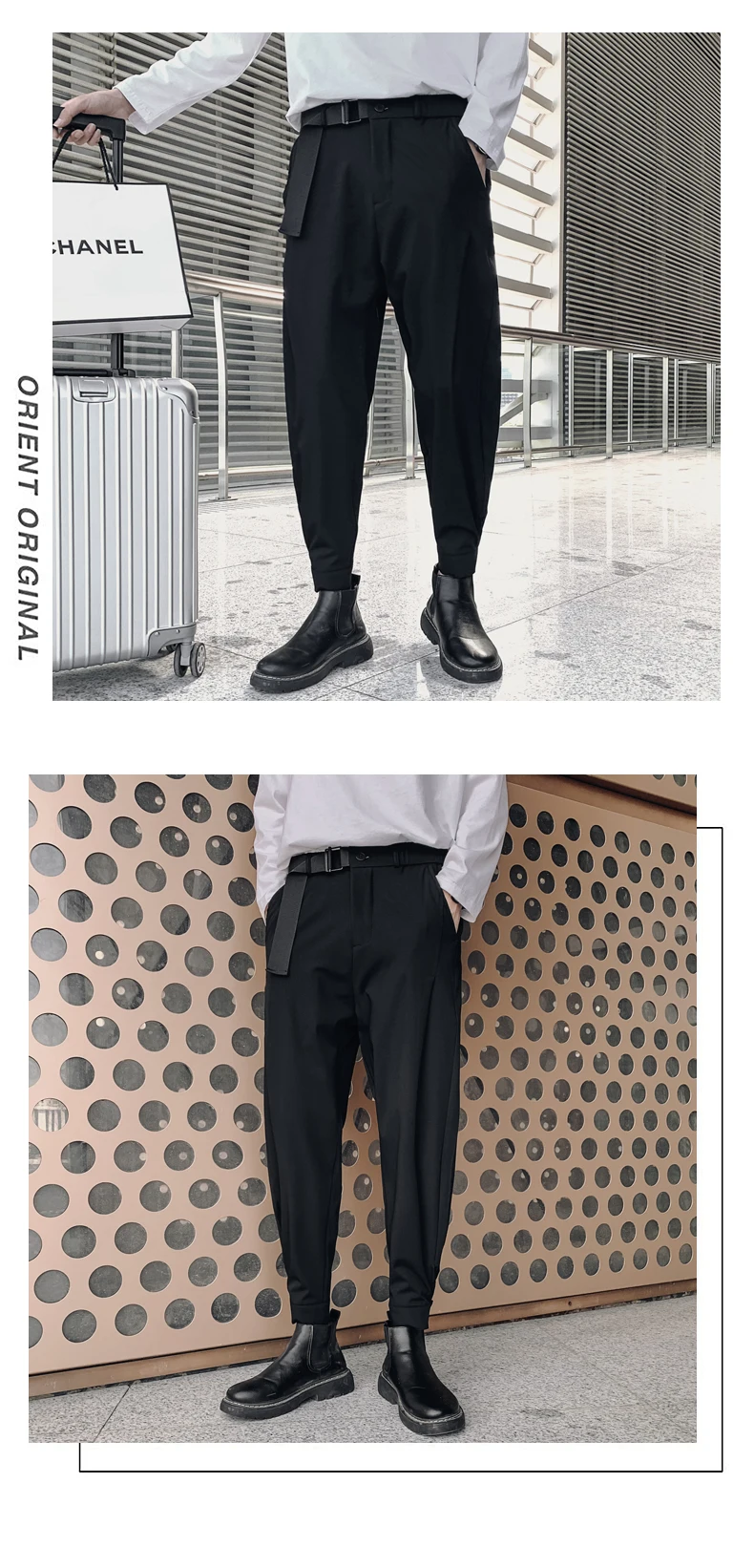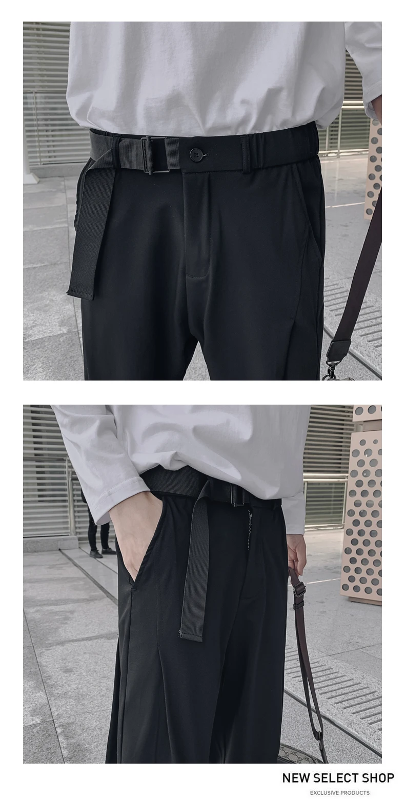 Wiaofellas New Design Men's Trousers Belt Spring Vertical Conical Long Pants Elastic Waist To Ankle Fashionable Men Jogging Pants
