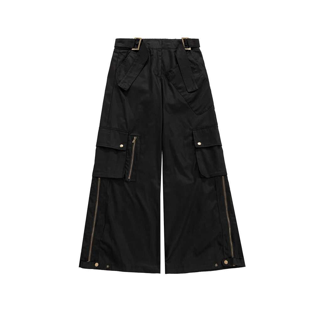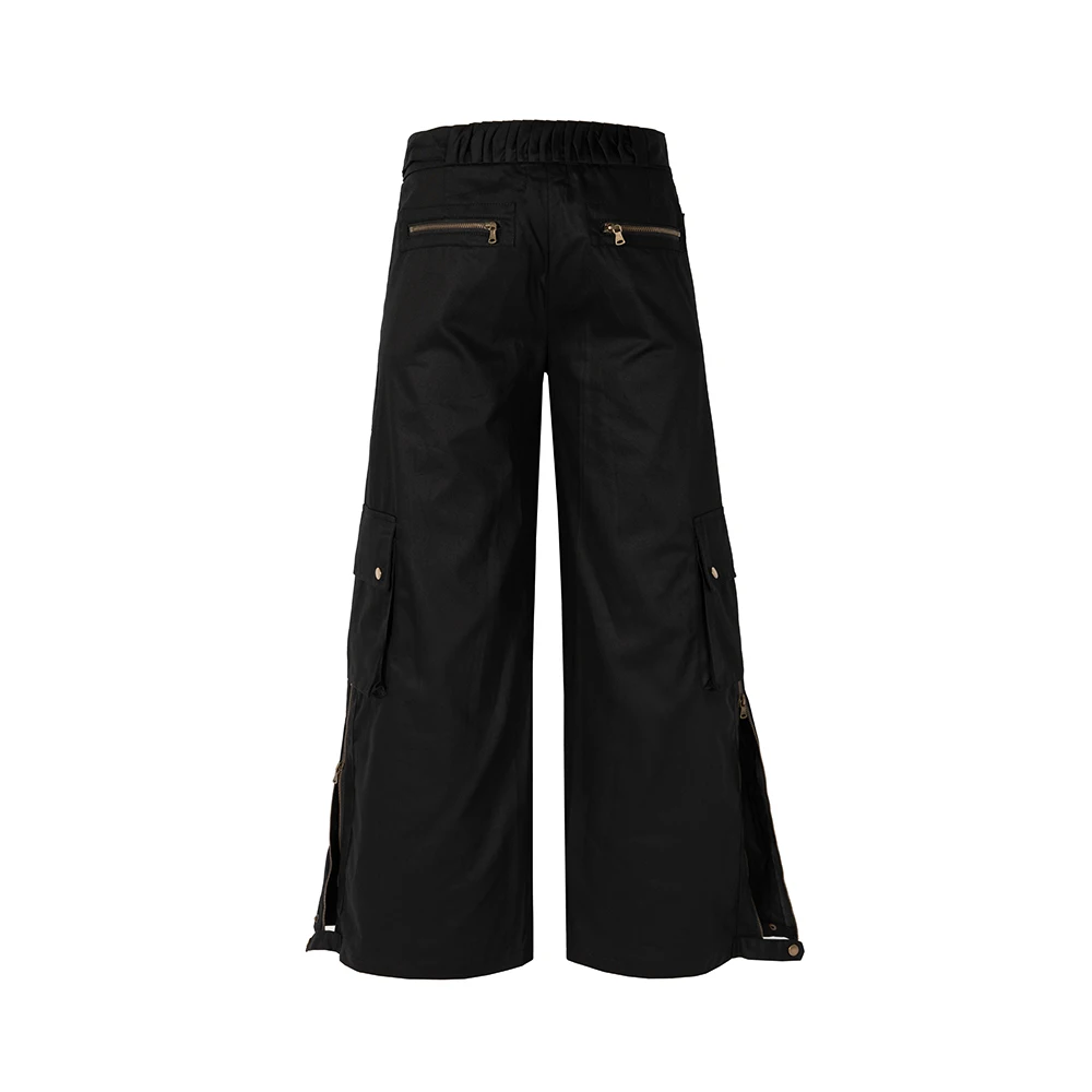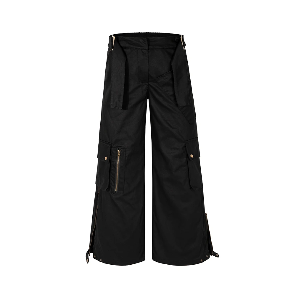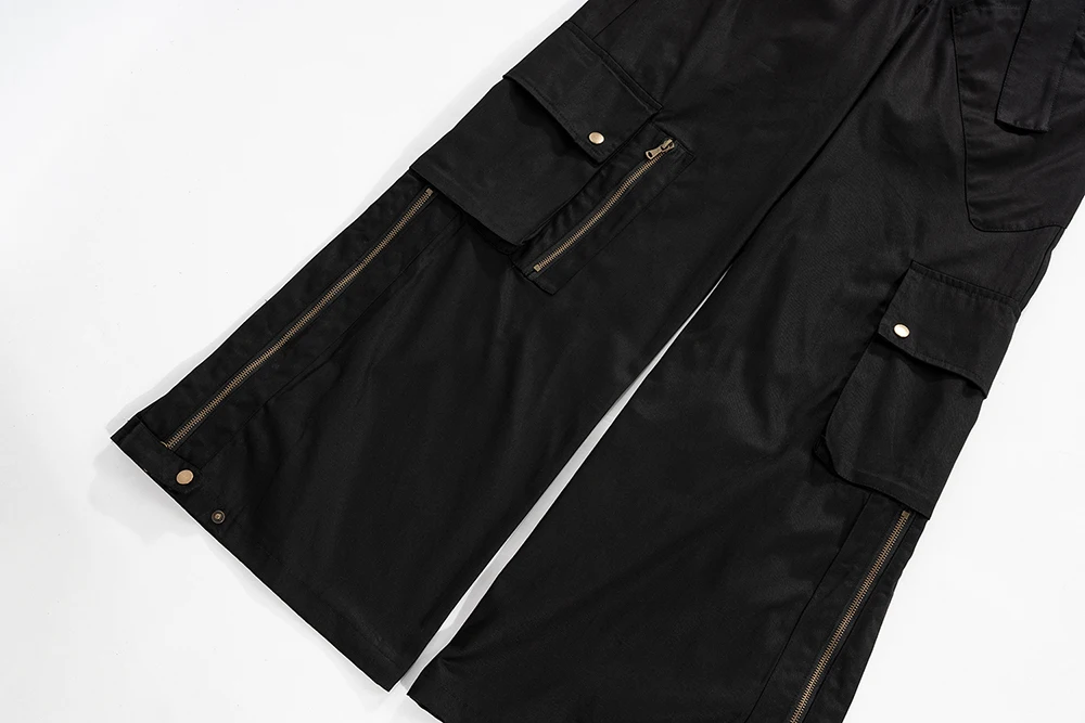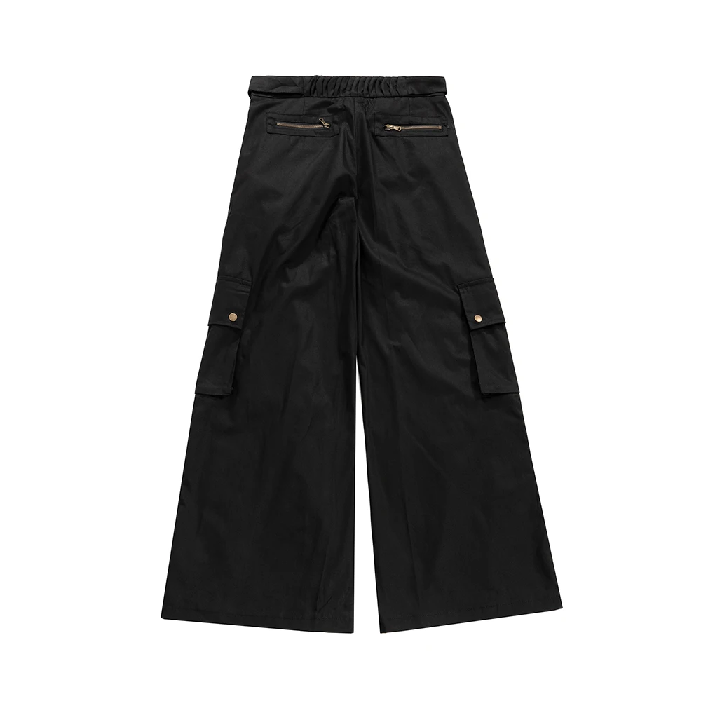 Wiaofellas High Street Multi-pockets Wide Leg Micro Flare Pants Unisex Straight Baggy Y2K Casual Cargos Sashes Loose Oversized Men Overalls