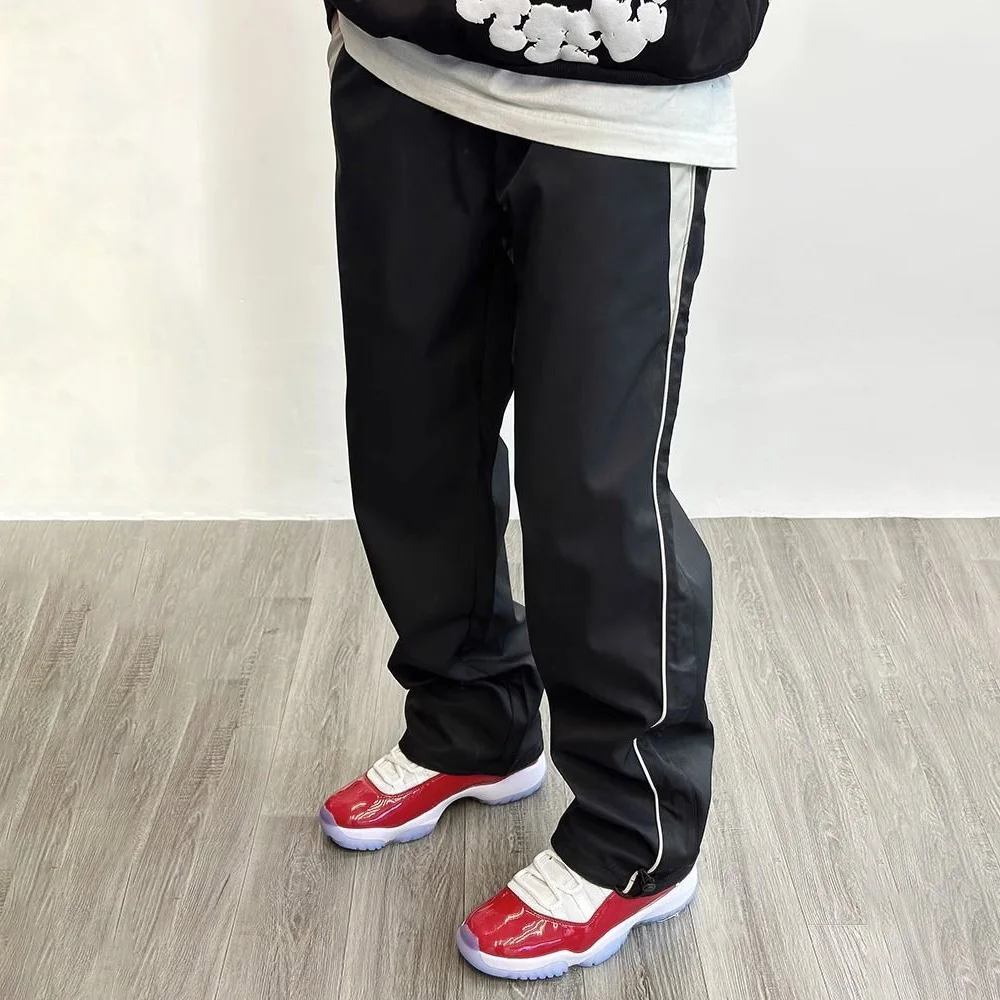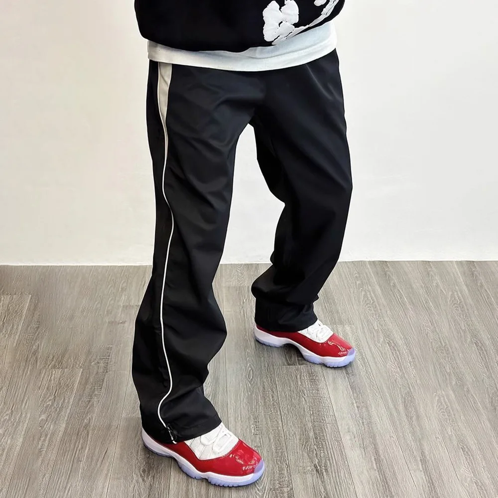 Wiaofellas American Retro Vintage Sports Pants Men's Summer Straight Loose Casual Trousers Trendy Street Y2k Contrast Functional Overalls