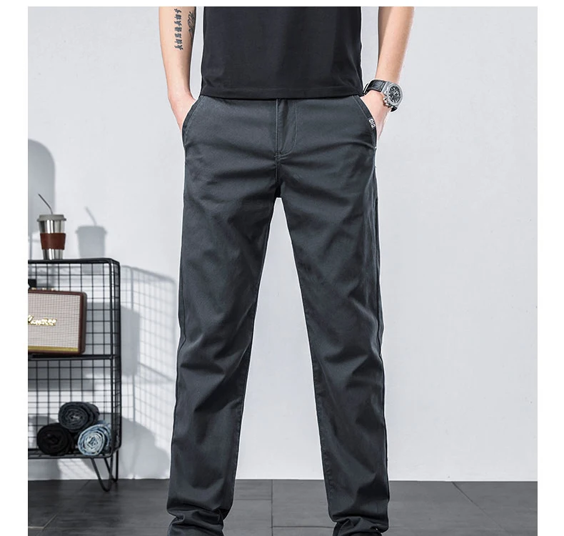 Wiaofellas Men's Pants 97% Cotton Business Fashion Stretch Comfortable Slim Straight High Quality Brand Grey Trousers Male