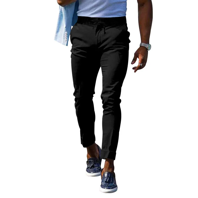Wiaofellas Male Business Solid Streetwear Pencil Pants Men Fashion Pockets Long Baggy Pants Casual Mid Waist Drawstring Trousers Clothing