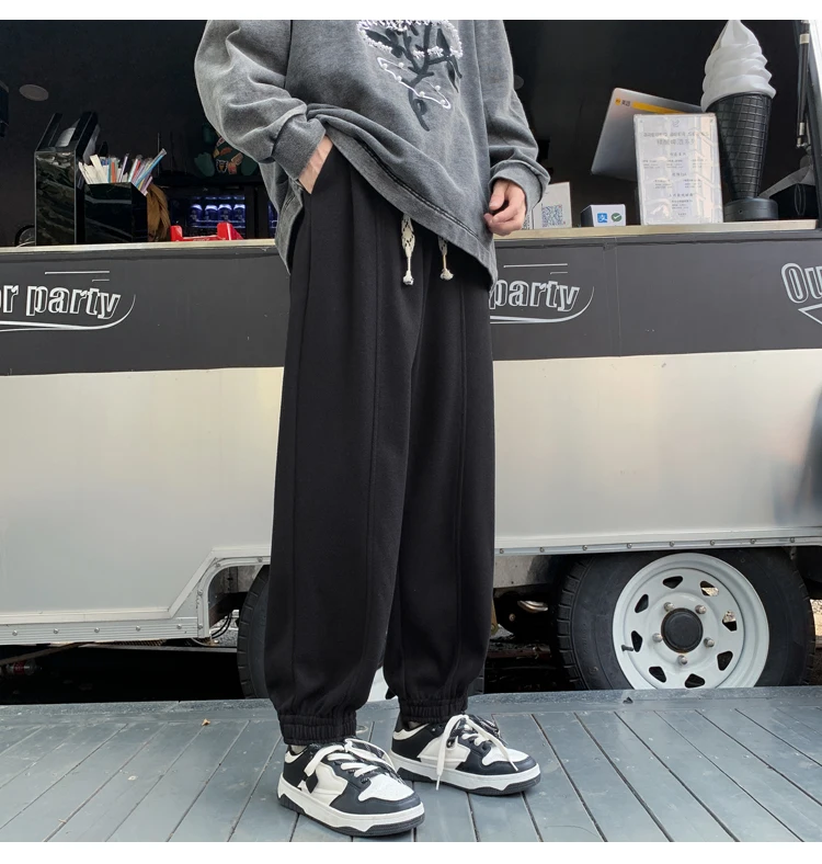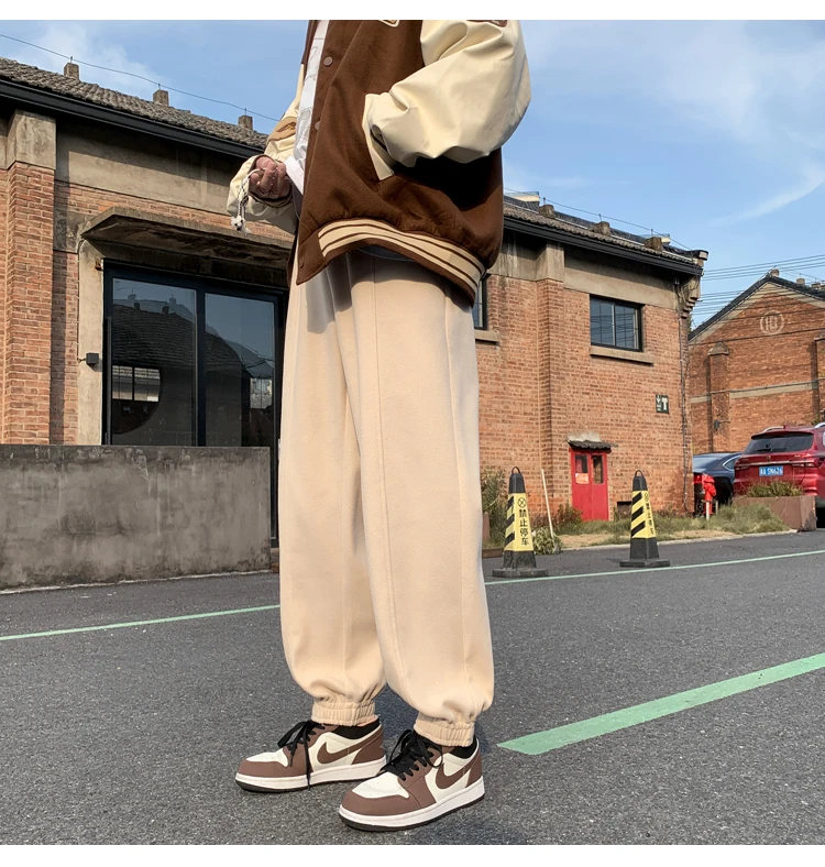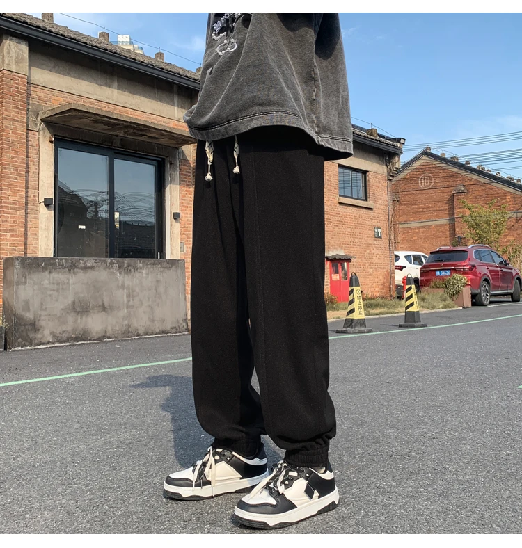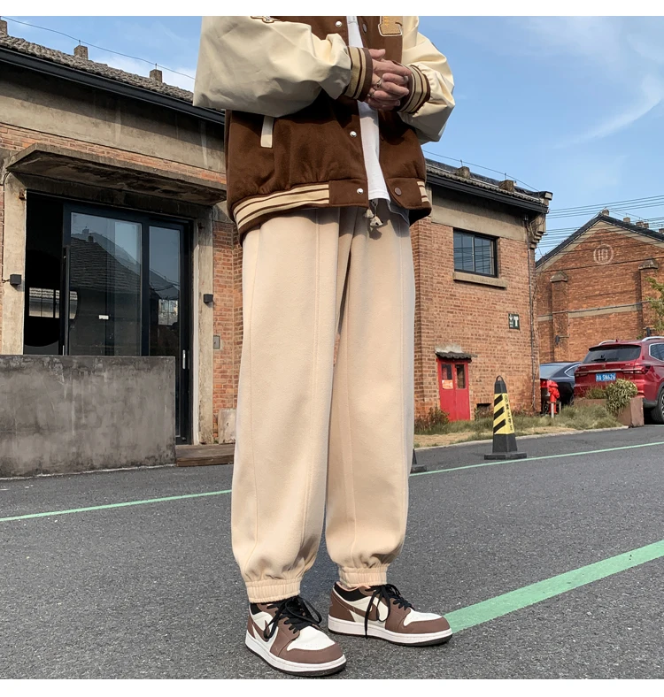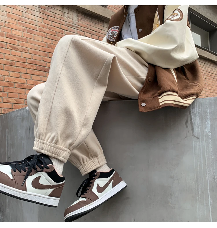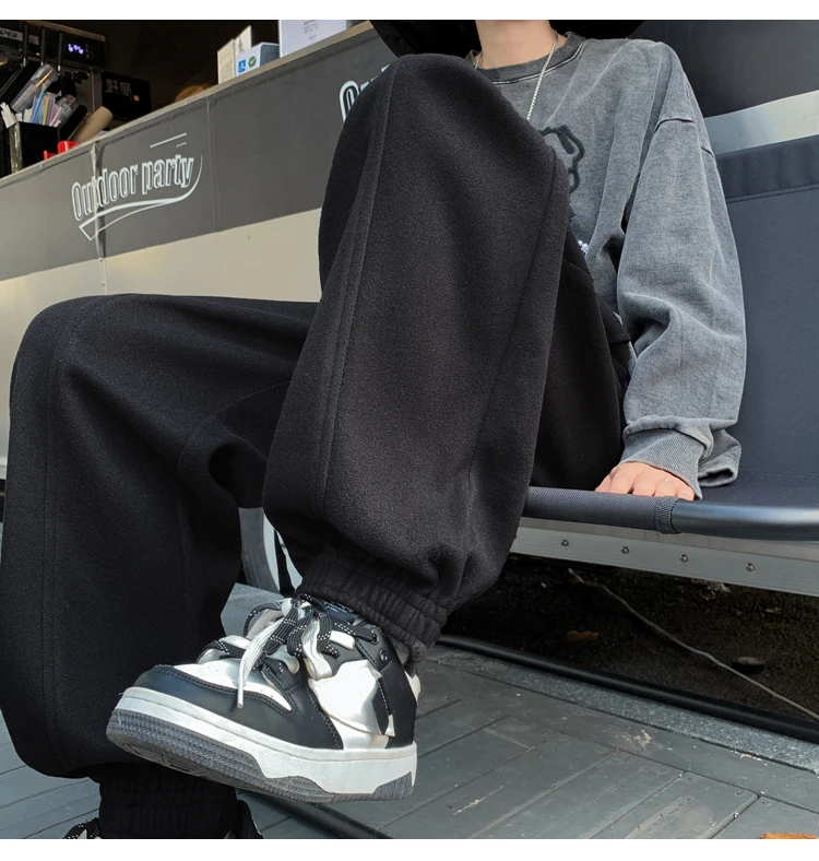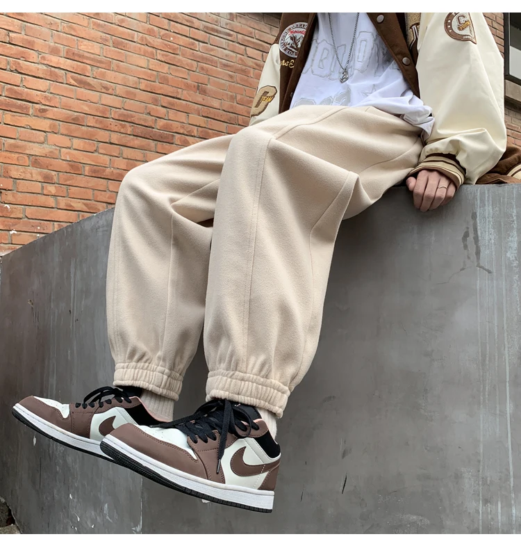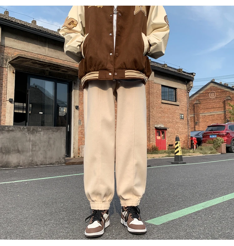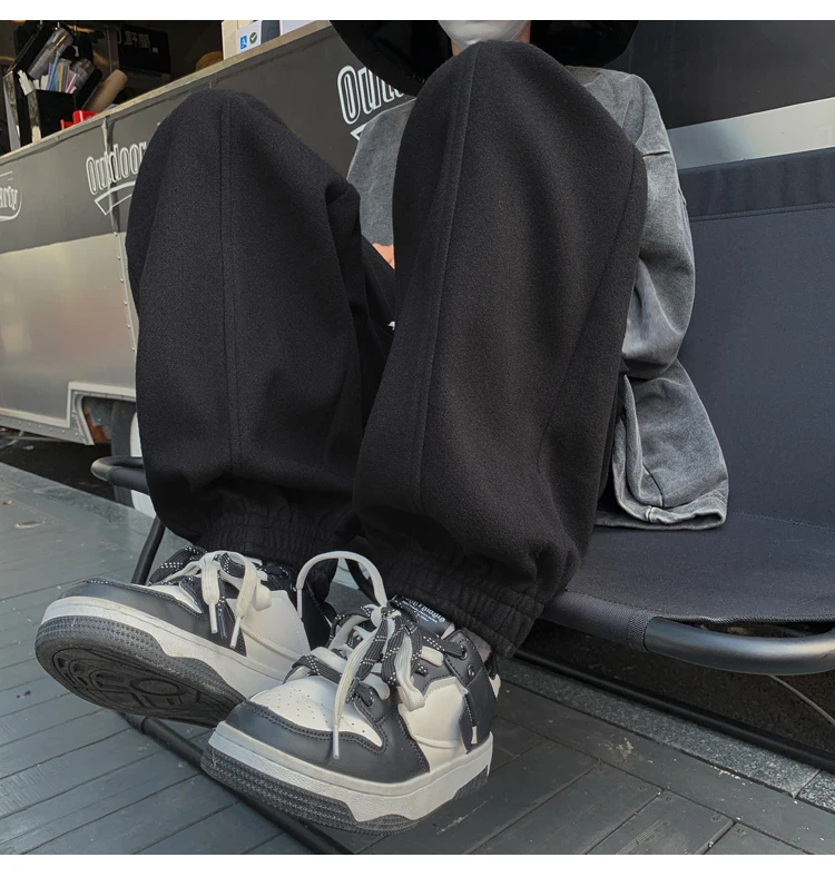 Wiaofellas Autumn and Winter Woolen New Casual Pants for Men Simple and Loose Fit Large Fabric Casual Pants Handsome Fashion Men Clothing