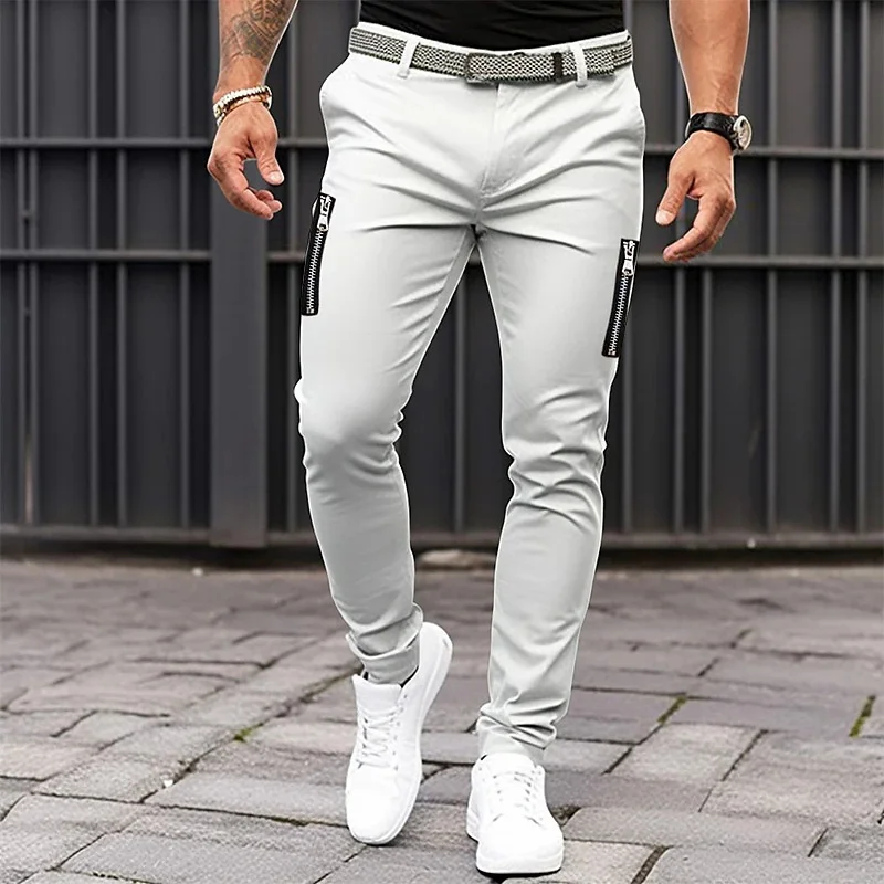 Wiaofellas Fashion Mid Waist Solid Work Pants Streewtear Versatile Slim Trousers Men Clothing Man Pure Cotton Zip Pockets Cargo Pants