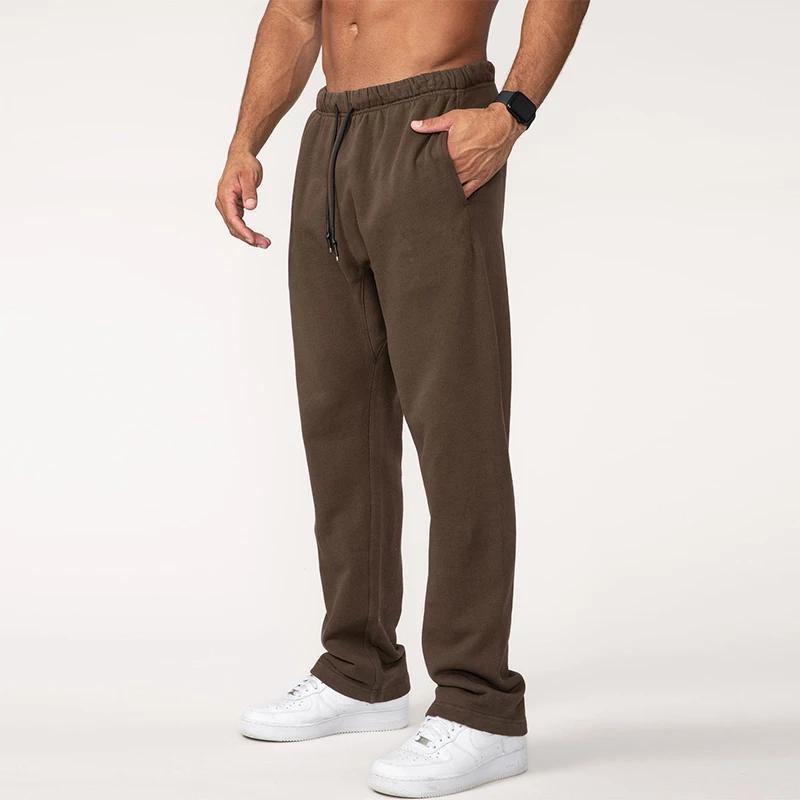 Wiaofellas Casual Pure Cotton Sports Sweatpants Streetwear Men's Solid Pockets Trousers Spring Autumn Mid Waist Drawstring Long Pants