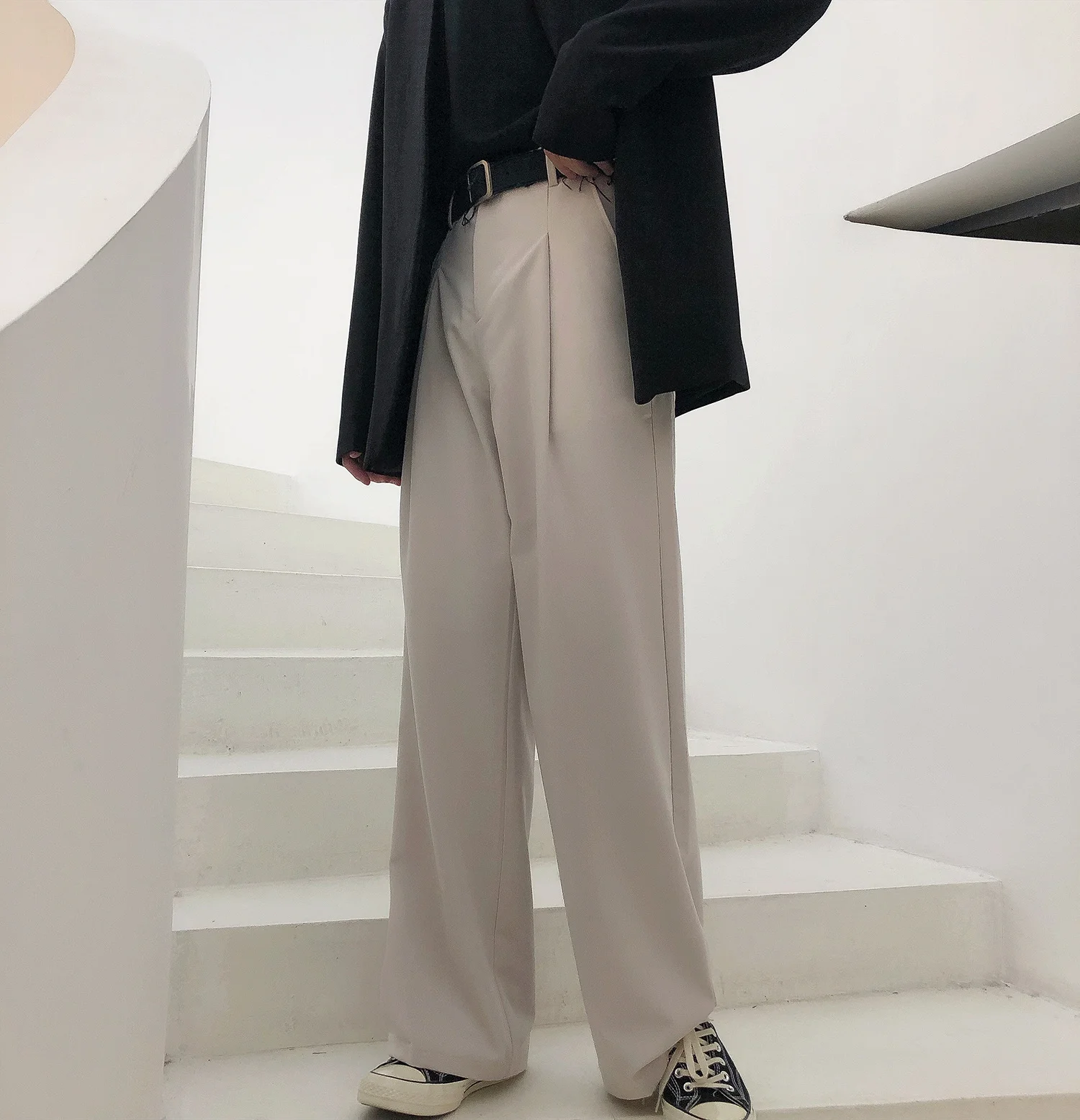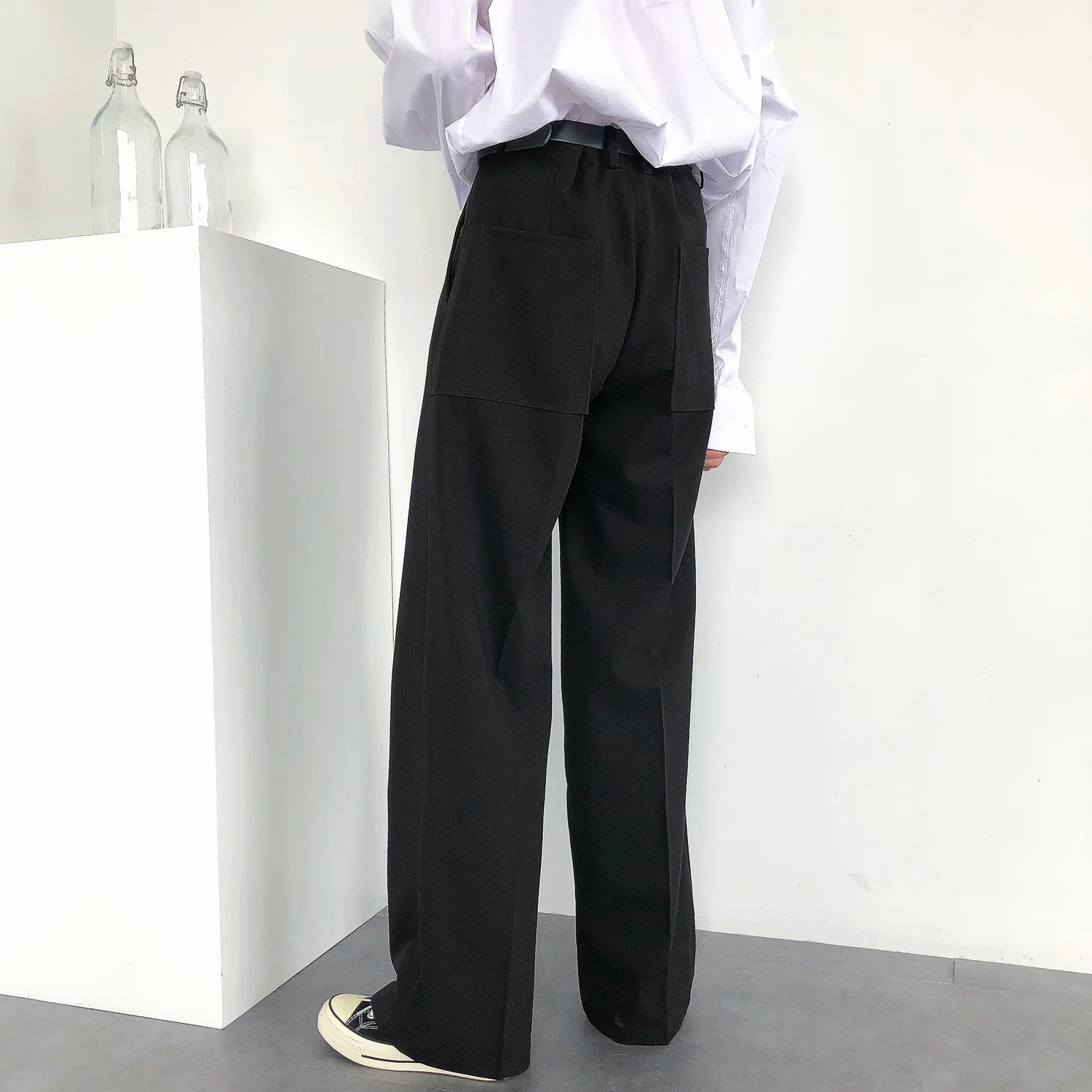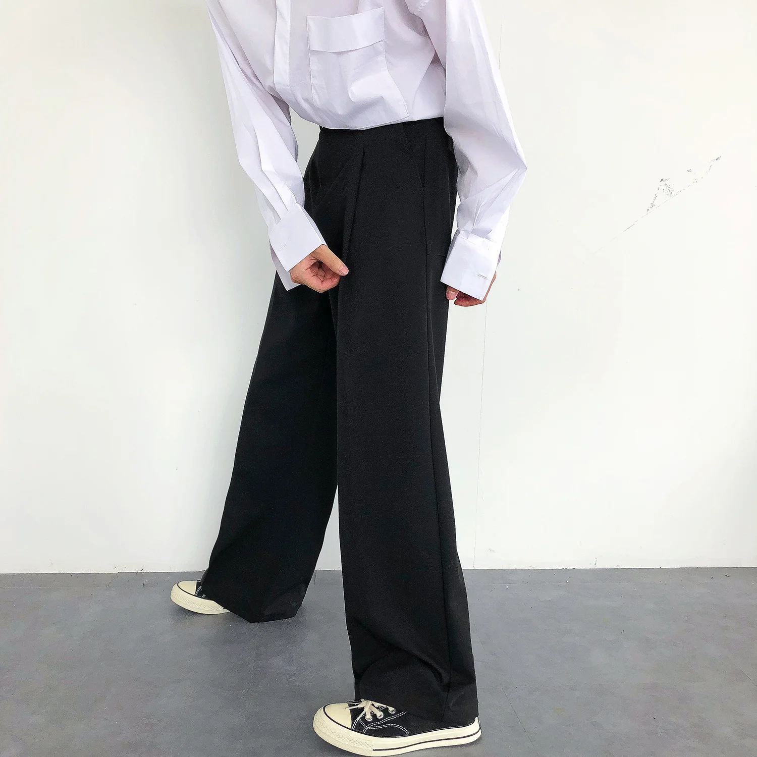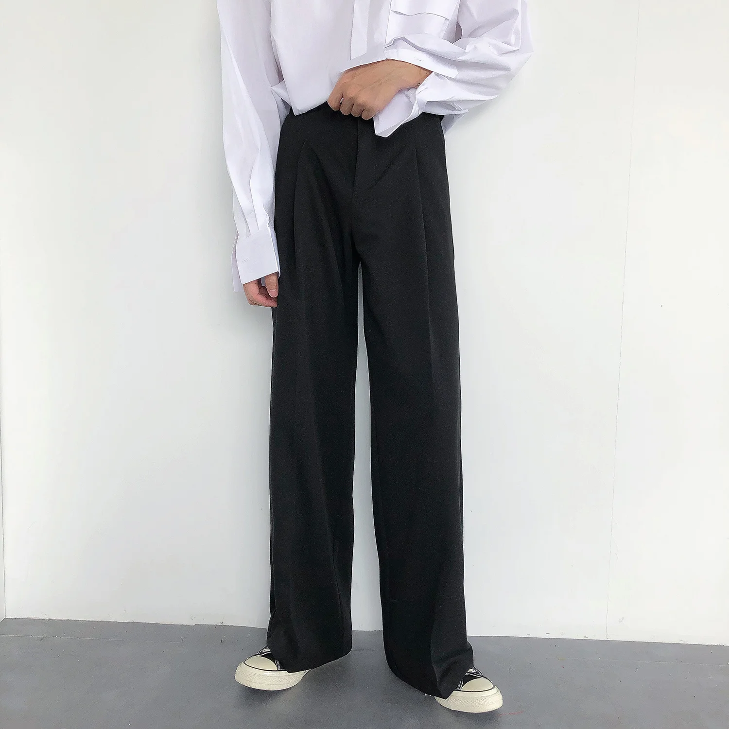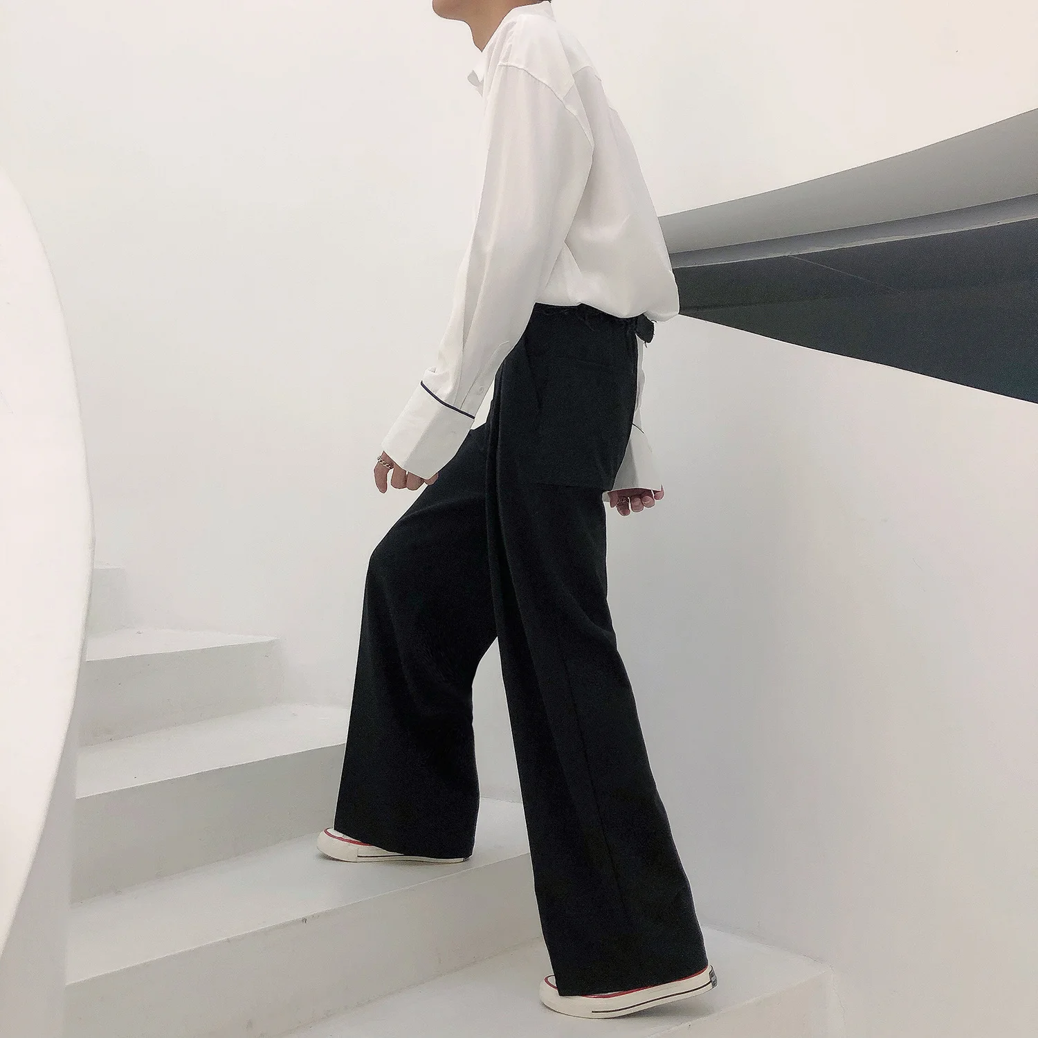 Wiaofellas - Autumn New Wide-leg Mop Pants For Men Korean Streetwear Fashion Loose Straight High Rise Pants Casual Trousers 2Y3528