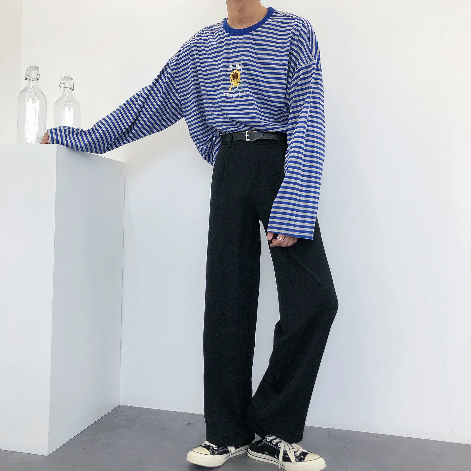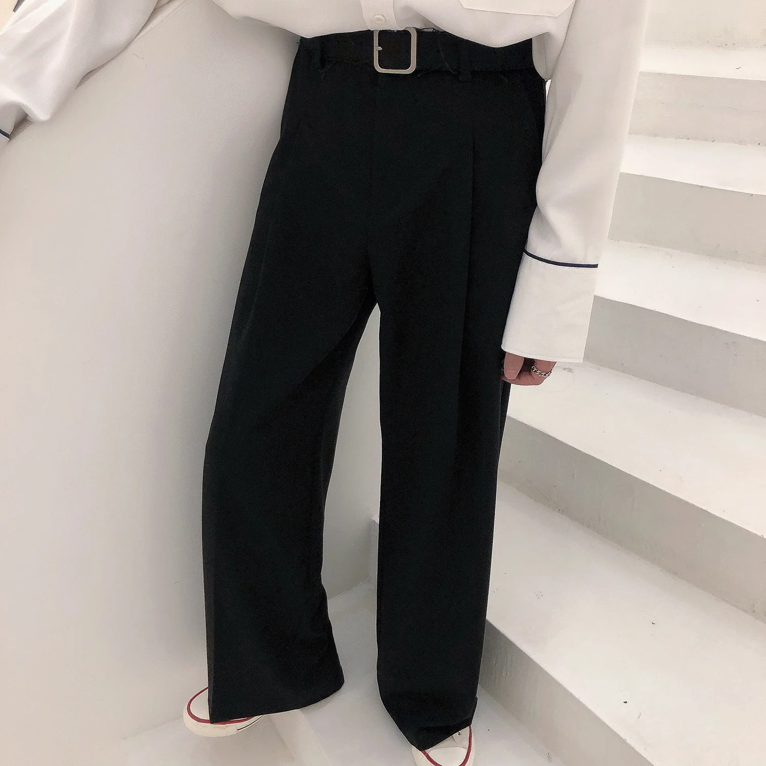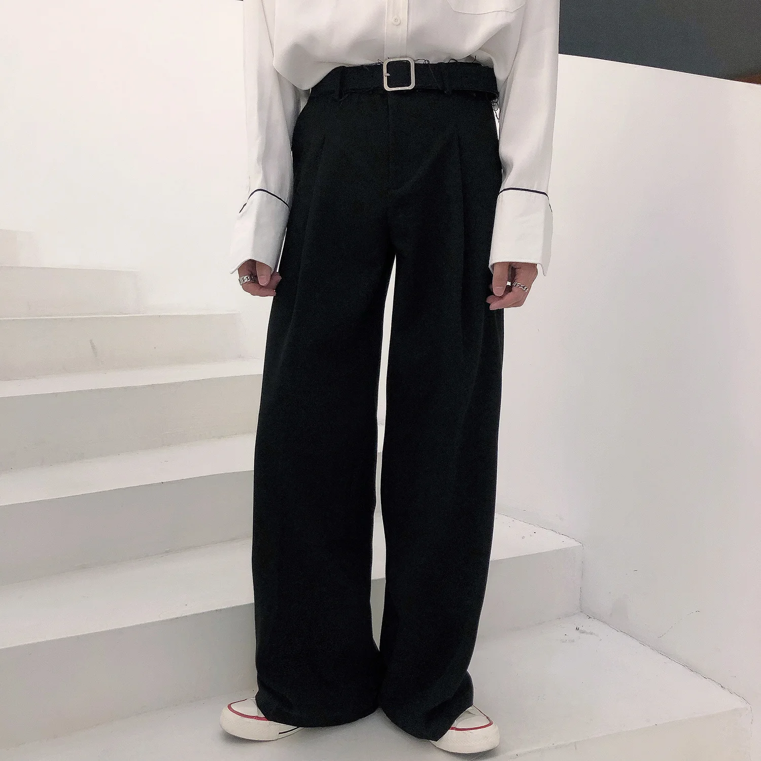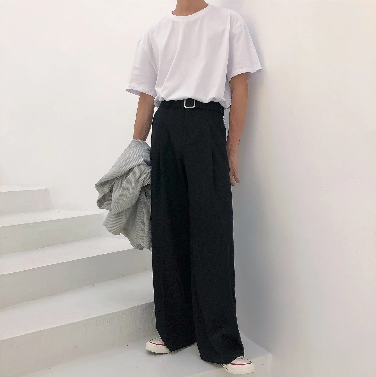 Wiaofellas - Autumn New Wide-leg Mop Pants For Men Korean Streetwear Fashion Loose Straight High Rise Pants Casual Trousers 2Y3528