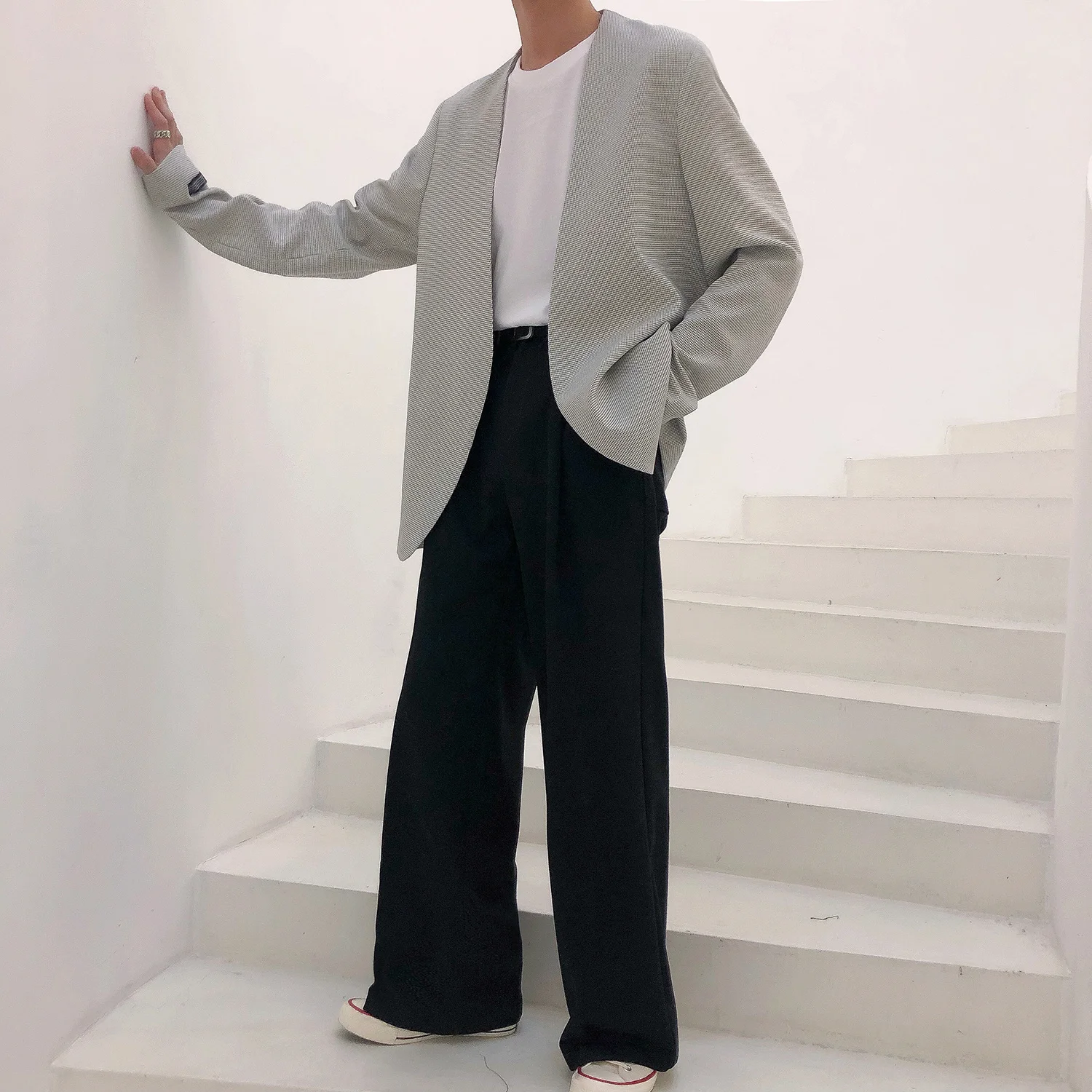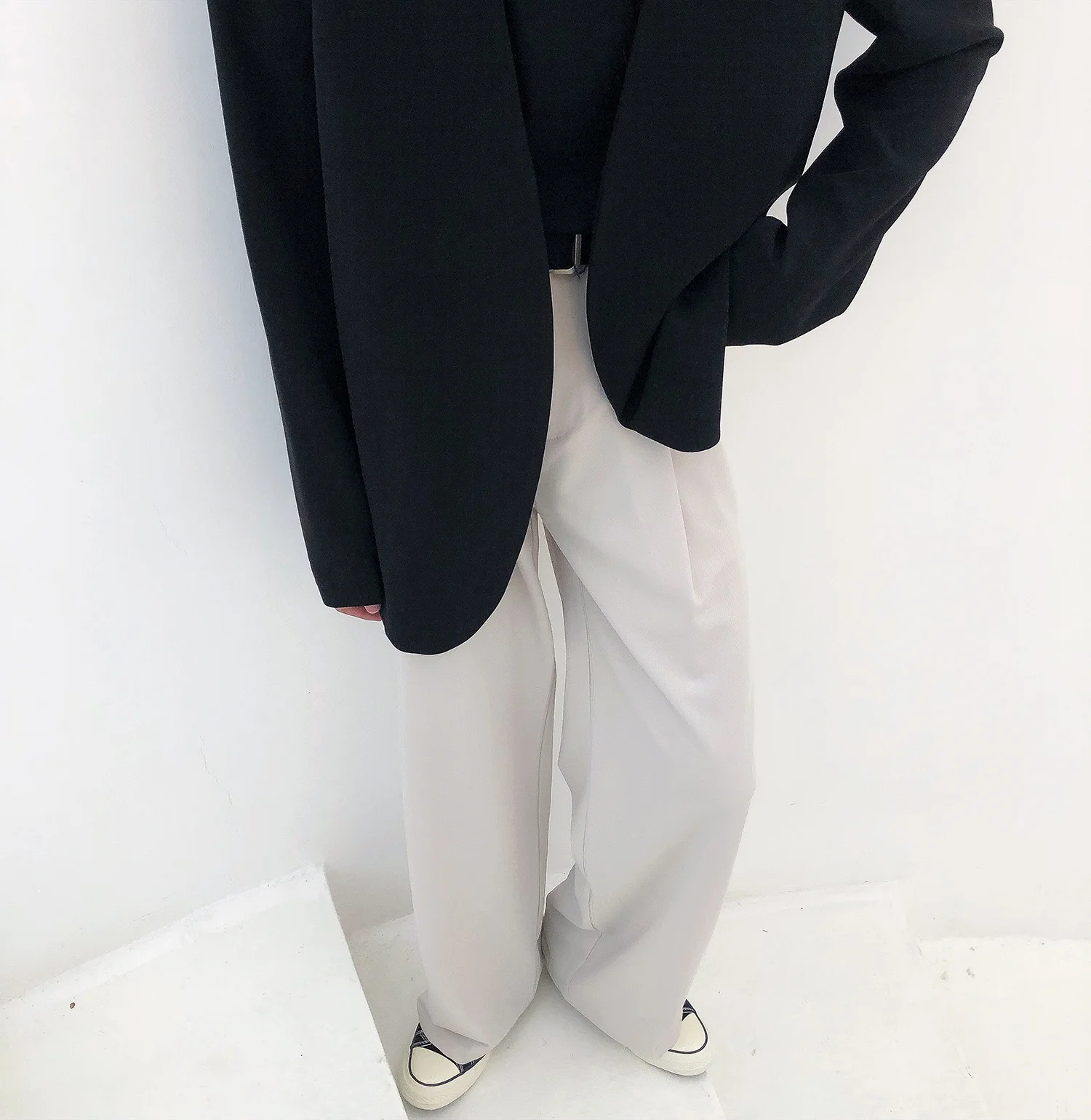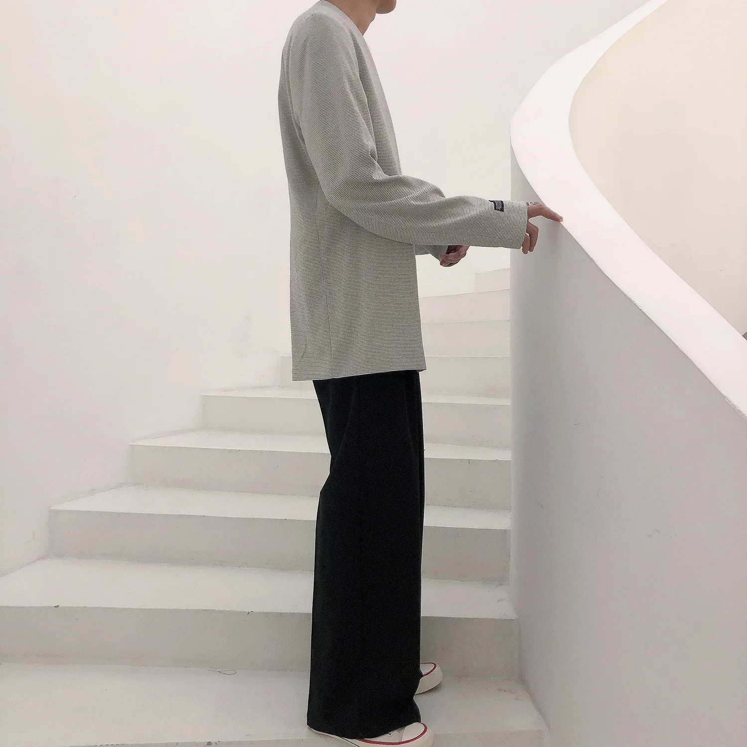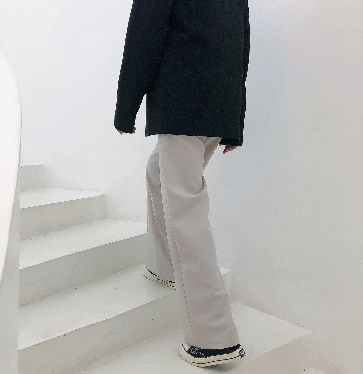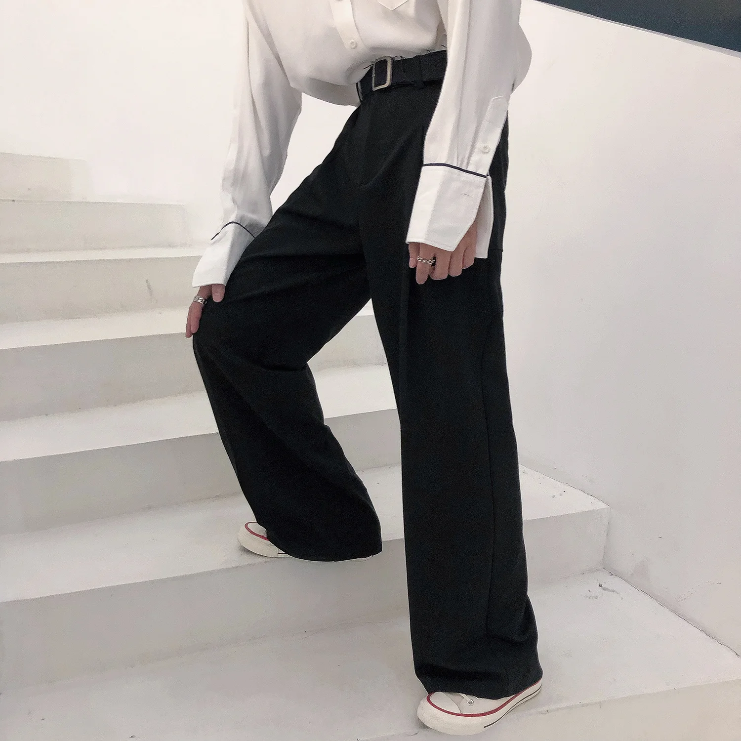 Wiaofellas - Autumn New Wide-leg Mop Pants For Men Korean Streetwear Fashion Loose Straight High Rise Pants Casual Trousers 2Y3528