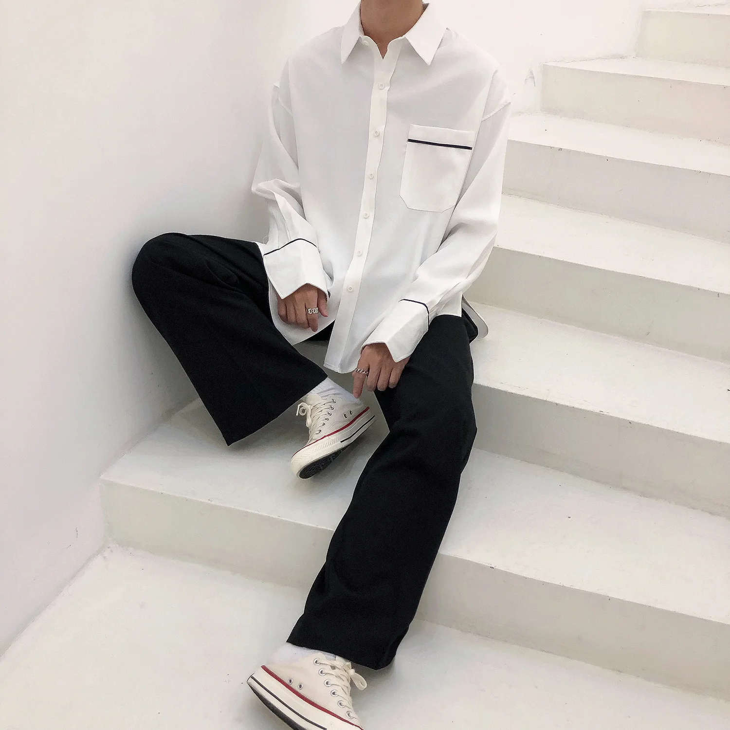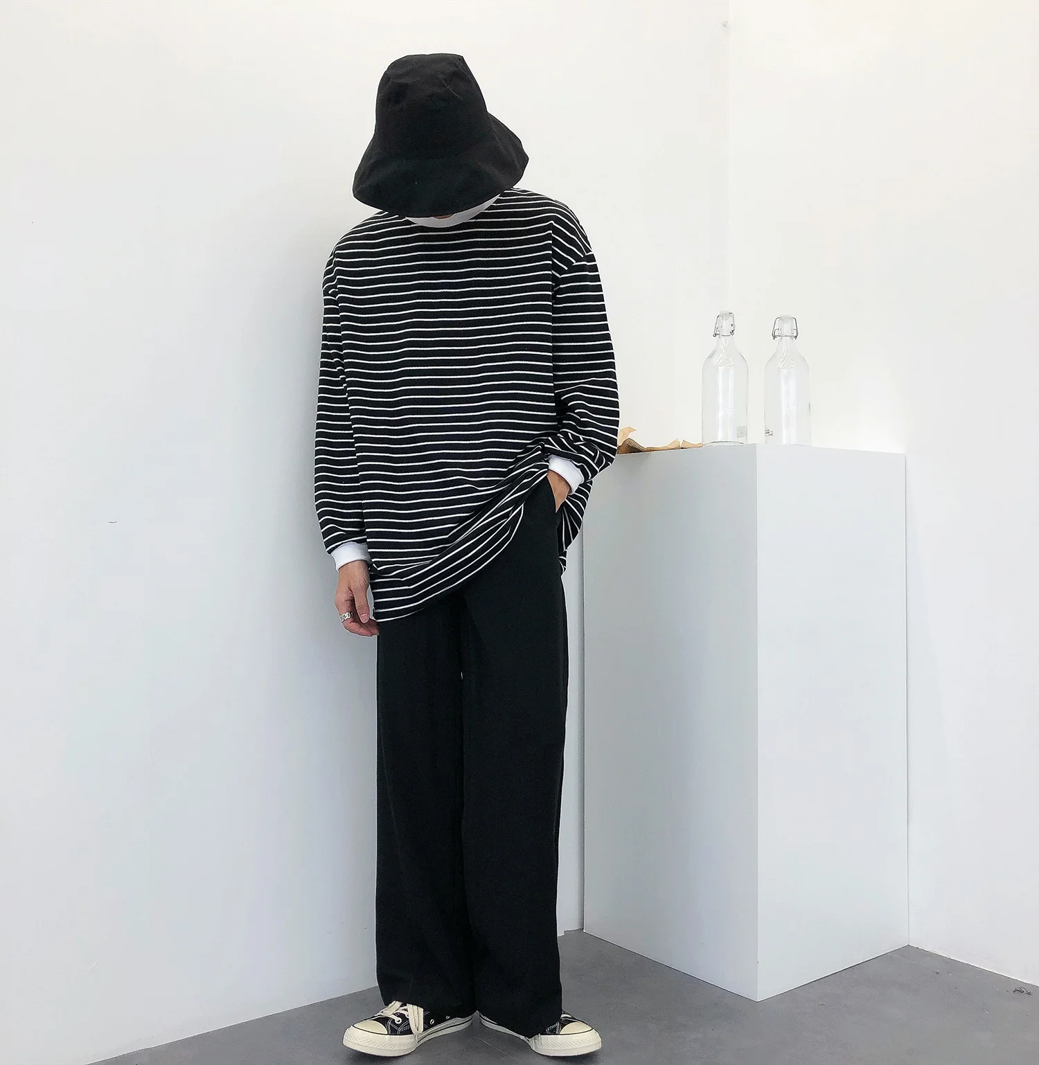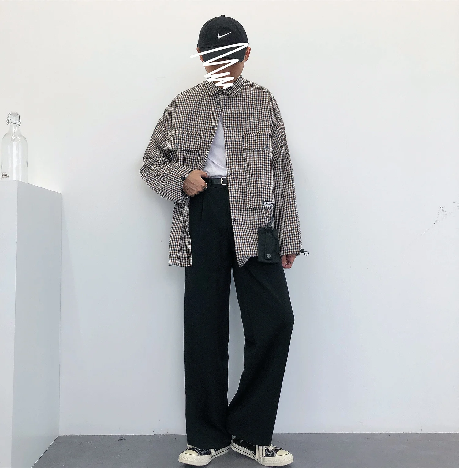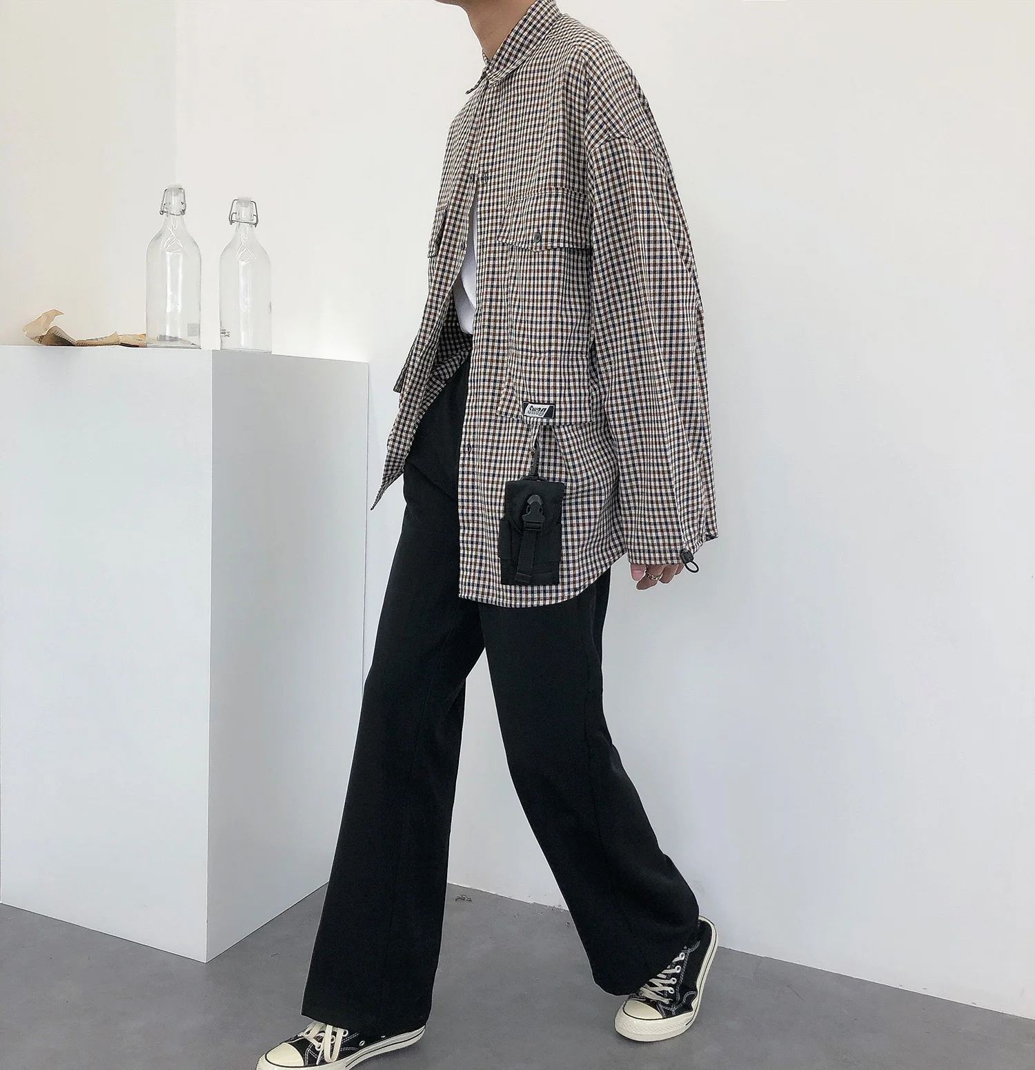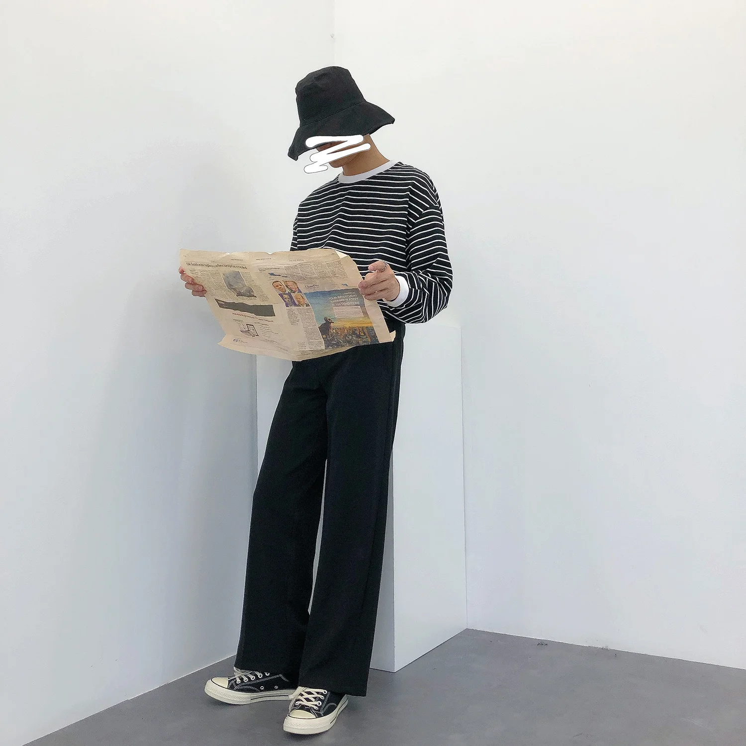 Wiaofellas - Autumn New Wide-leg Mop Pants For Men Korean Streetwear Fashion Loose Straight High Rise Pants Casual Trousers 2Y3528