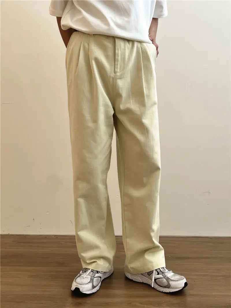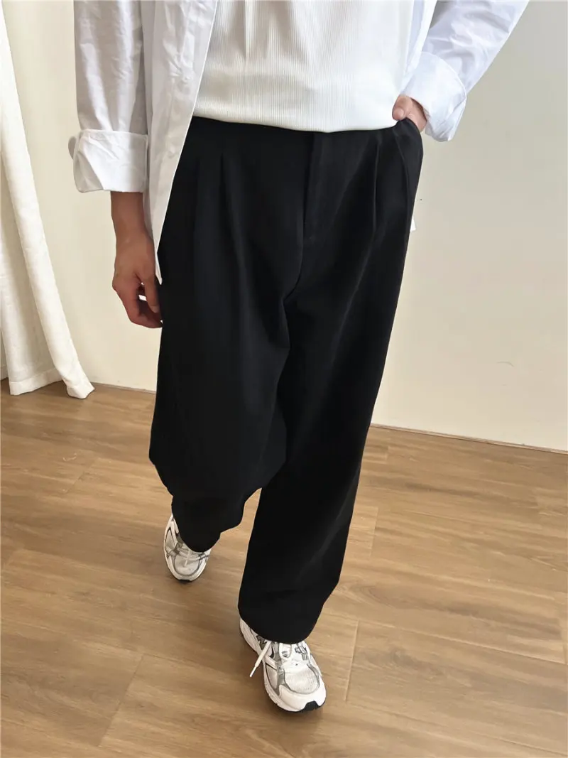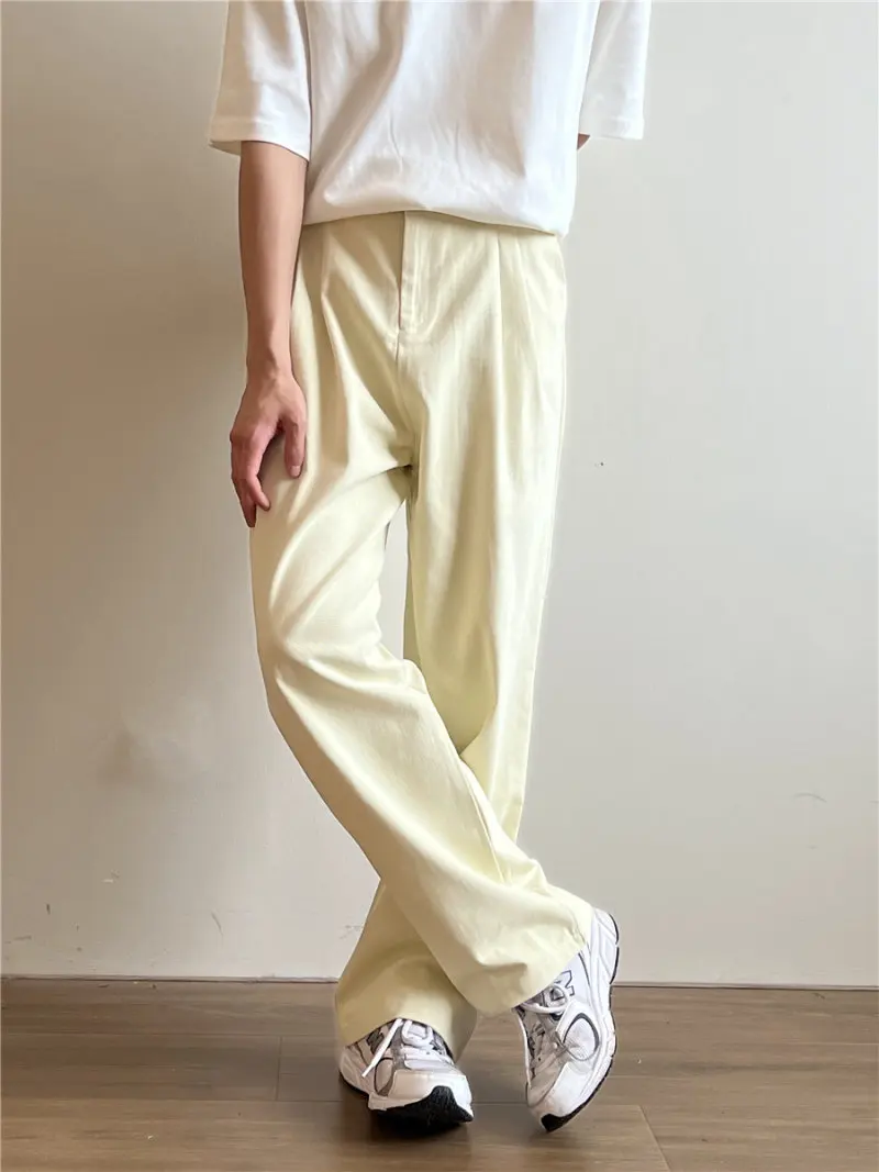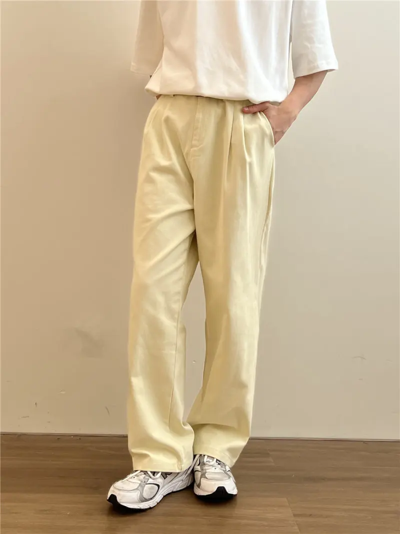 Wiaofellas  -  Black Beige Casual Pants Men Fashion Straight Pants Men Streetwear Korean Clothing Loose Wide Leg Pants Mens Trousers M-2XL